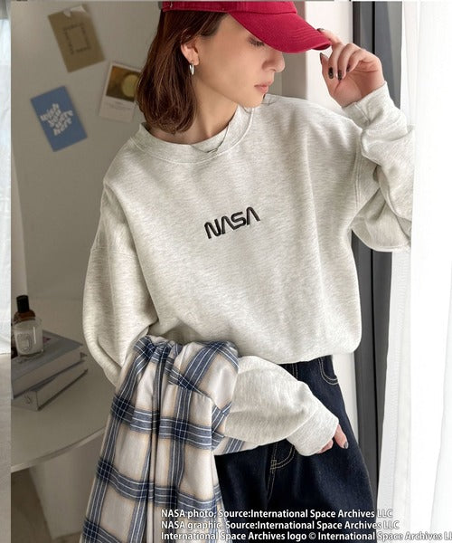 《JaVaジャバコラボ》数量限定!シンプル刺繍で着回し力抜群♪【NASAテーマ】フロントミニロゴ裏起毛スウェットトップス jv1330057