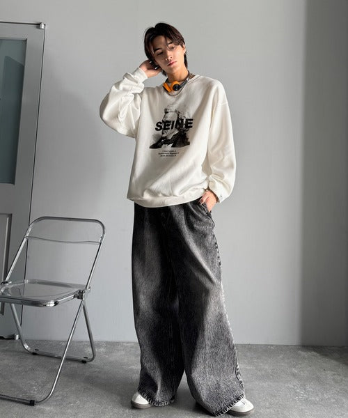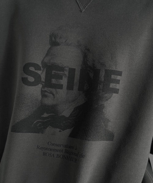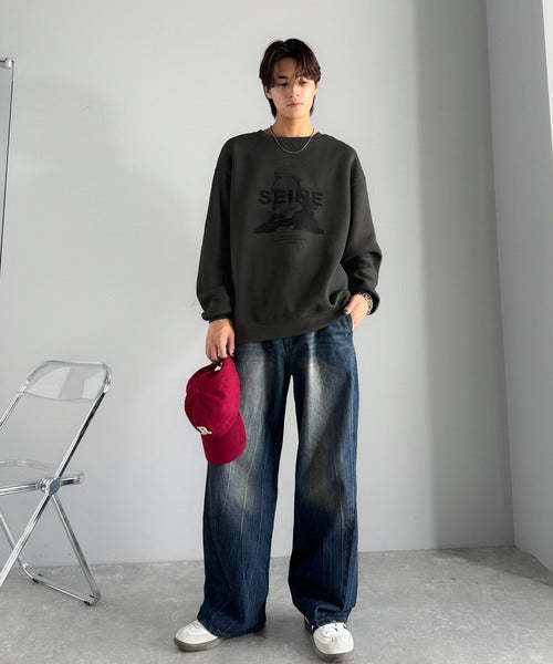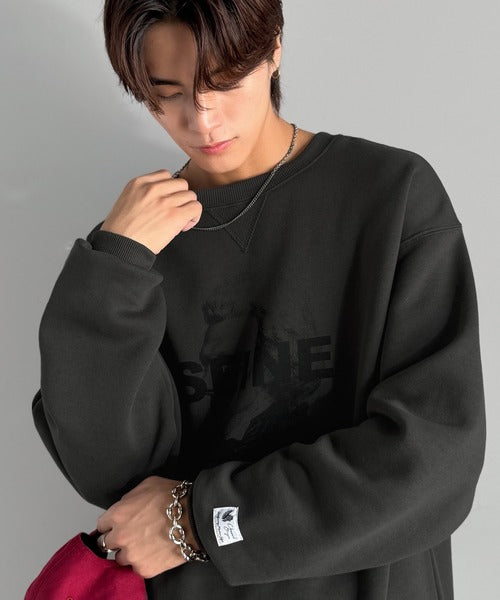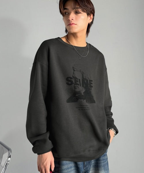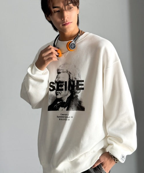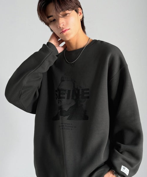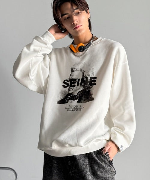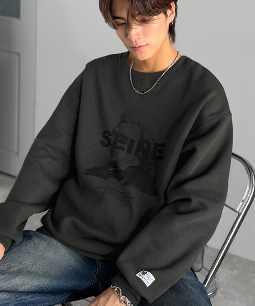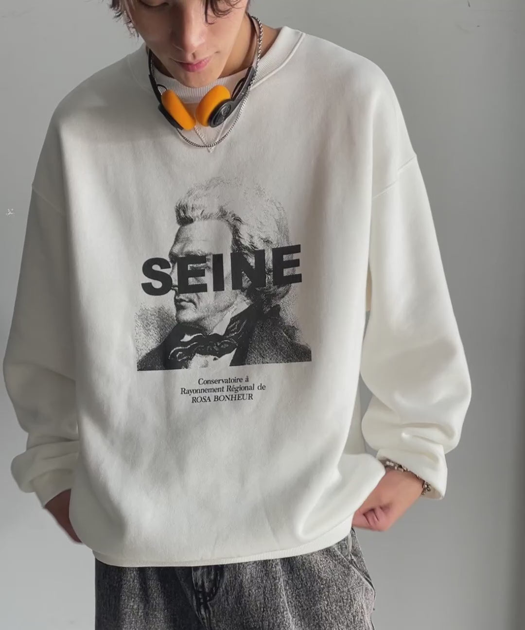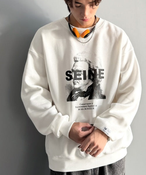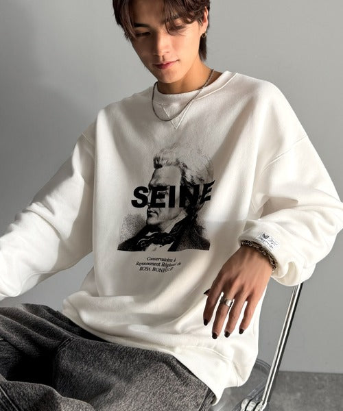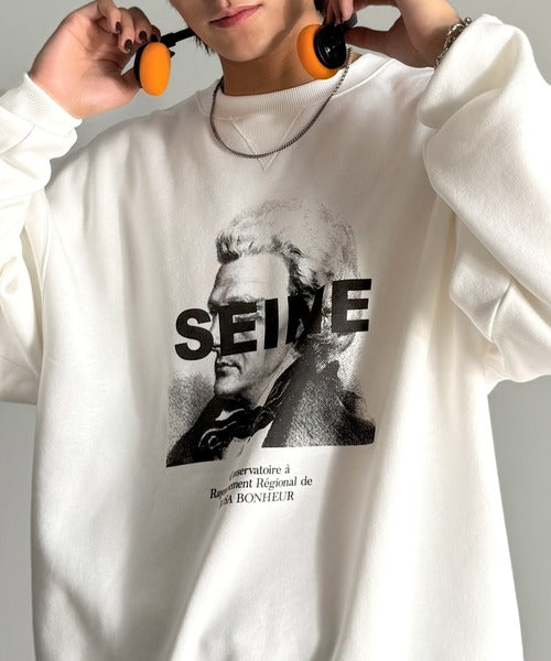 オリジナル肖像画プリントが主役のクルーネックスウェット。