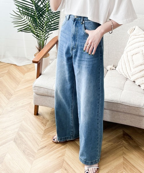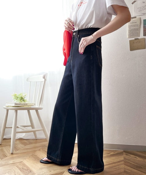 スタイルアップが叶うワイドデニム。