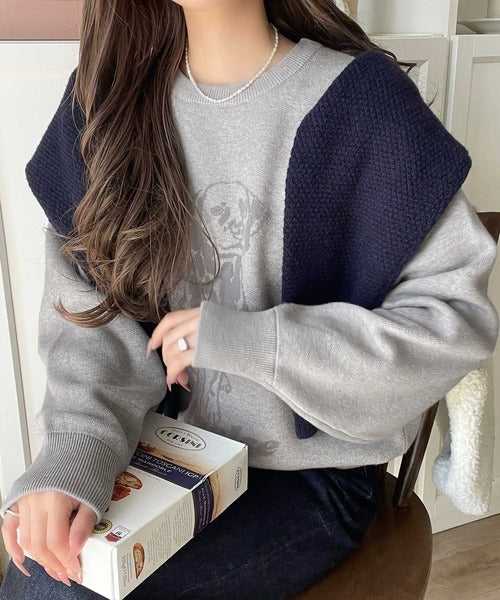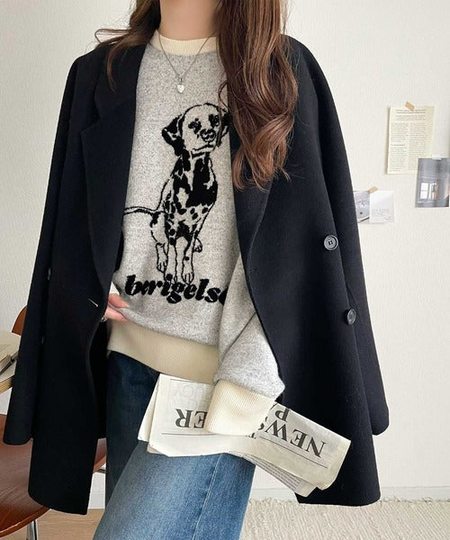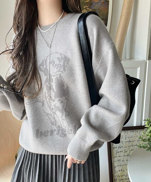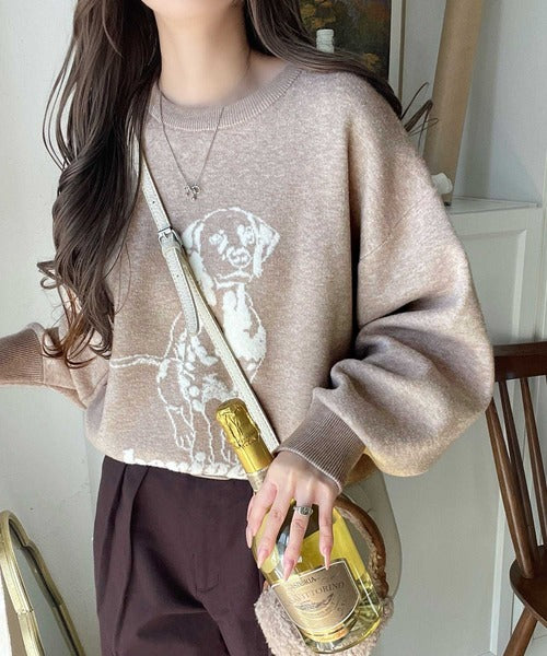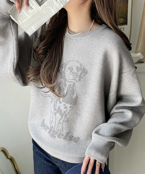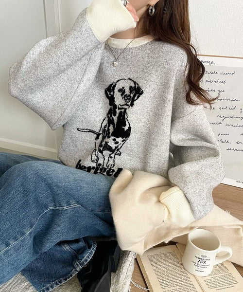 着心地抜群!大人かわいいスタイルに♪ダブルジャガード配色ダルメシアン柄ニット ce1050342