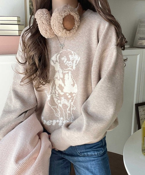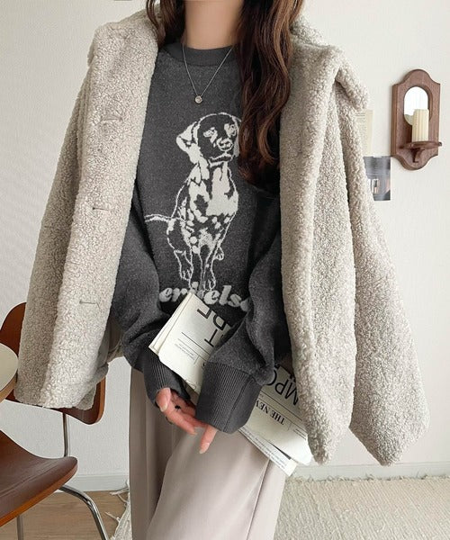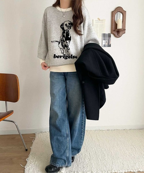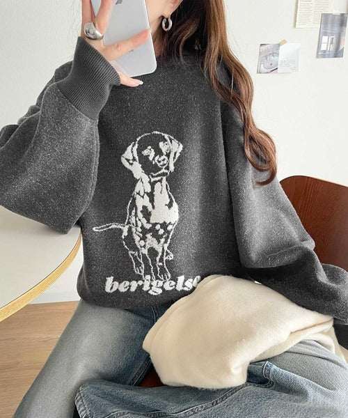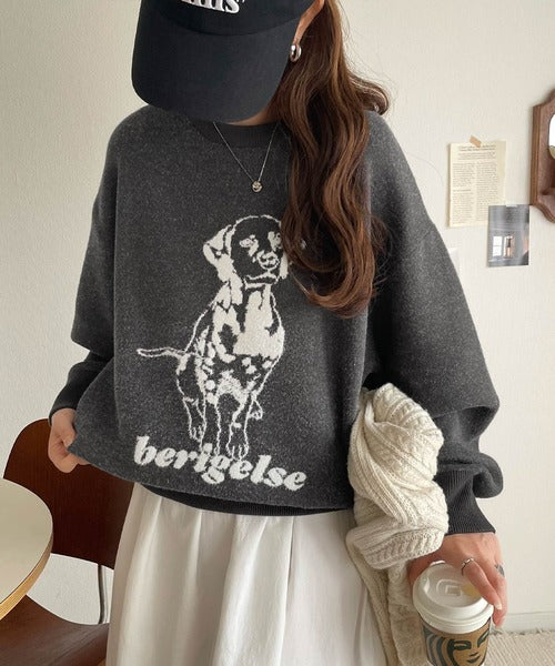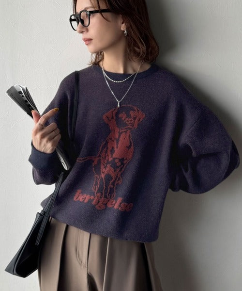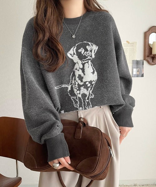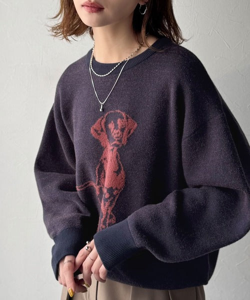 大人可愛い配色のダルメシアン柄が目を惹く、存在感あるジャガードニット。