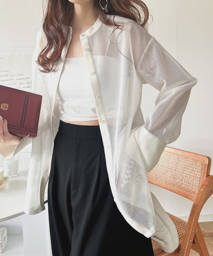 上品なバンドカラー×メッシュ素材で抜け感たっぷり。