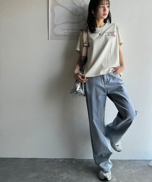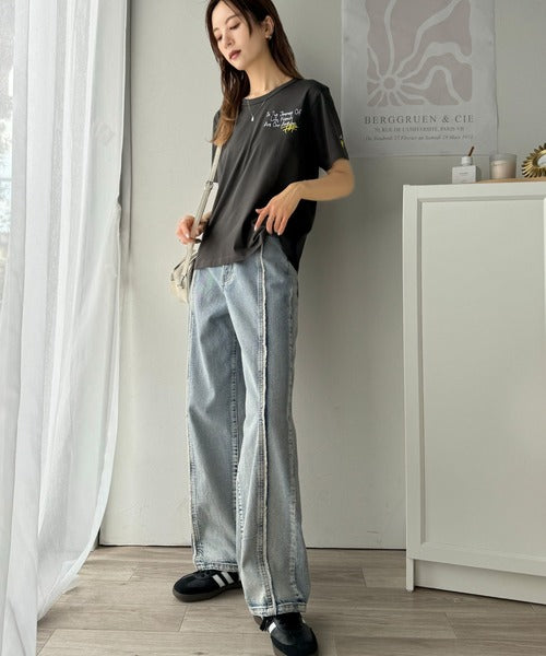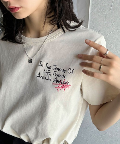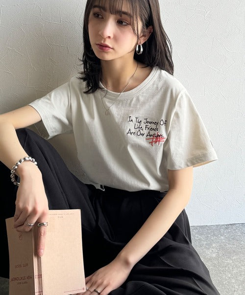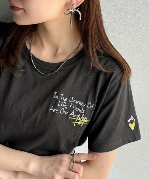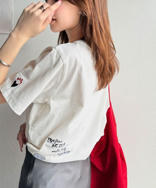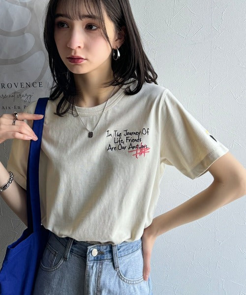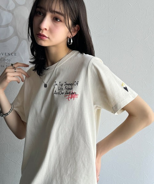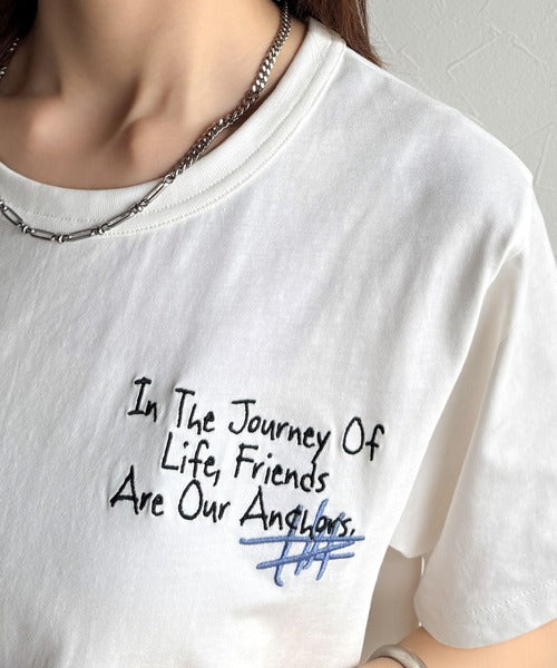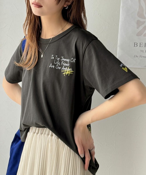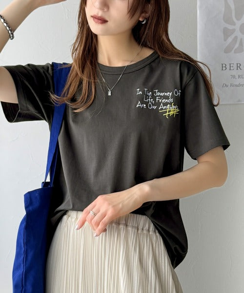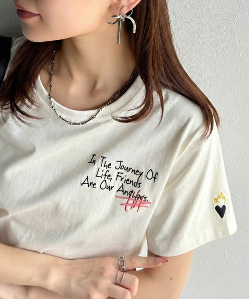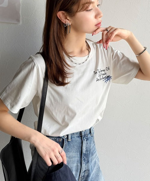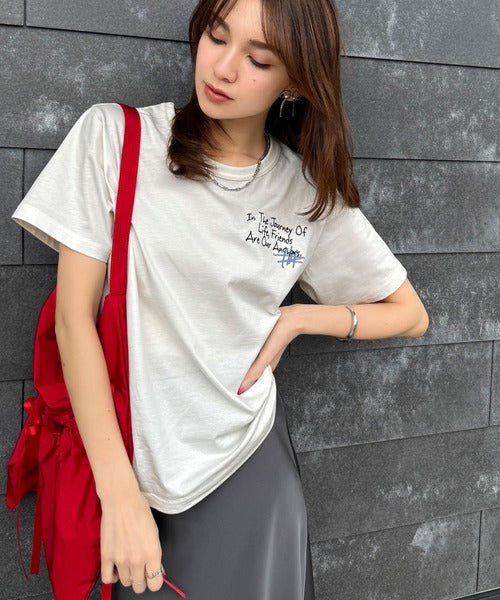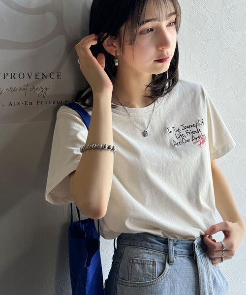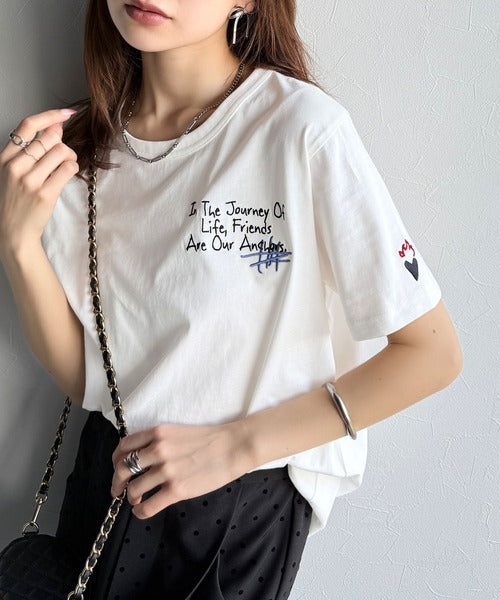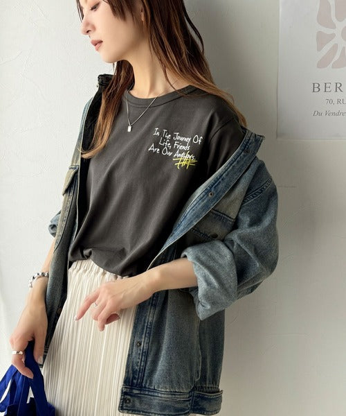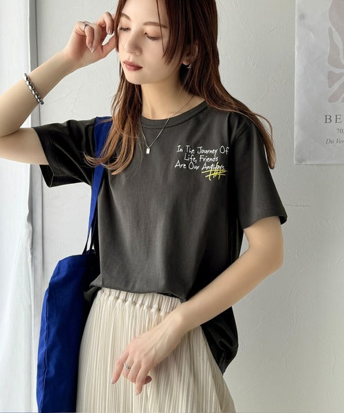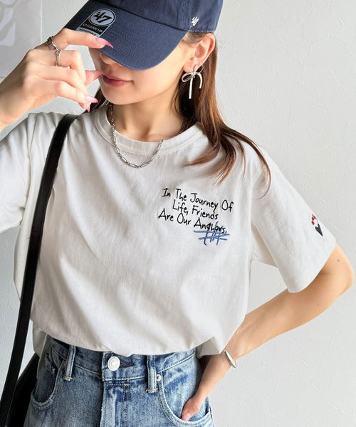 独自の刺繍デザインで、シンプルながら個性を引き立てるTシャツ。