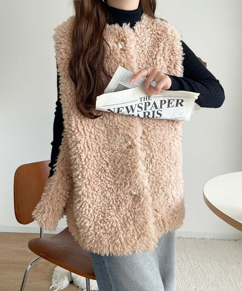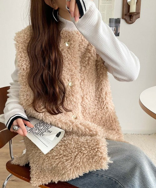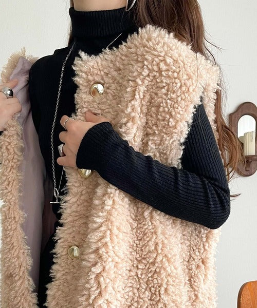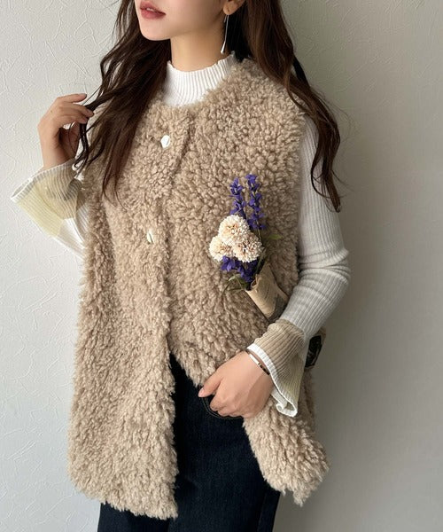 もこもこ感が愛らしい♪暖か前後2wayプードルボアベスト ce1265015