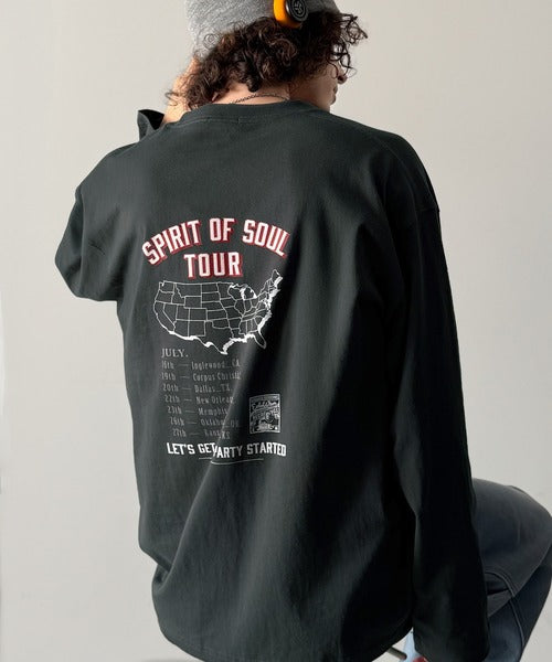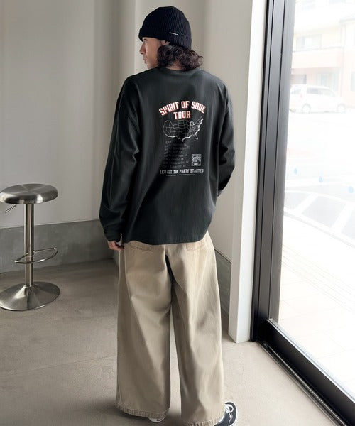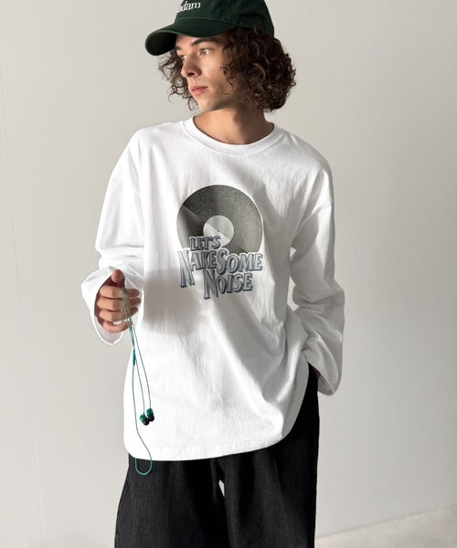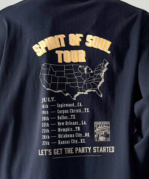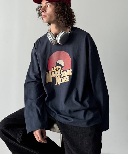 《JaVaジャバコラボ》「前後抜かりなし。」綿100%レコード盤レトロツアーロゴTシャツ(長袖) jo1150065