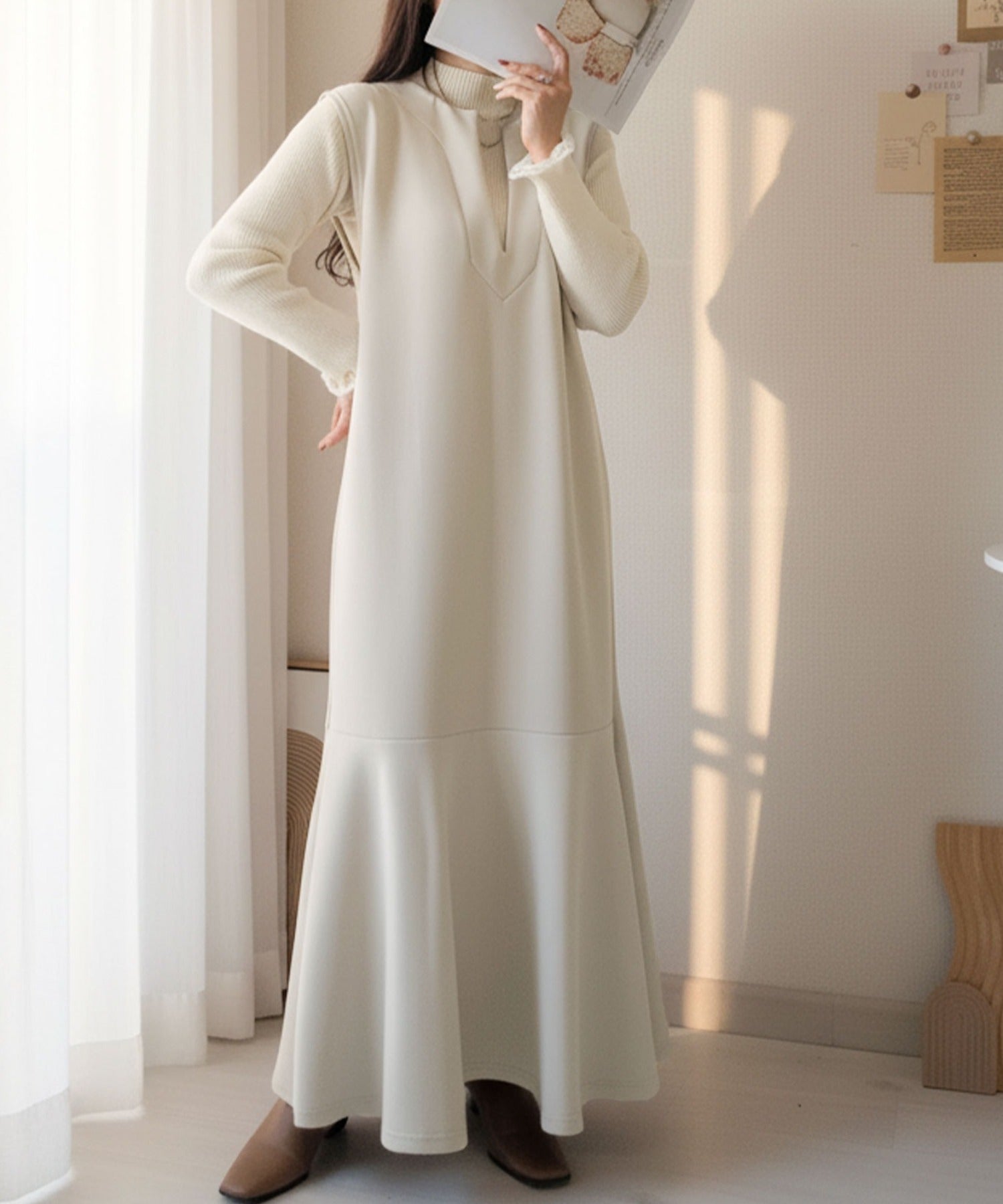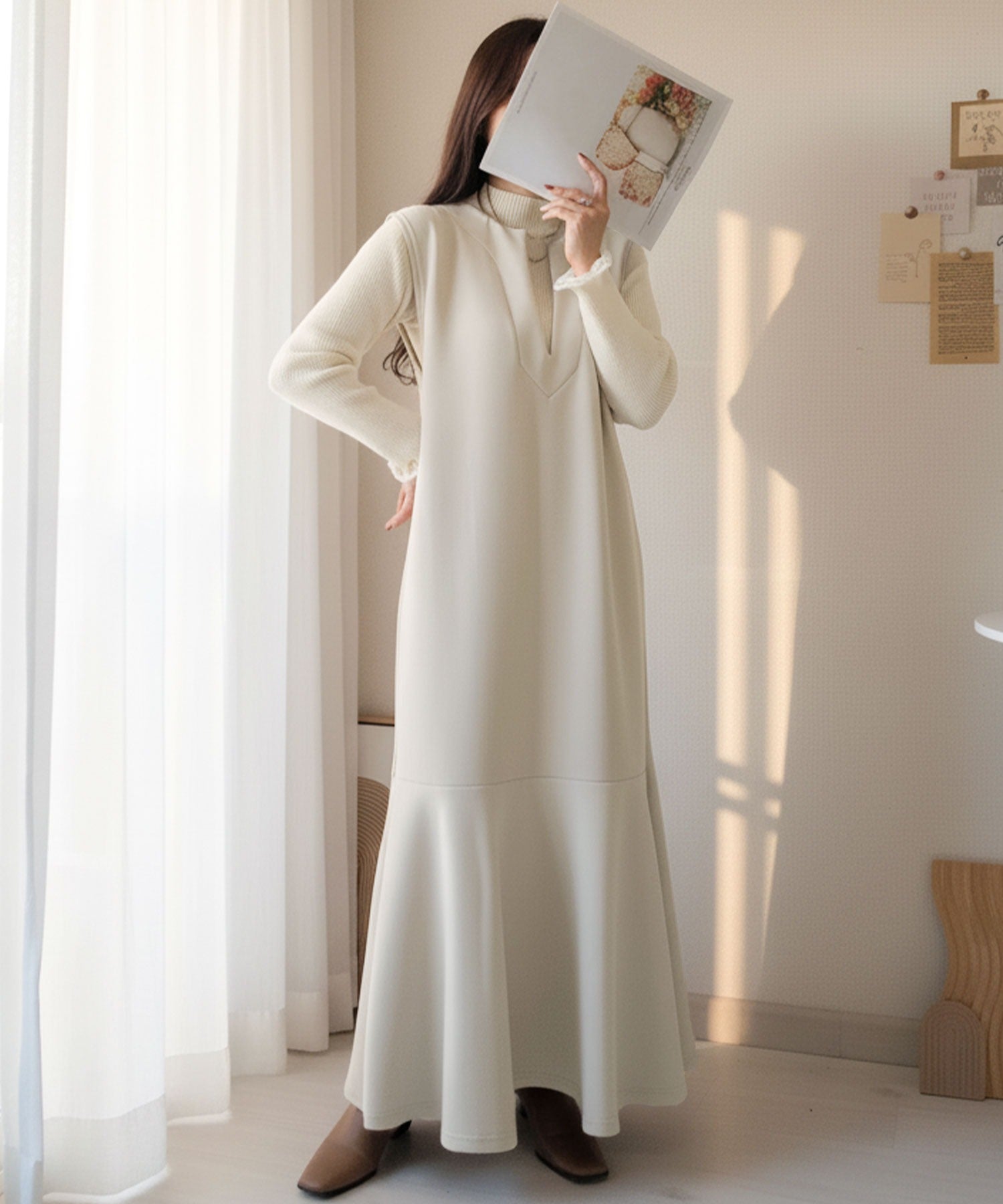 インナー次第で雰囲気が変わる、オールシーズン着回せるワンピース♪