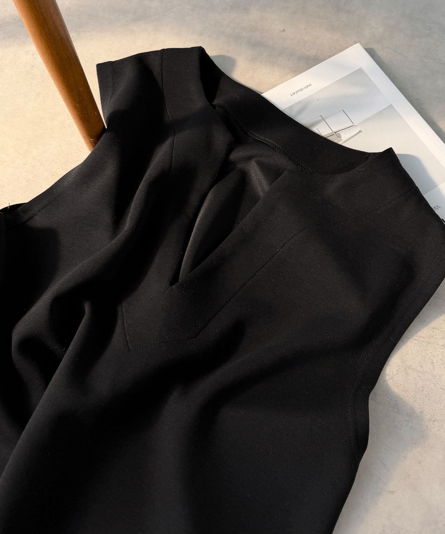 深めVネック×マーメイド切替で、フェミニンな抜け感を演出。