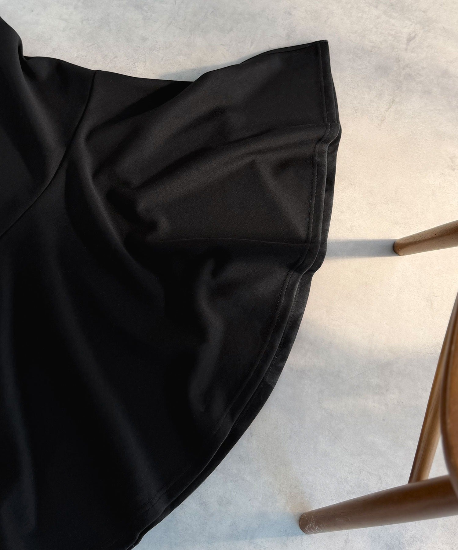 フレンチスリーブが肩周りを優しく覆い、気になる二の腕も自然にカバー。