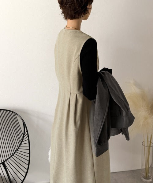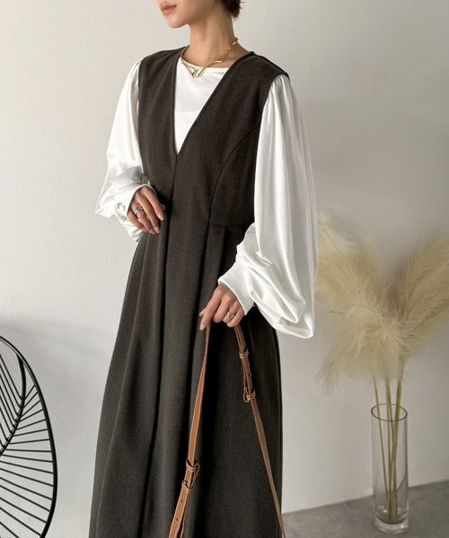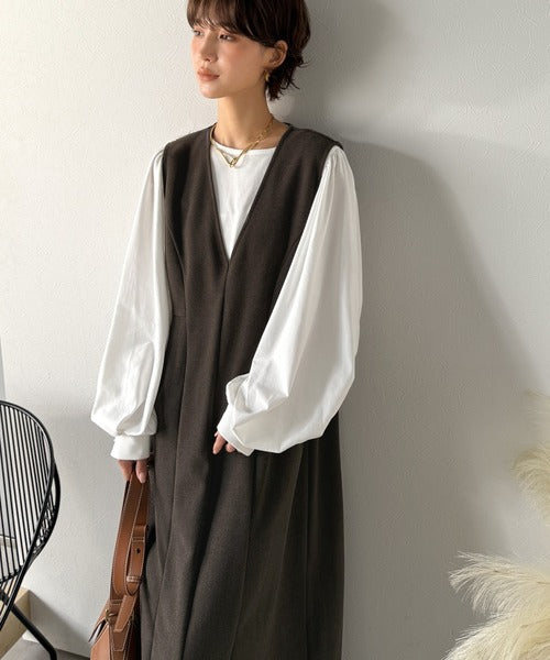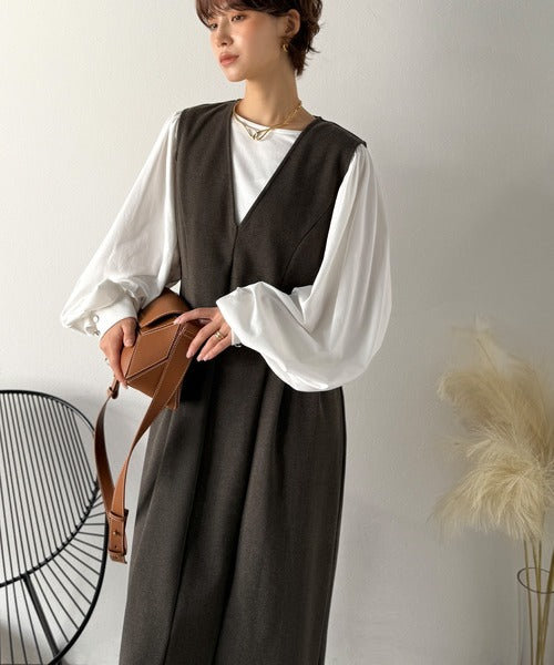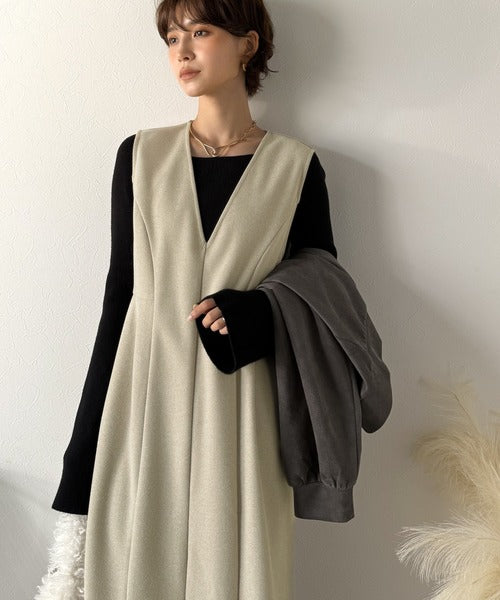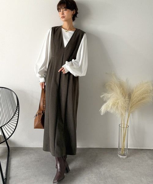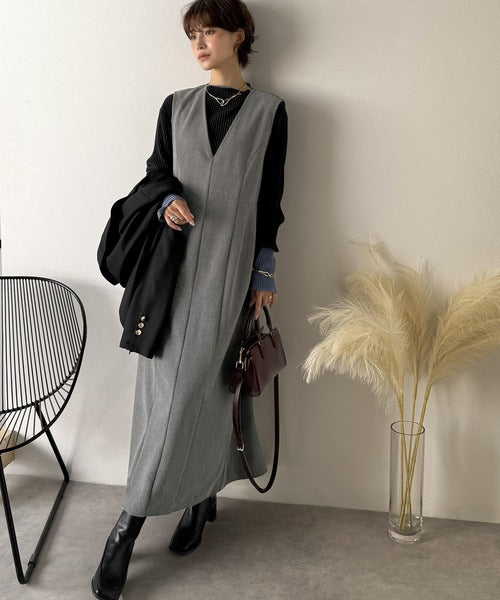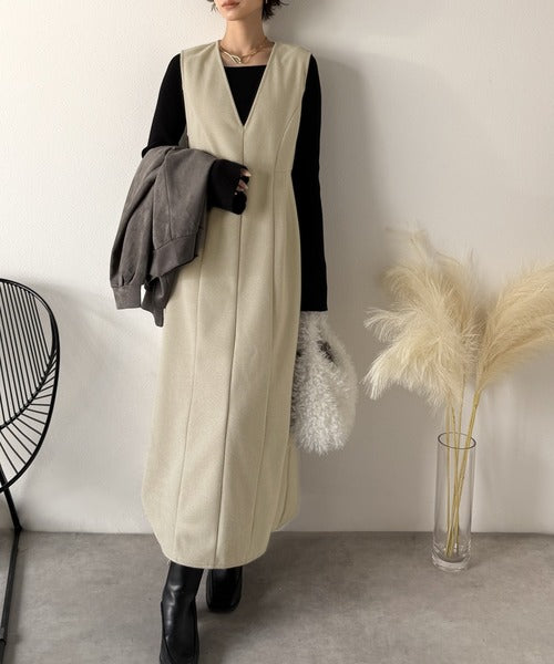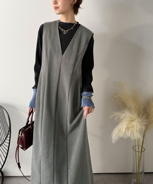 【Classical Evon】一枚で決まる、凛とした美しさ。Vネックウエストタックワンピース(ロング丈) ev1110146