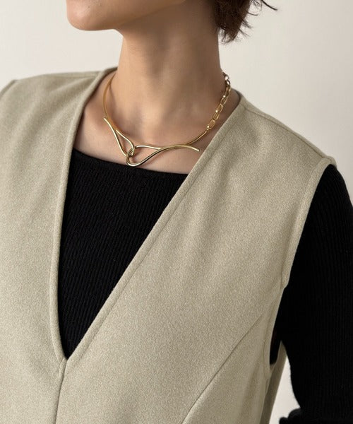 顔まわりをすっきり見せる深めのVネックと