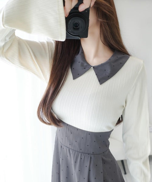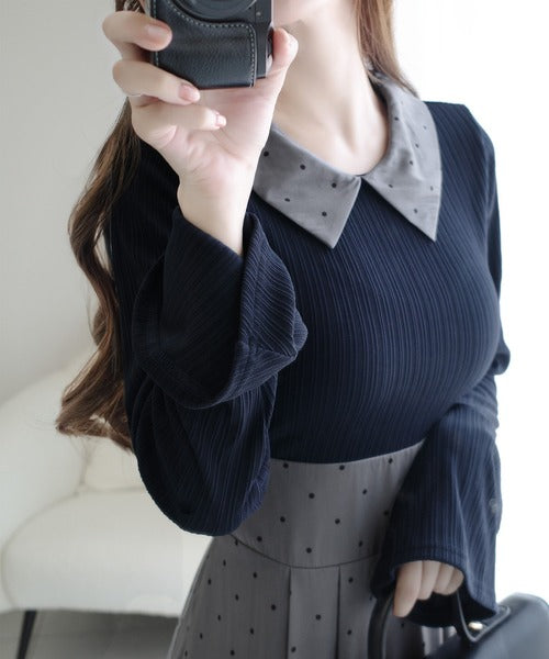 柔らかいリブ生地と透け感のあるドット生地。