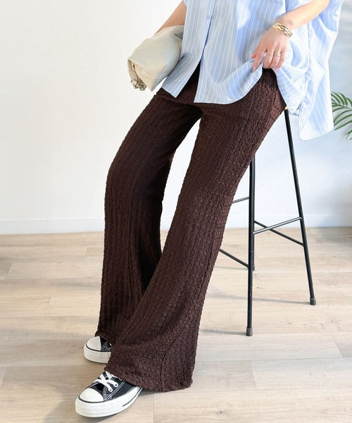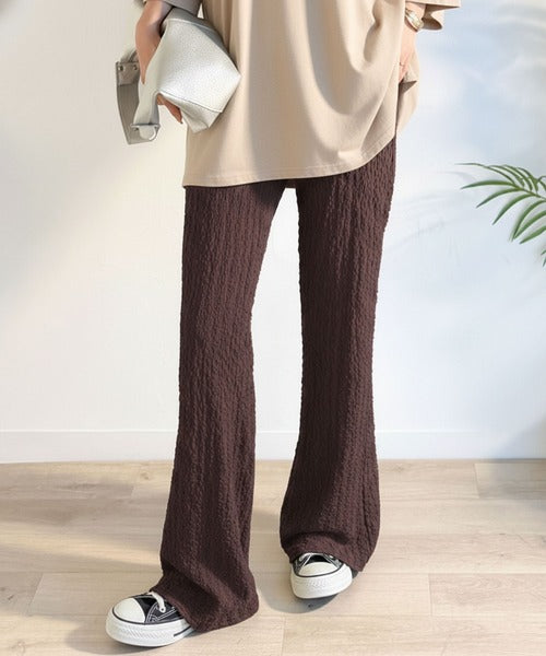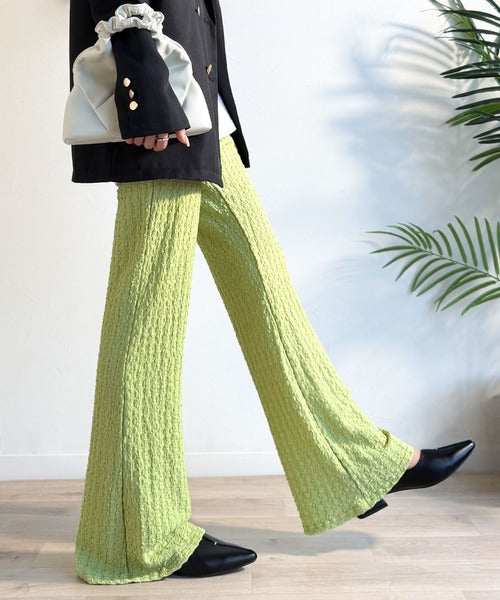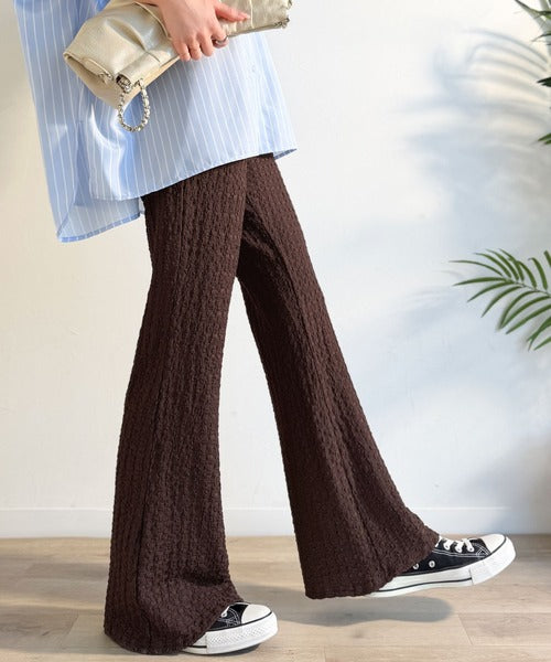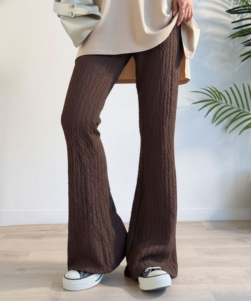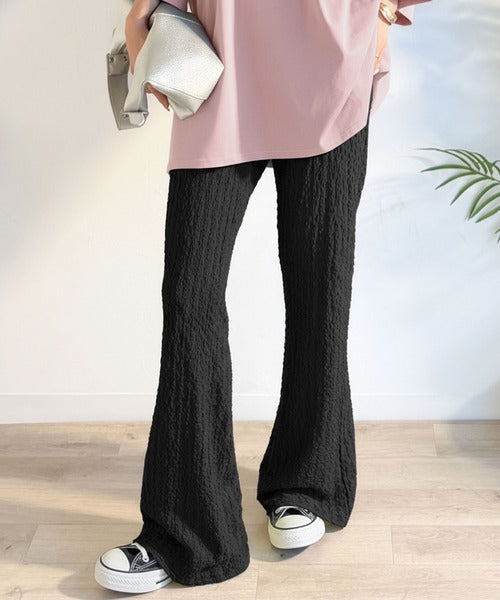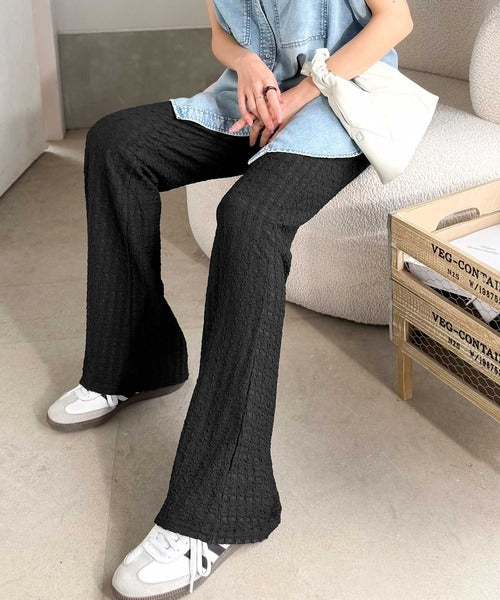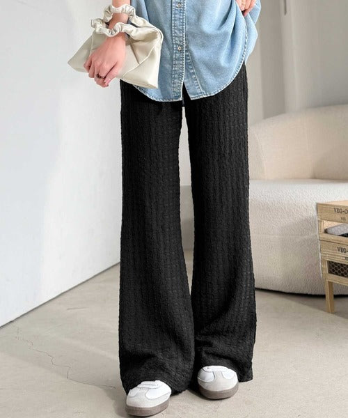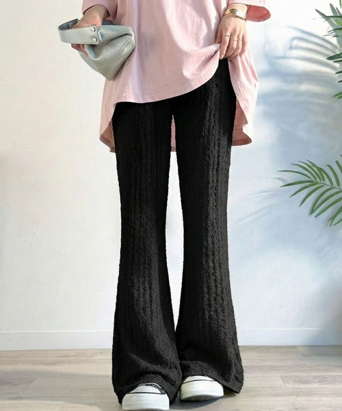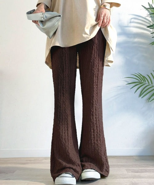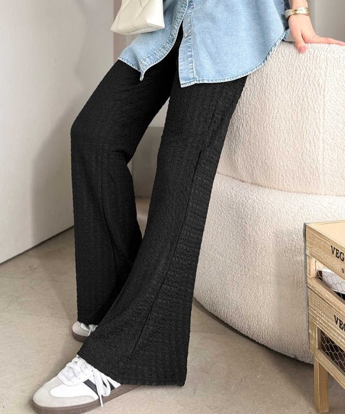 ラクに穿けて、上品にスタイルアップ♪ジャガードセミフレアパンツ ce1015100
