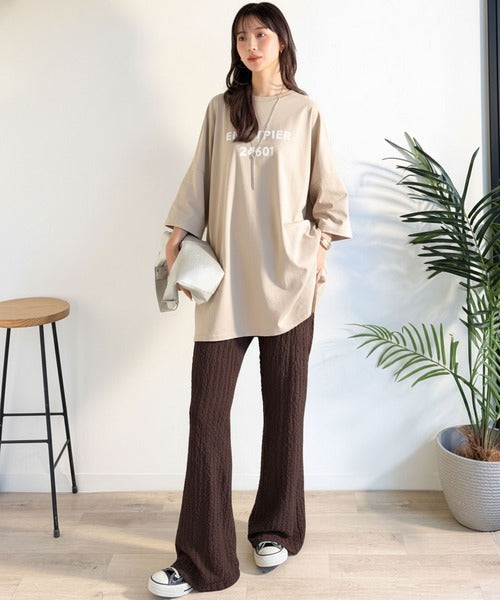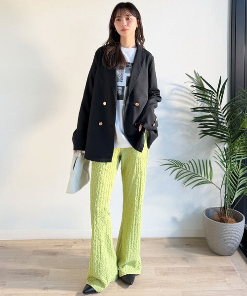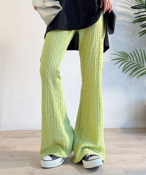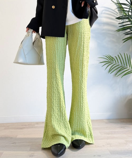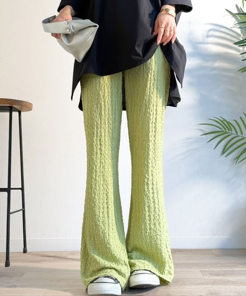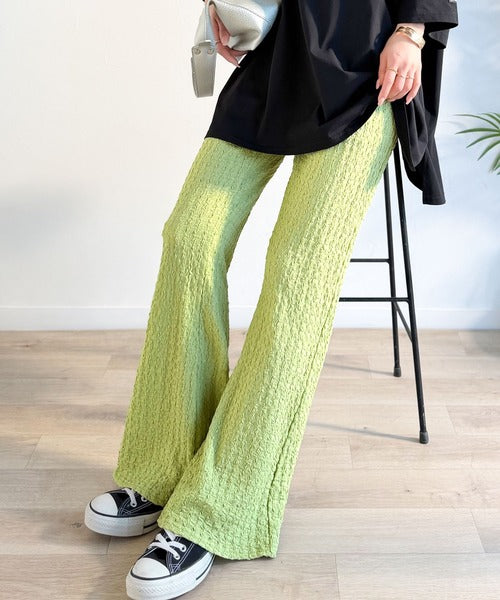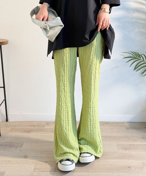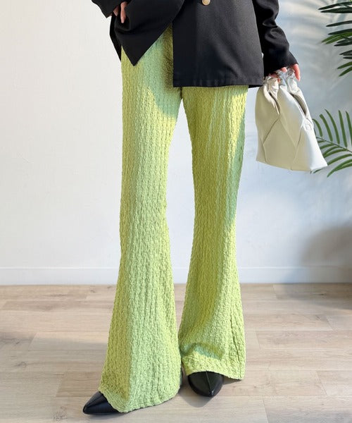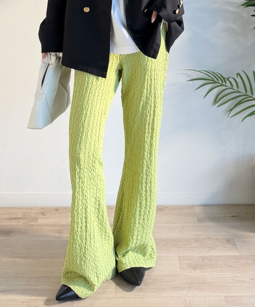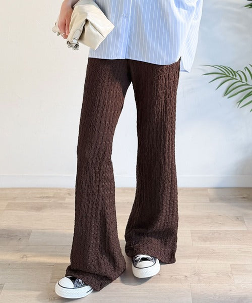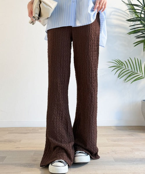 ラクに穿けて、上品にスタイルアップ♪ジャガードセミフレアパンツ ce1015100