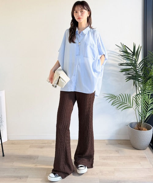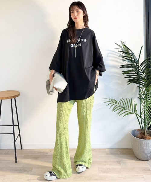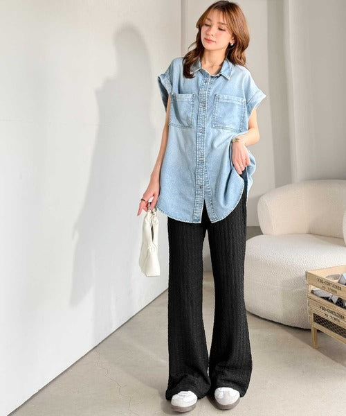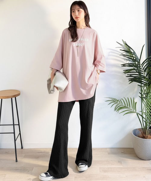 ゆるいフレアパンツデザインが、どんなテイストにも合わせやすく