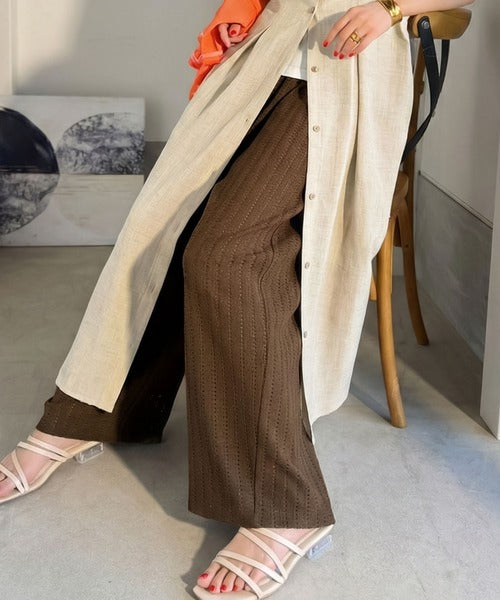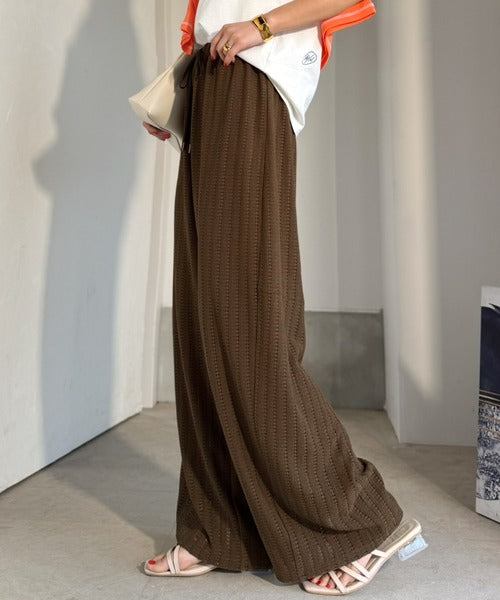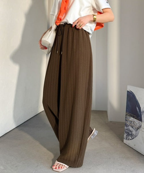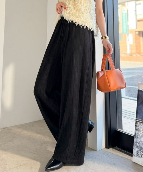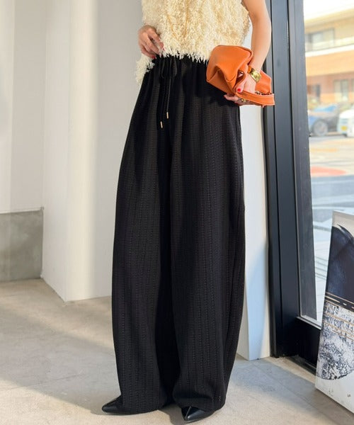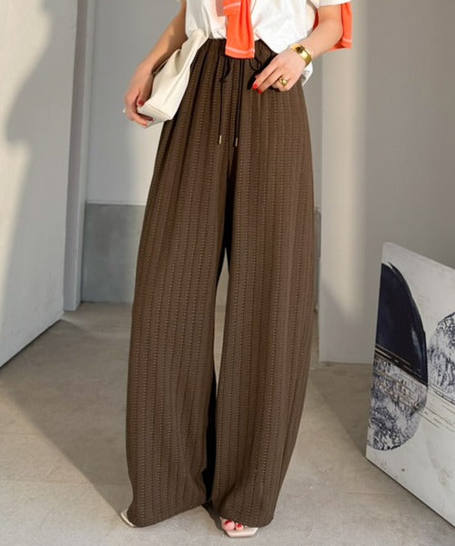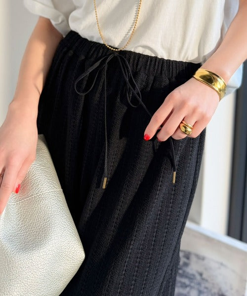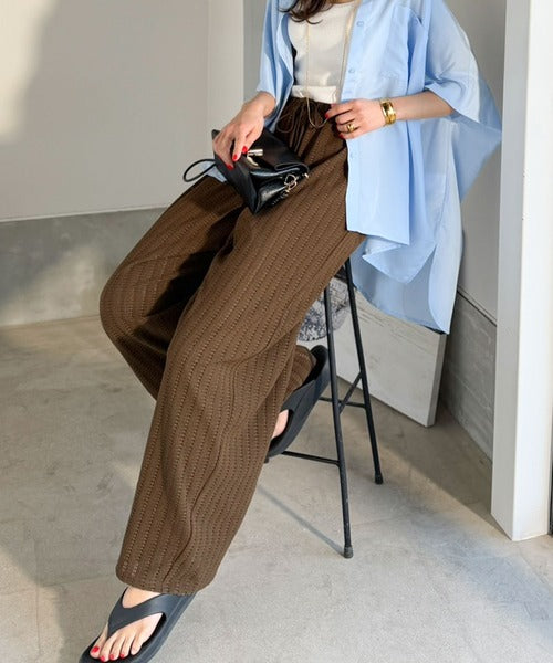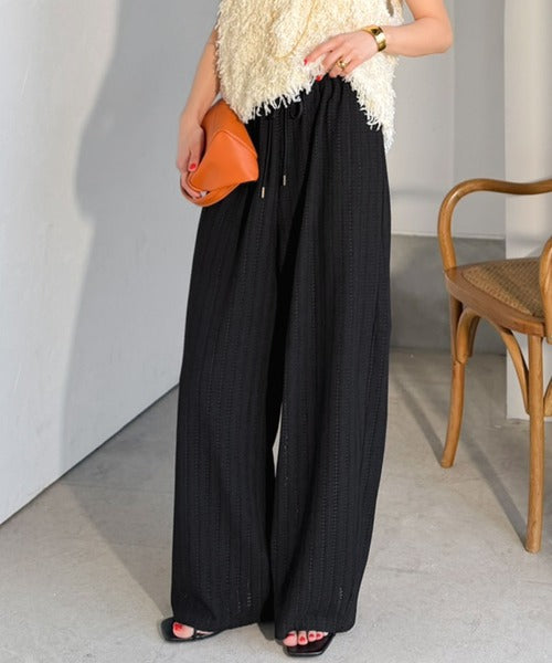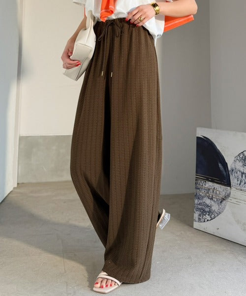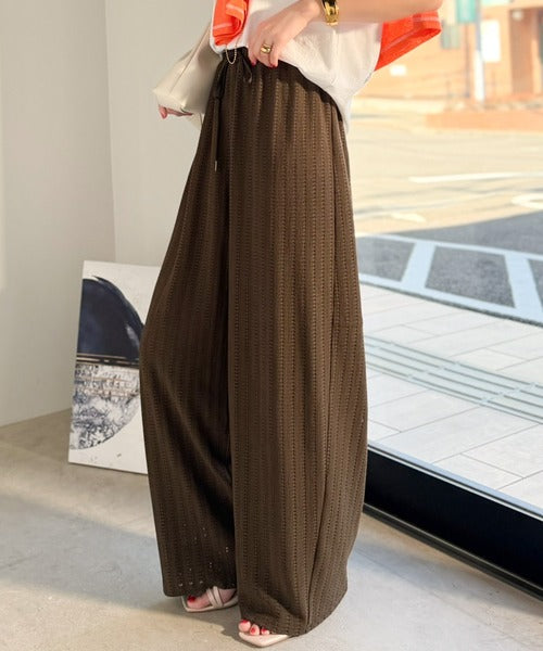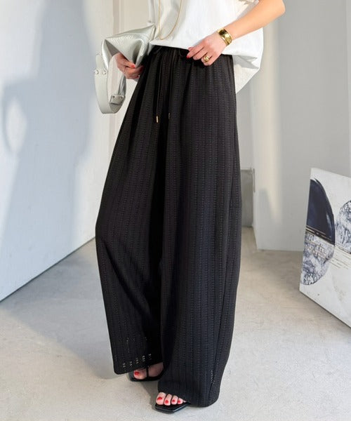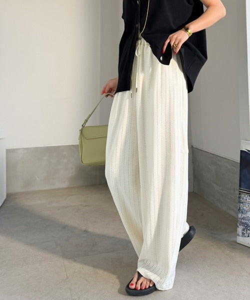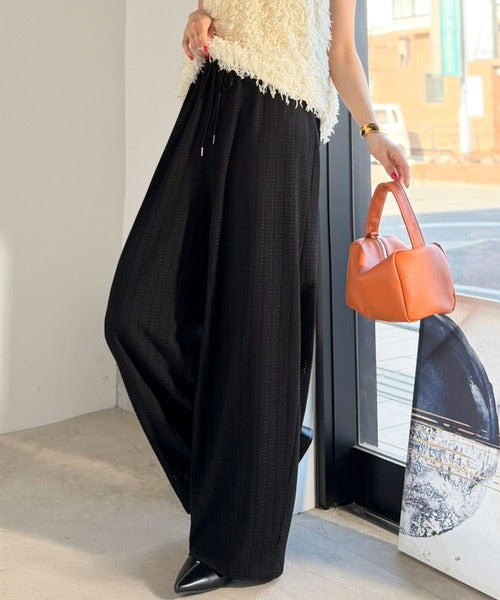 透かし編みでラクチンに映える♪ジャガードレースギャザーコクーンパンツ ce1110188