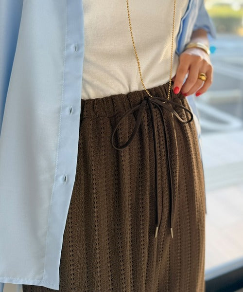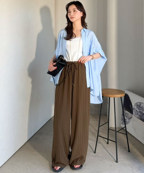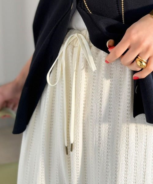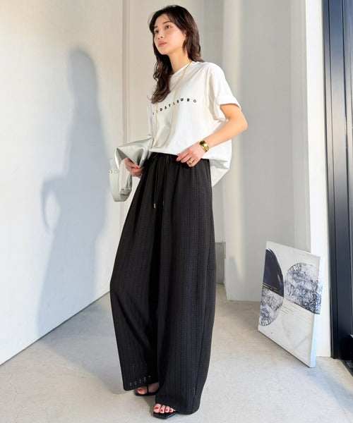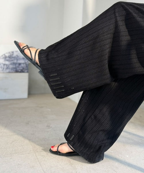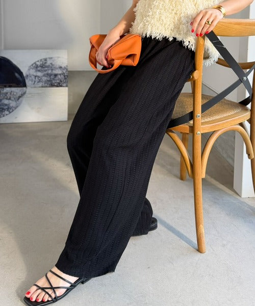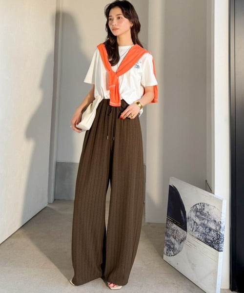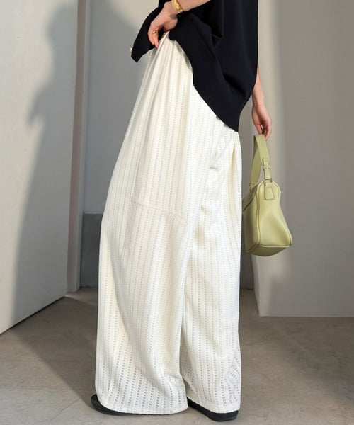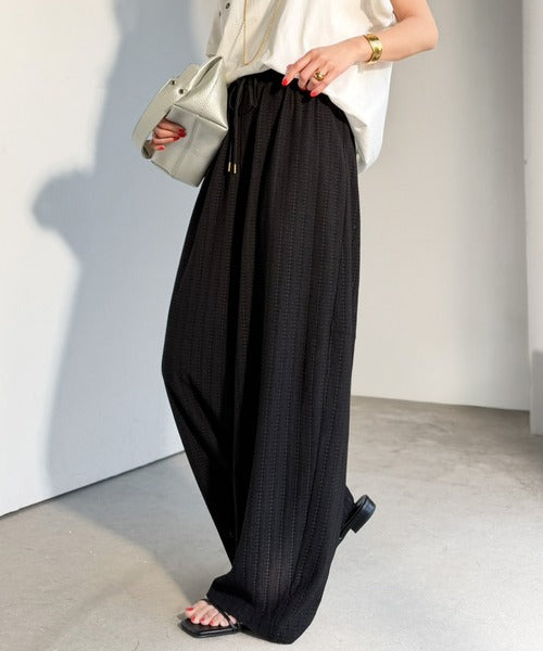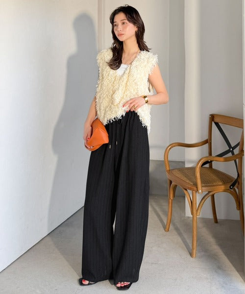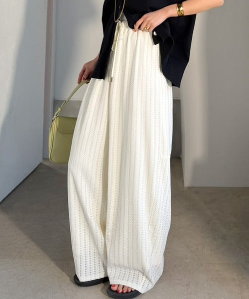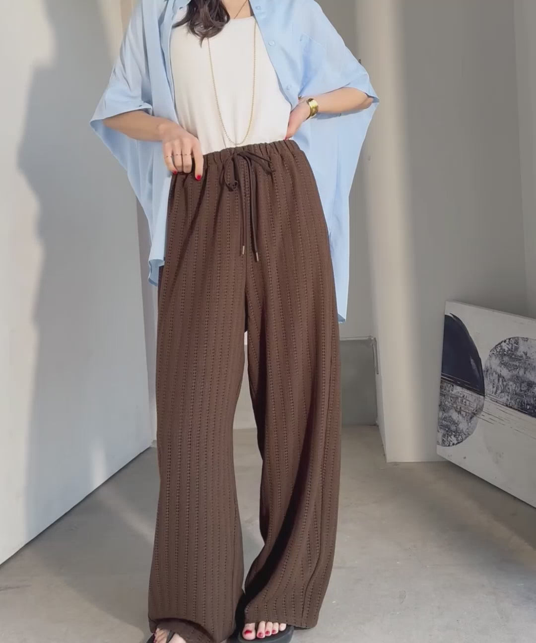 透かし編みでラクチンに映える♪ジャガードレースギャザーコクーンパンツ ce1110188