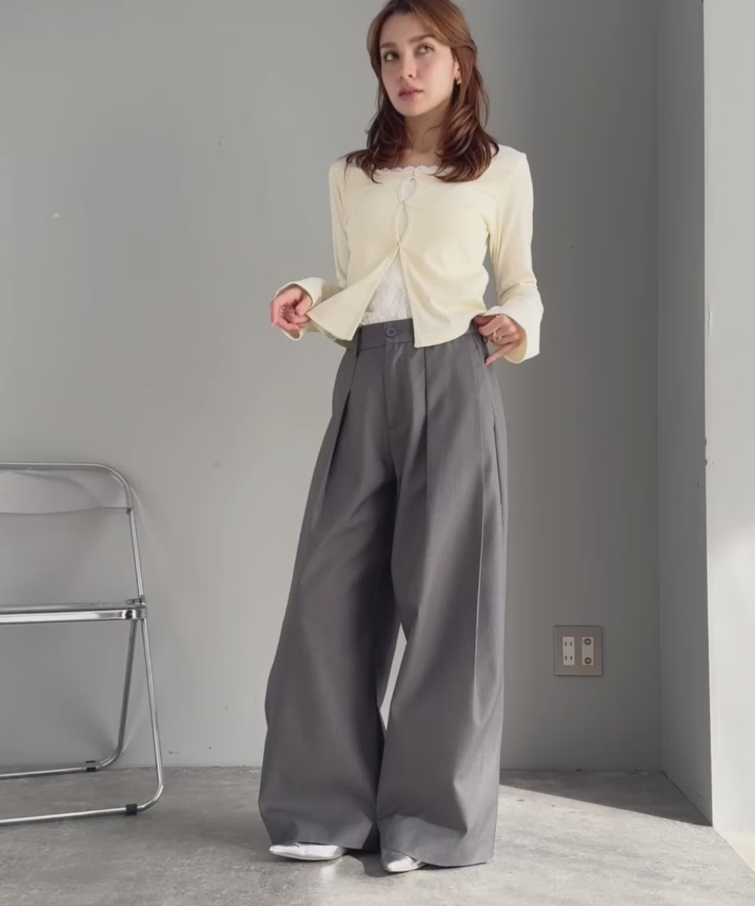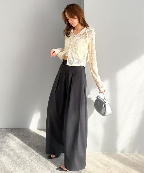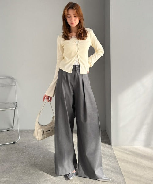 ワイドシルエットながら、上品ですっきりとした印象に。