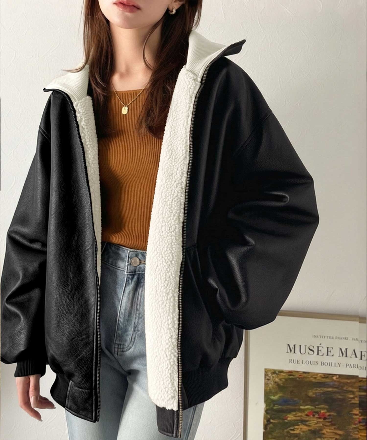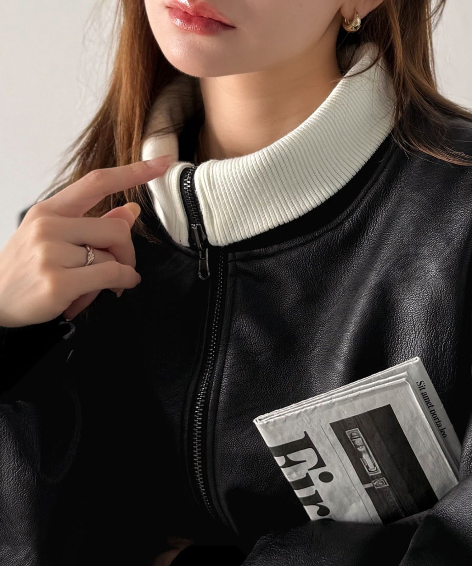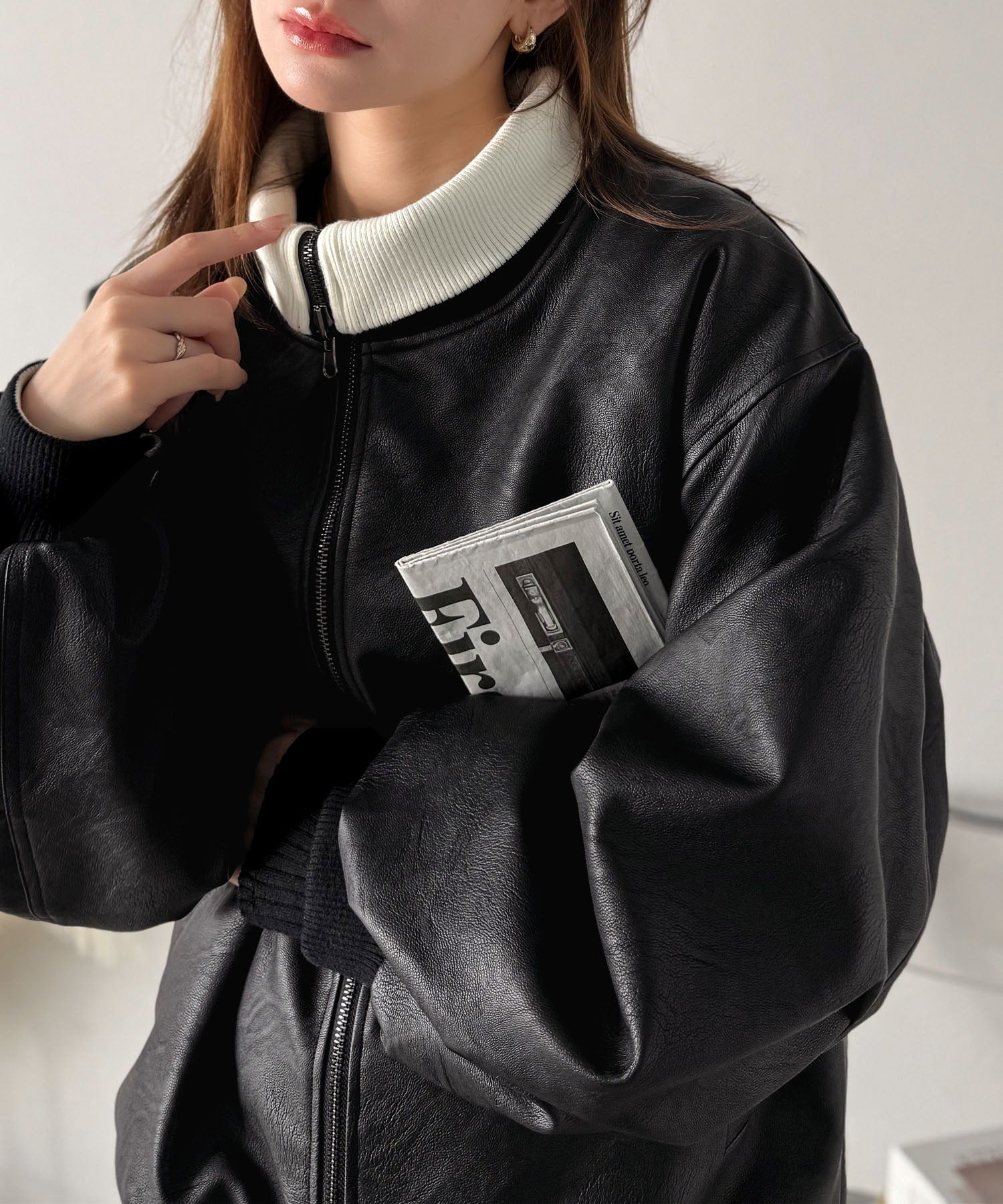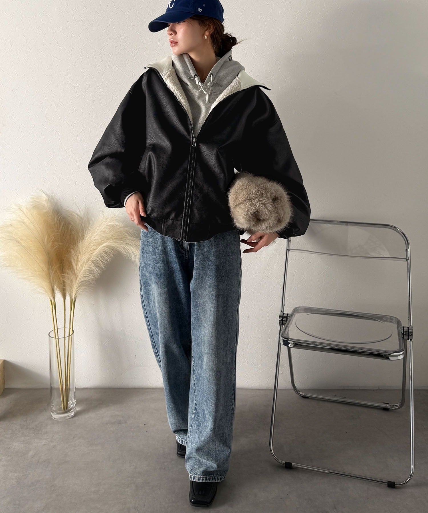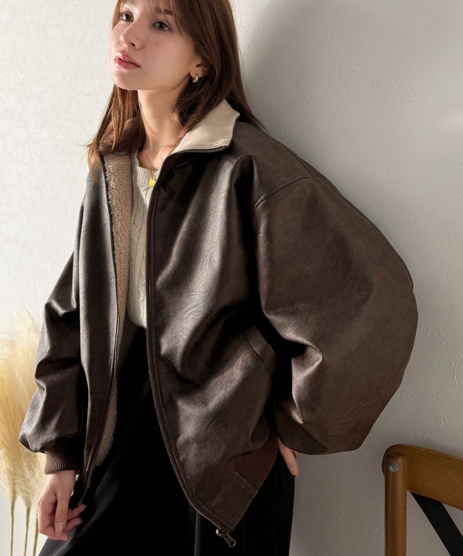 スタイリッシュなフェイクレザー×ボアブルゾン。