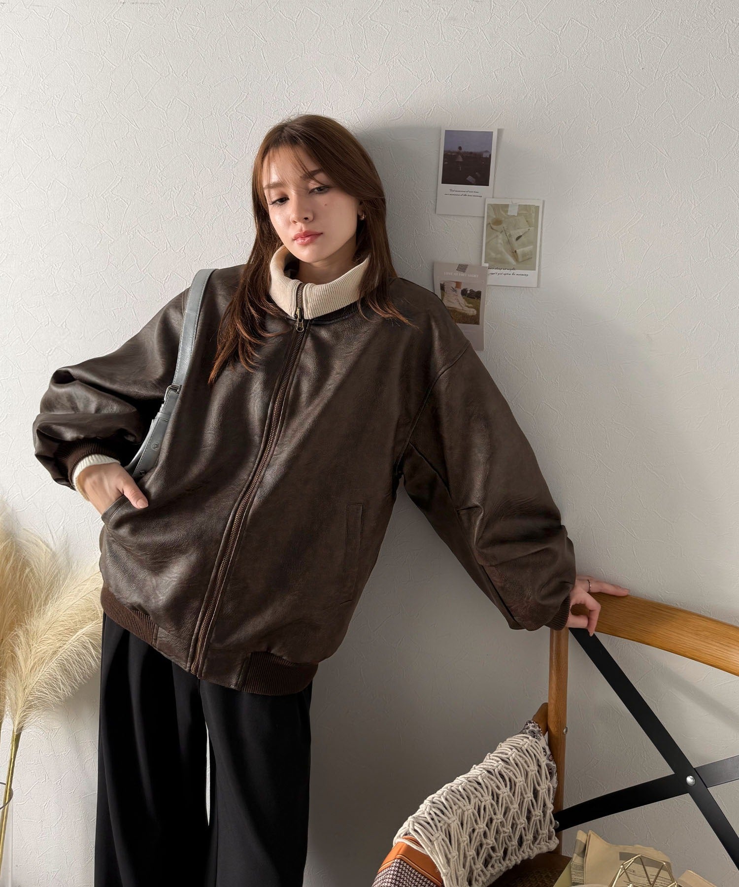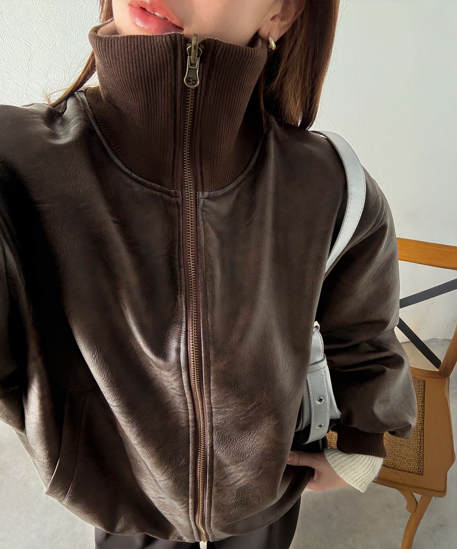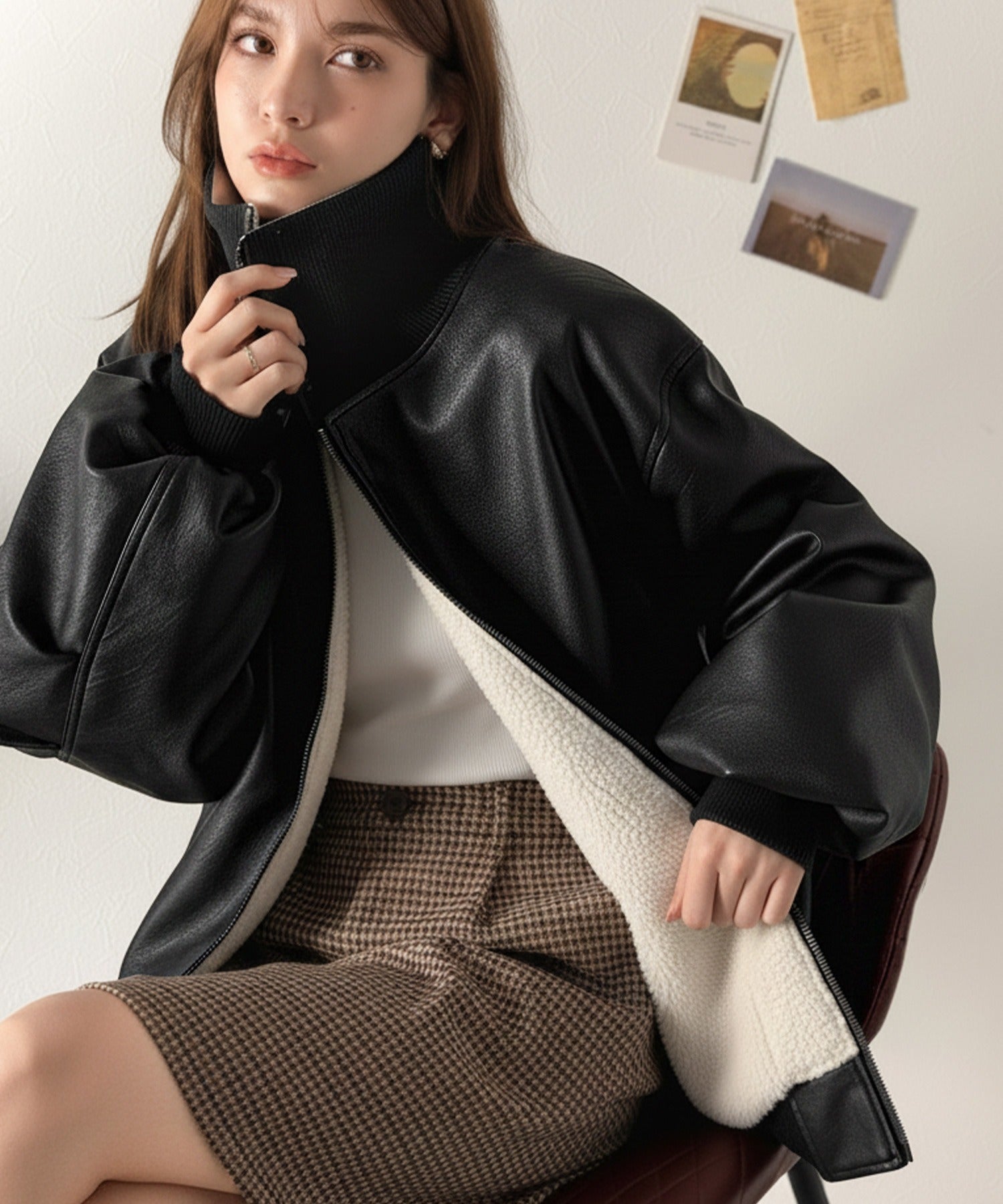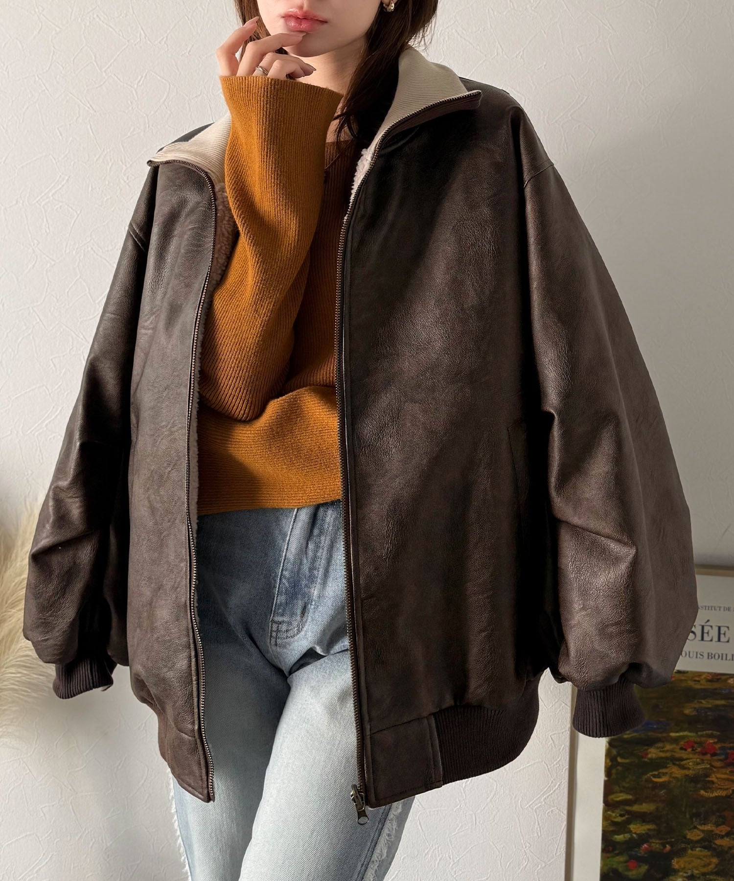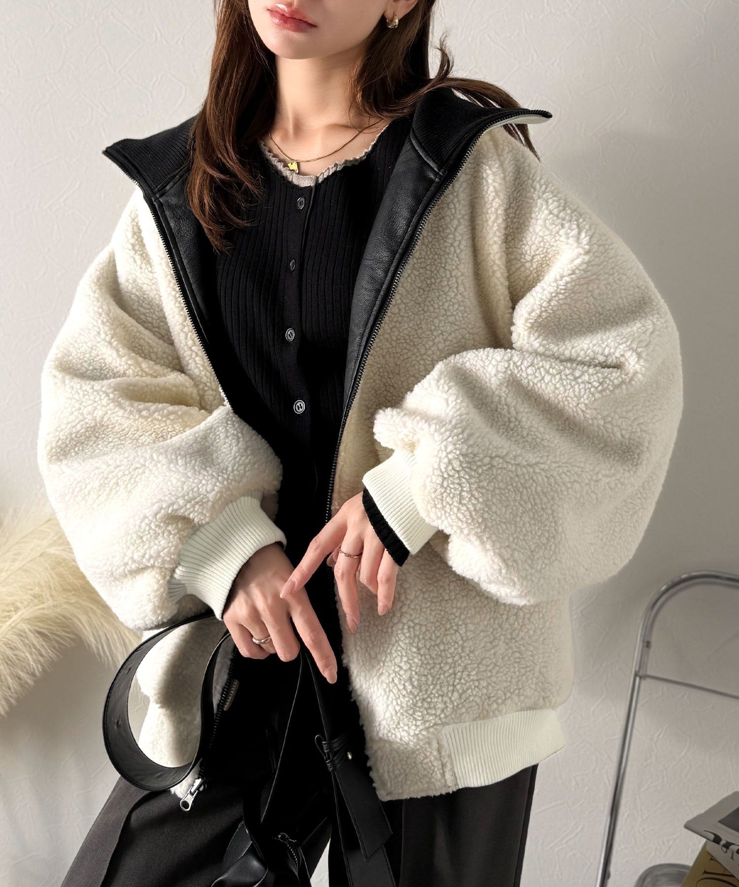 スタイリッシュなフェイクレザー×ボアブルゾン。
