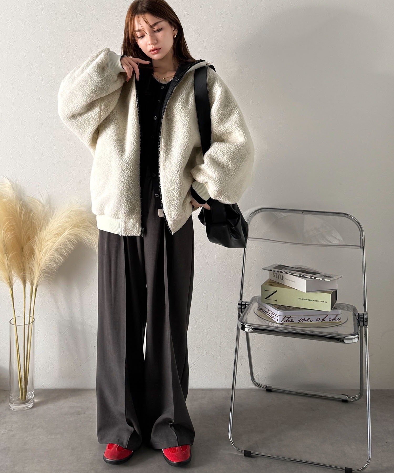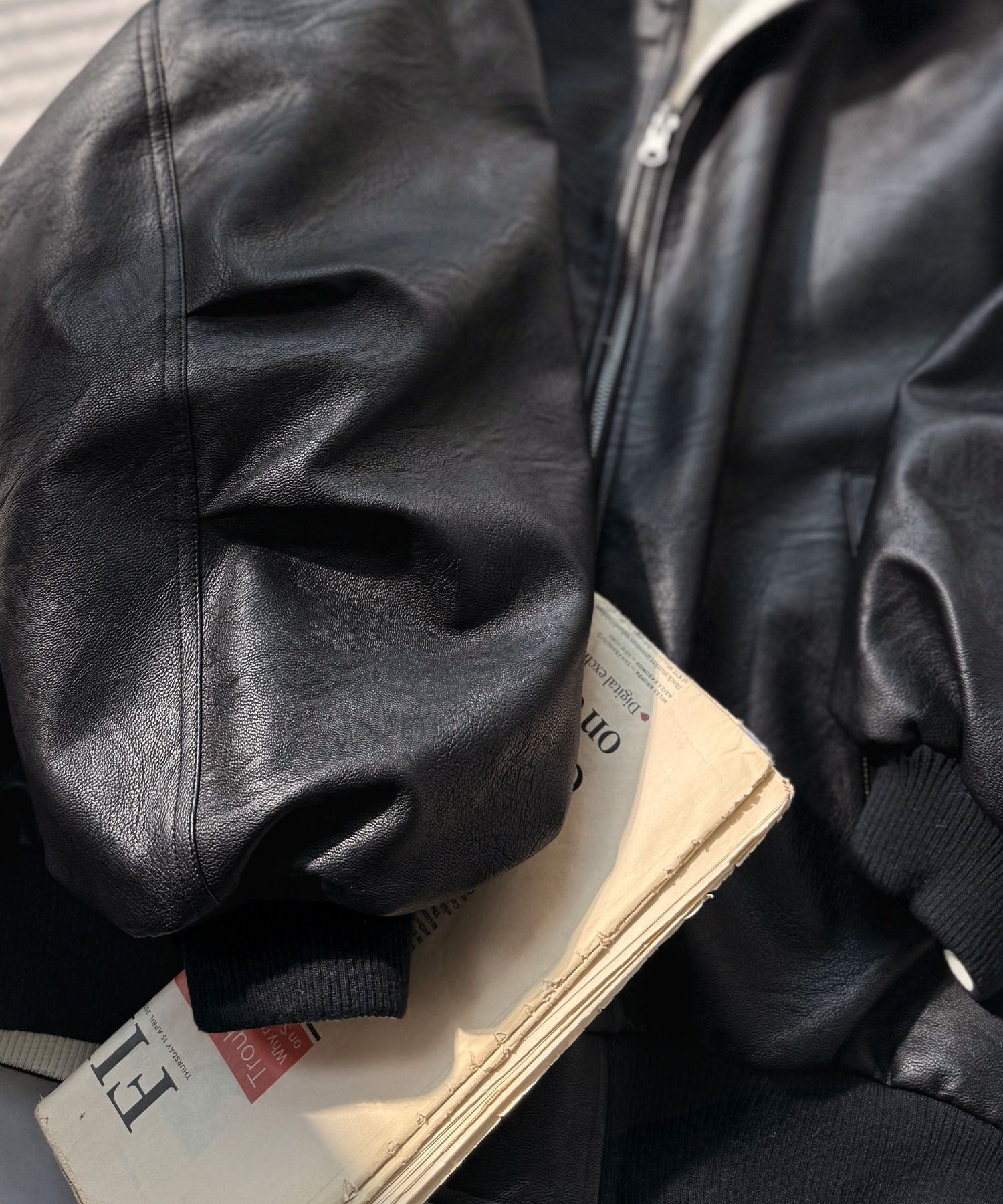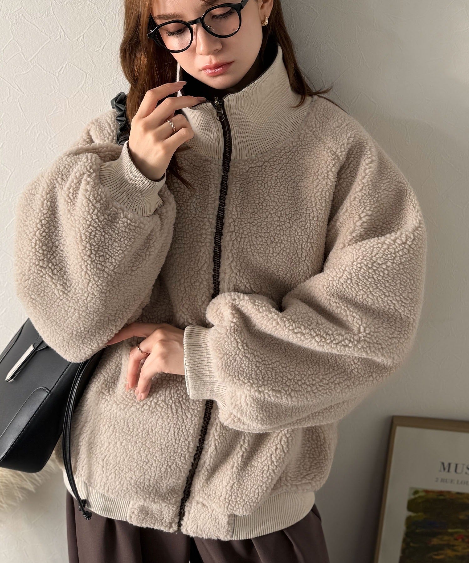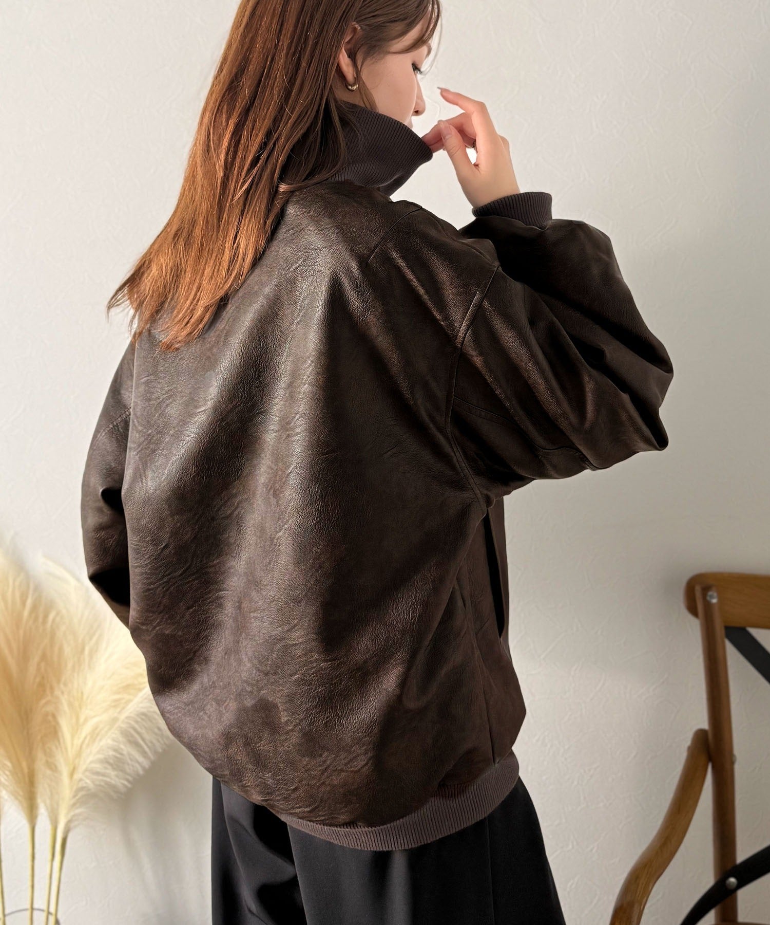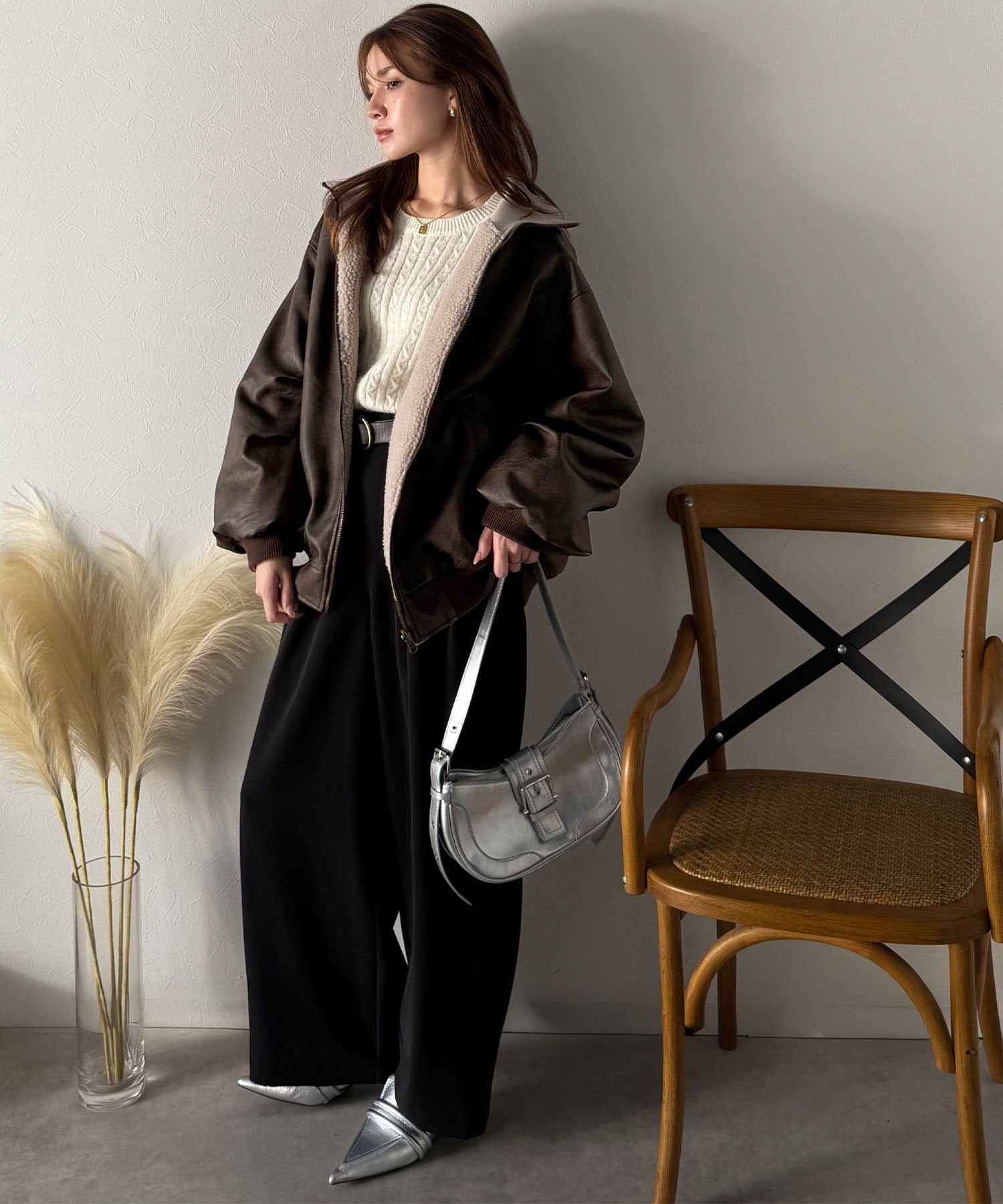 スタイリッシュなフェイクレザー×ボアブルゾン。