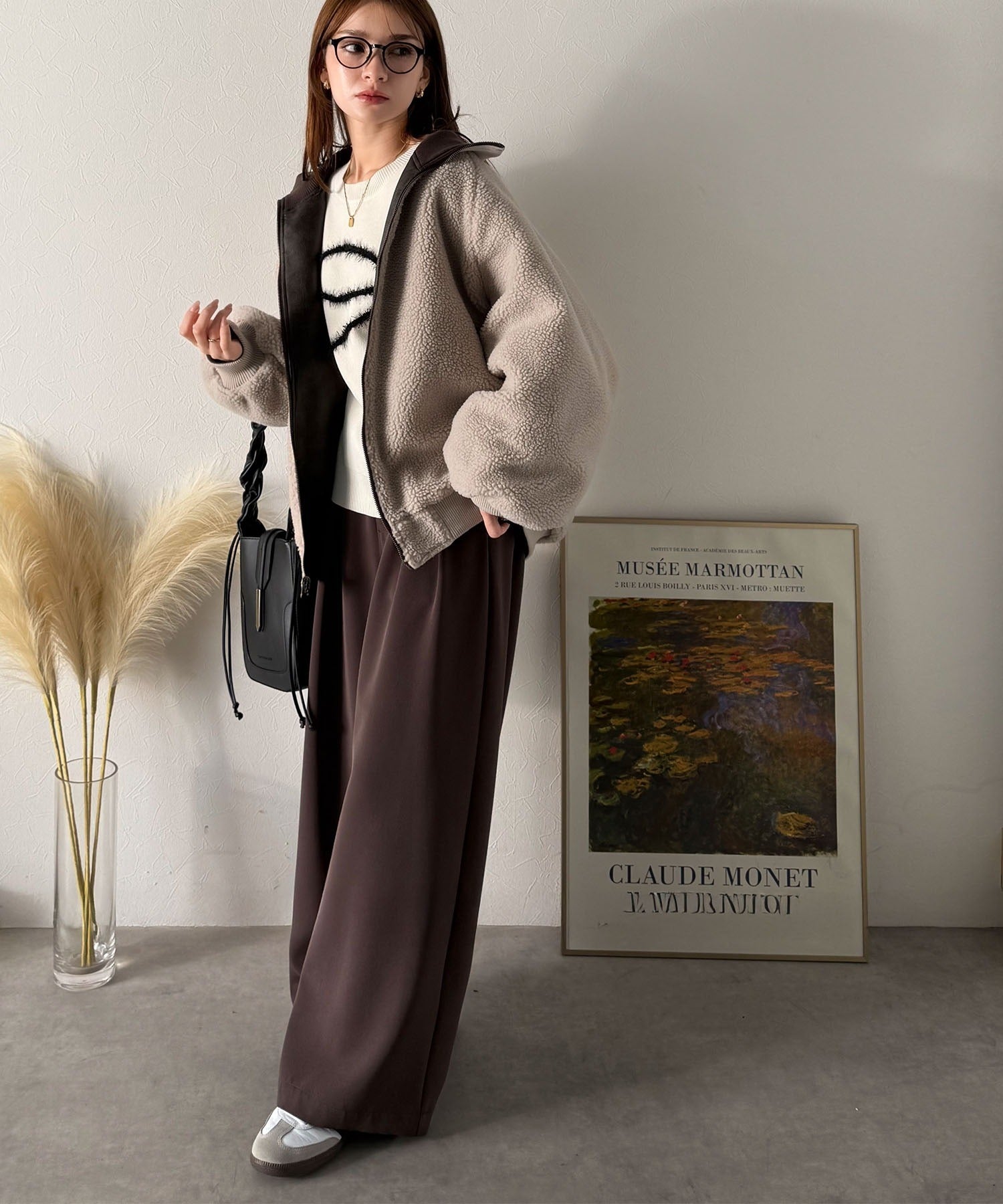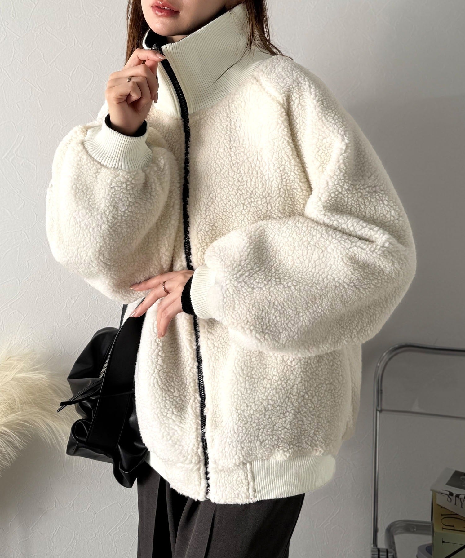 《JaVaジャバコラボ》気分に合わせて変化を楽しむ。2wayフェイクレザー×ボアリバーシブルブルゾン jv1010525