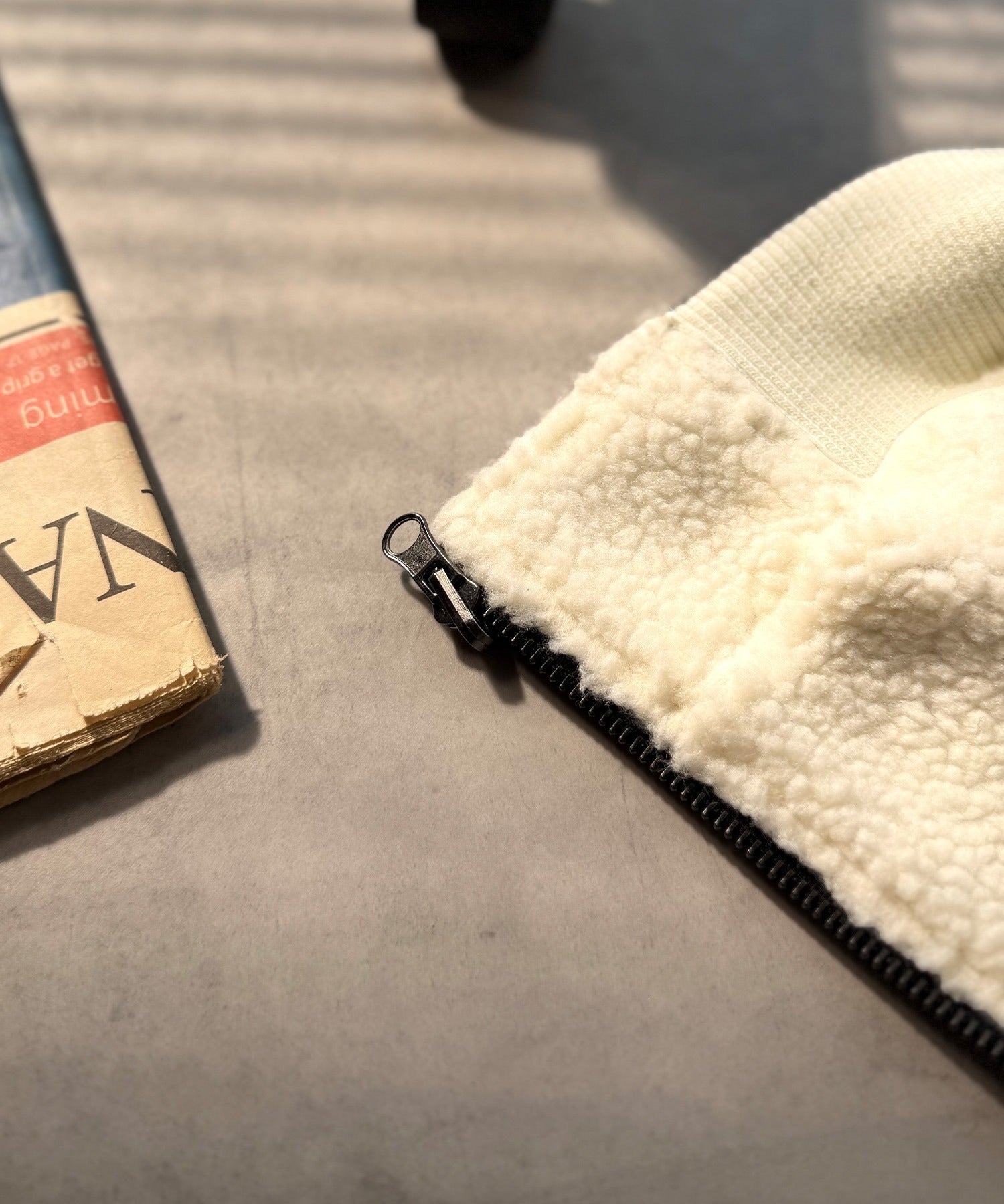 温かみのあるボア素材と、リアルレザーさながらのヴィンテージ感漂うフェイクレザーの組み合わせが魅力。
