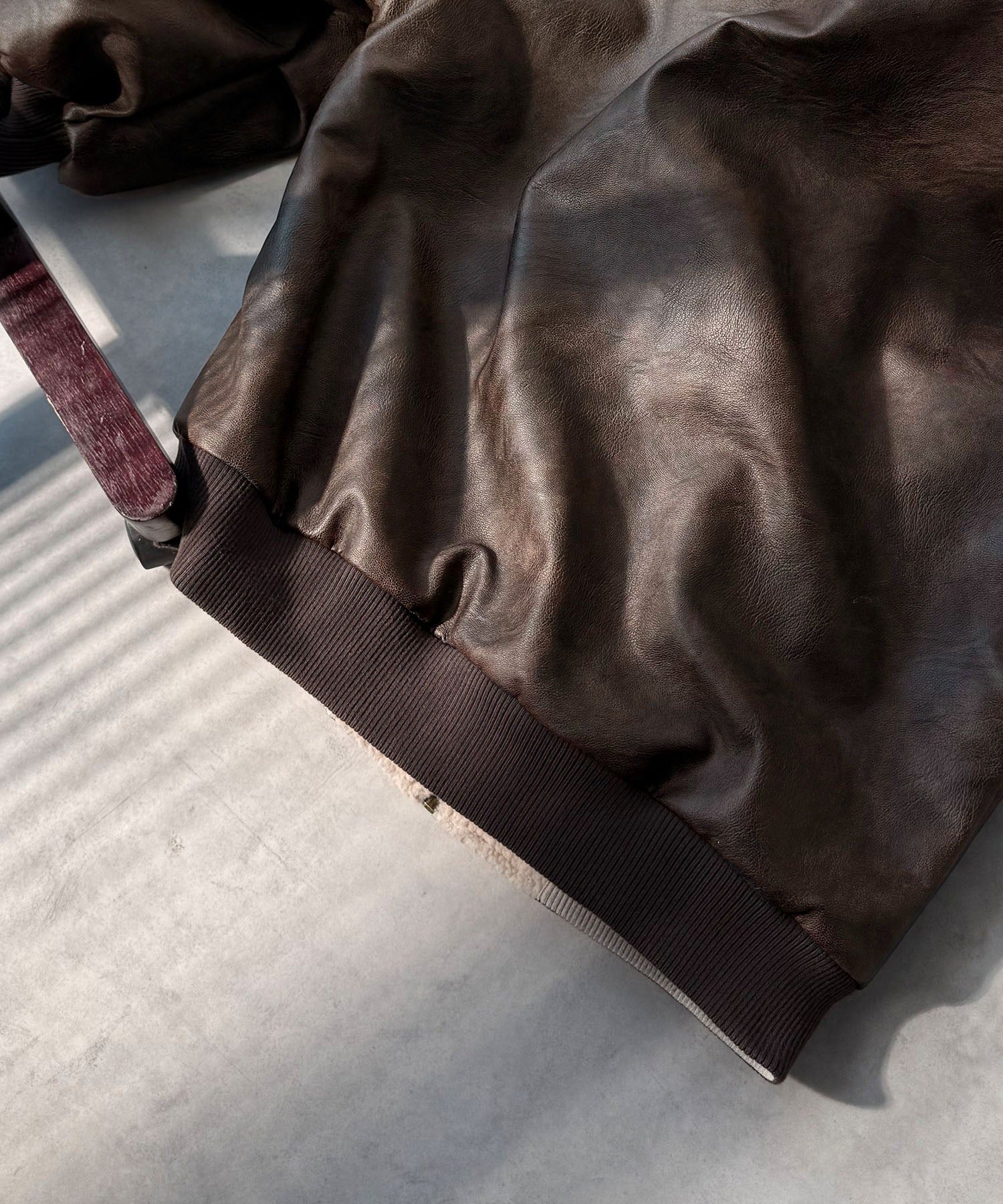 ヴィンテージ感溢れる合成皮革とボアのリバーシブル仕様。