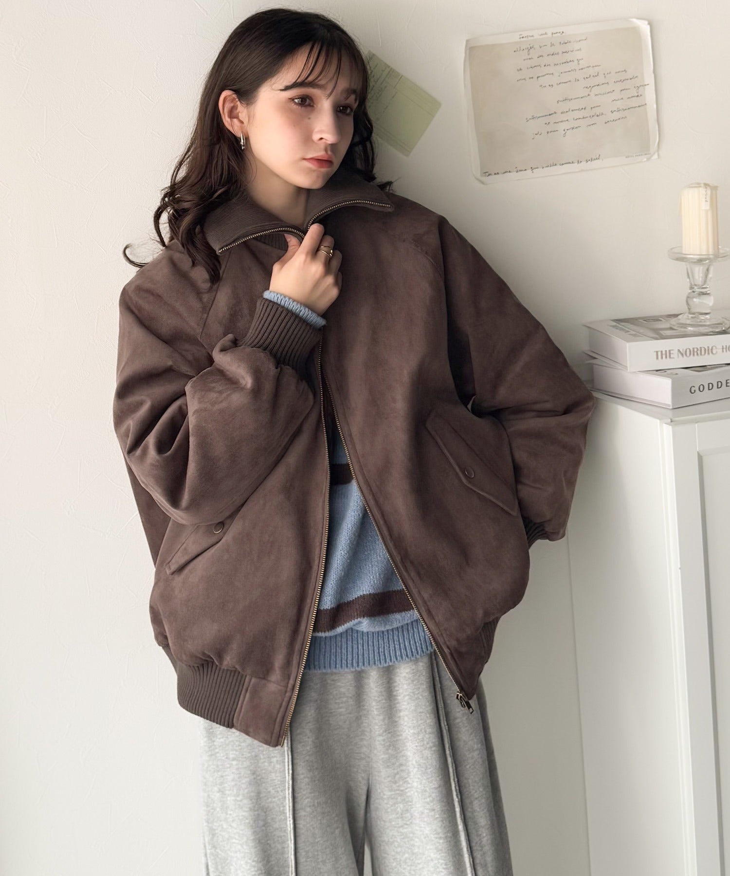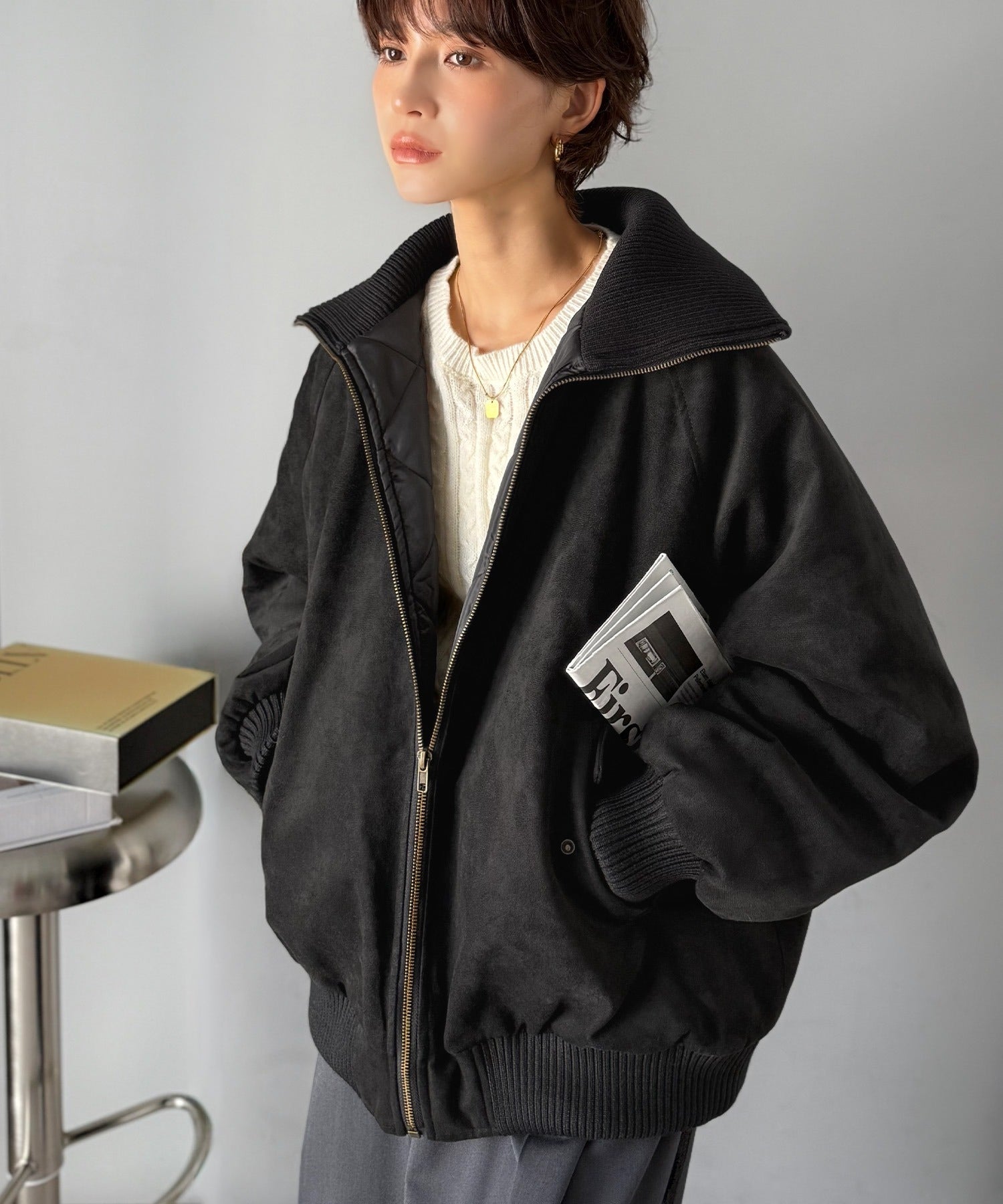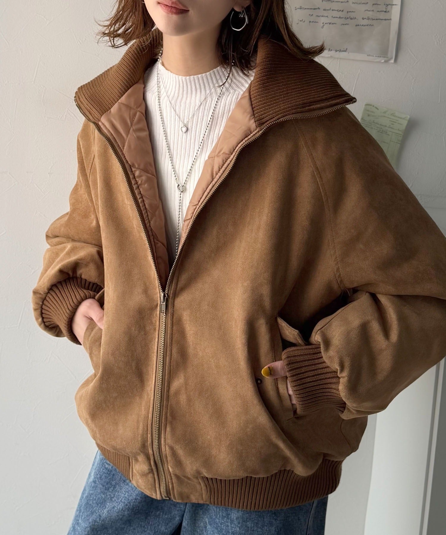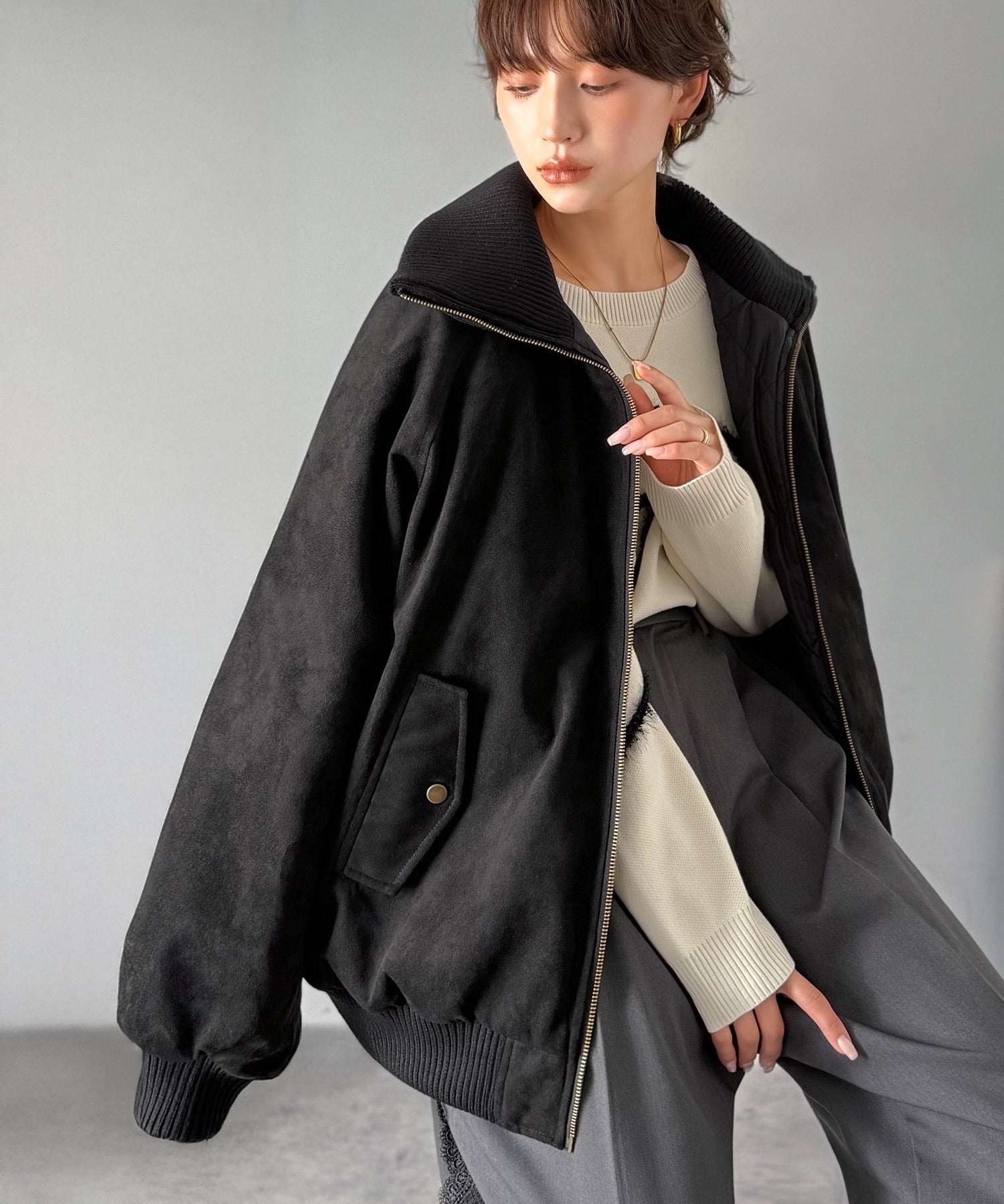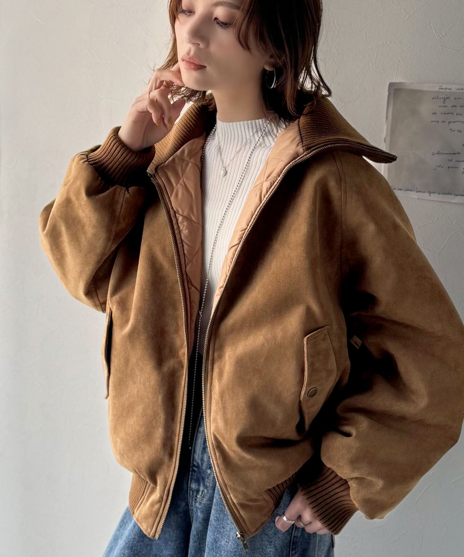《JaVaジャバコラボ》甘辛バランスで“大人可愛い”を格上げ。リブタートル オーバーサイズスウェードブルゾン jv1240099