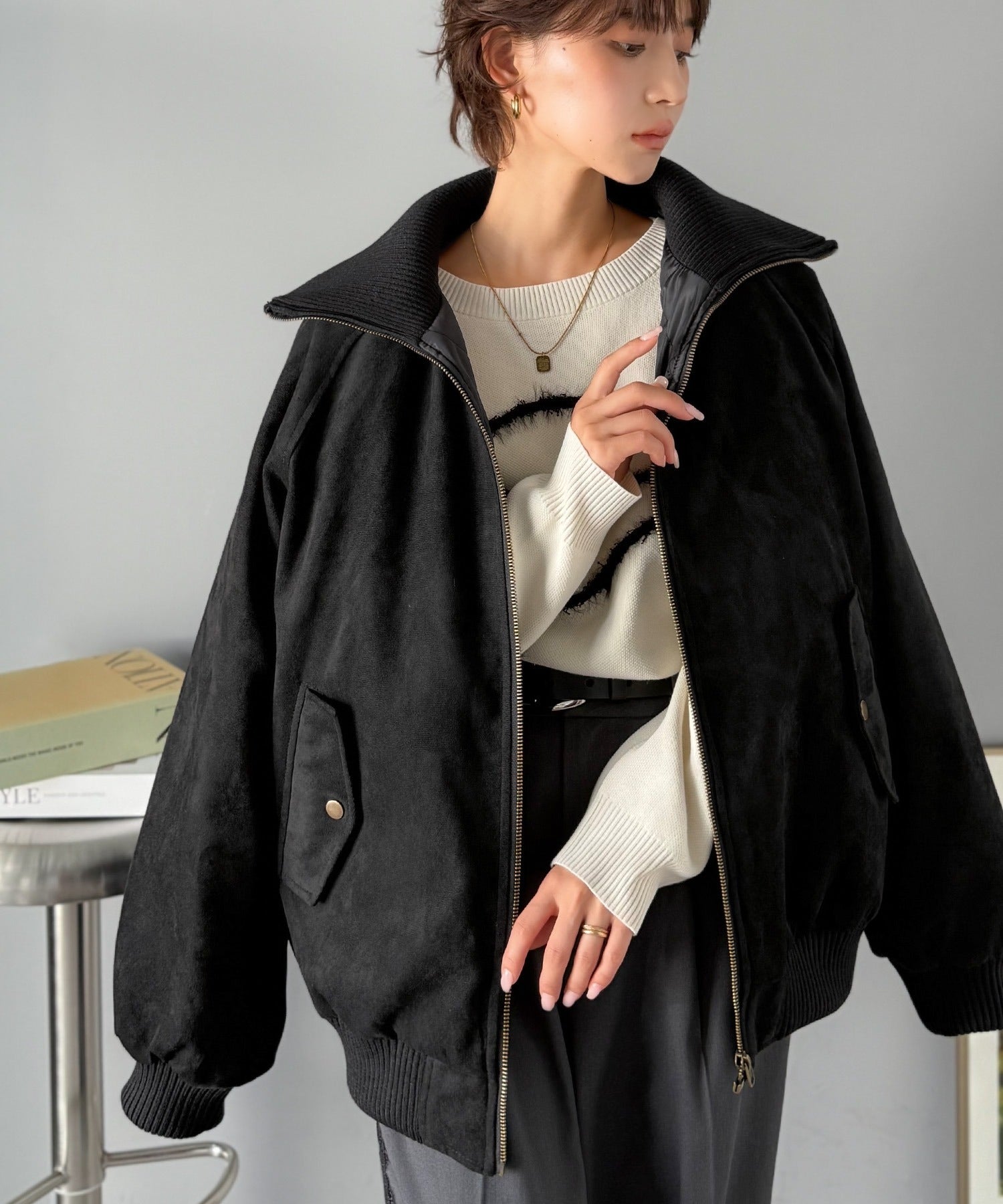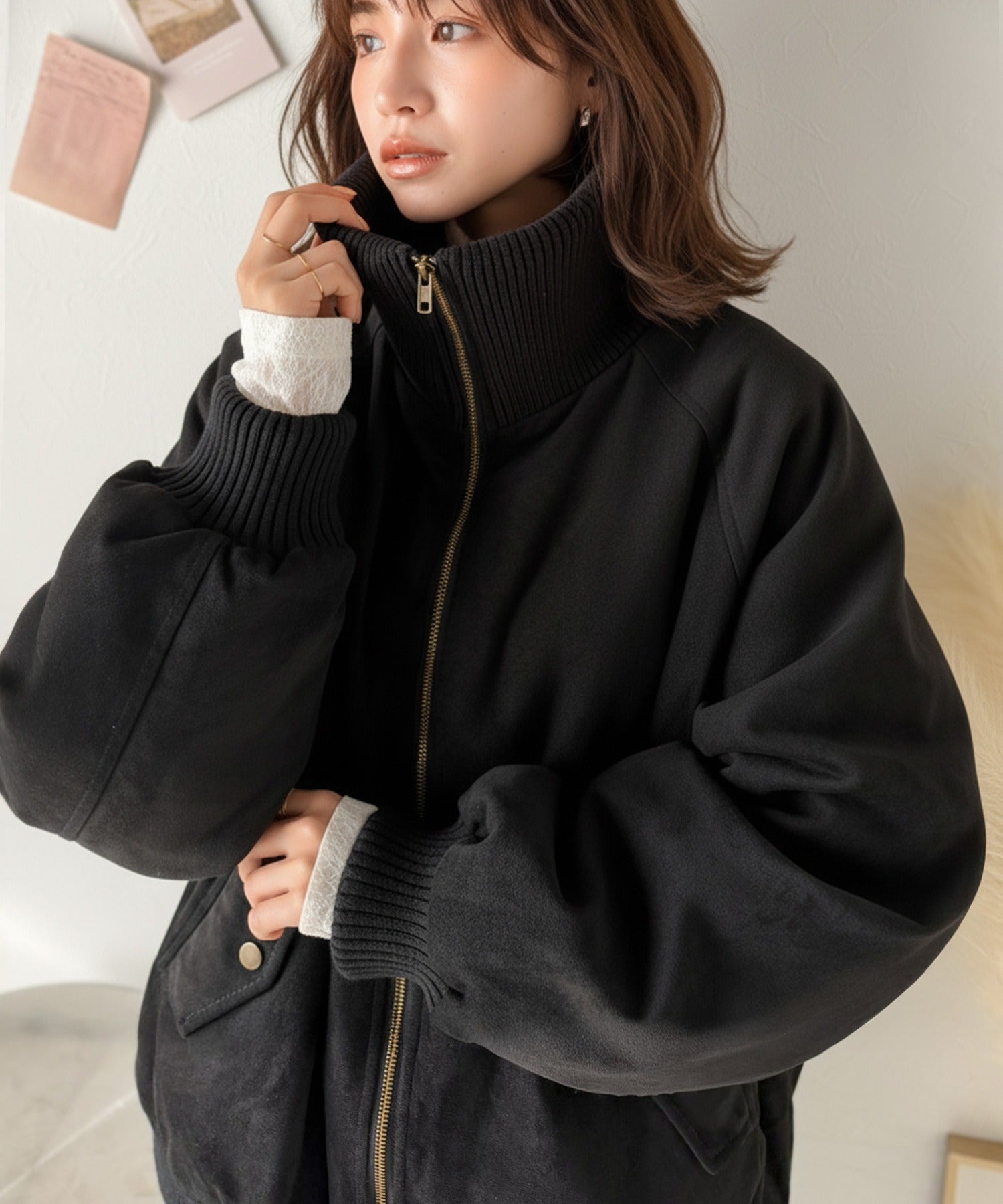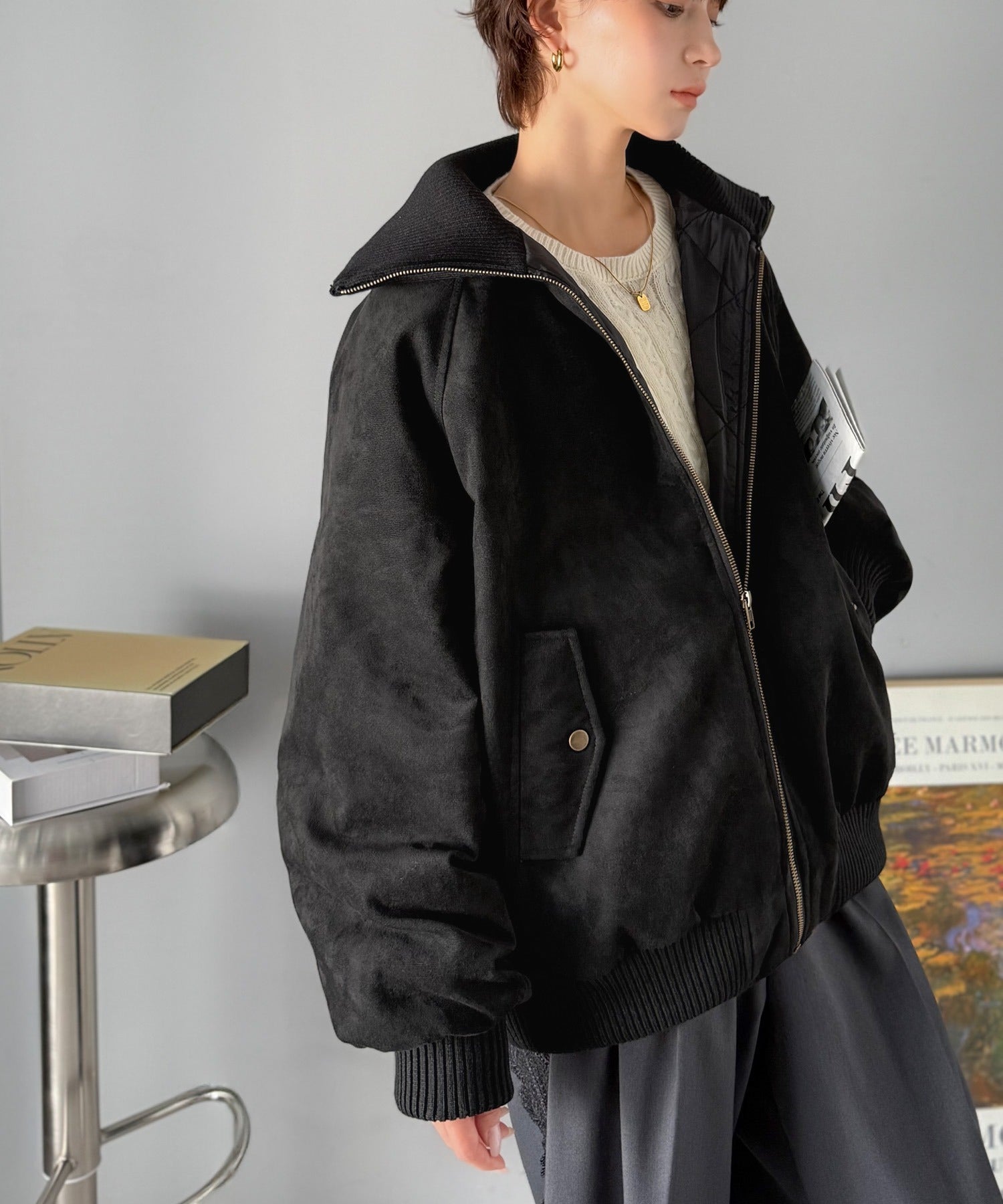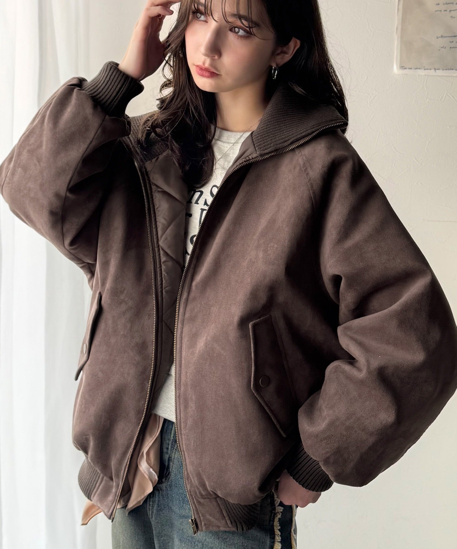 《JaVaジャバコラボ》甘辛バランスで“大人可愛い”を格上げ。リブタートル オーバーサイズスウェードブルゾン jv1240099