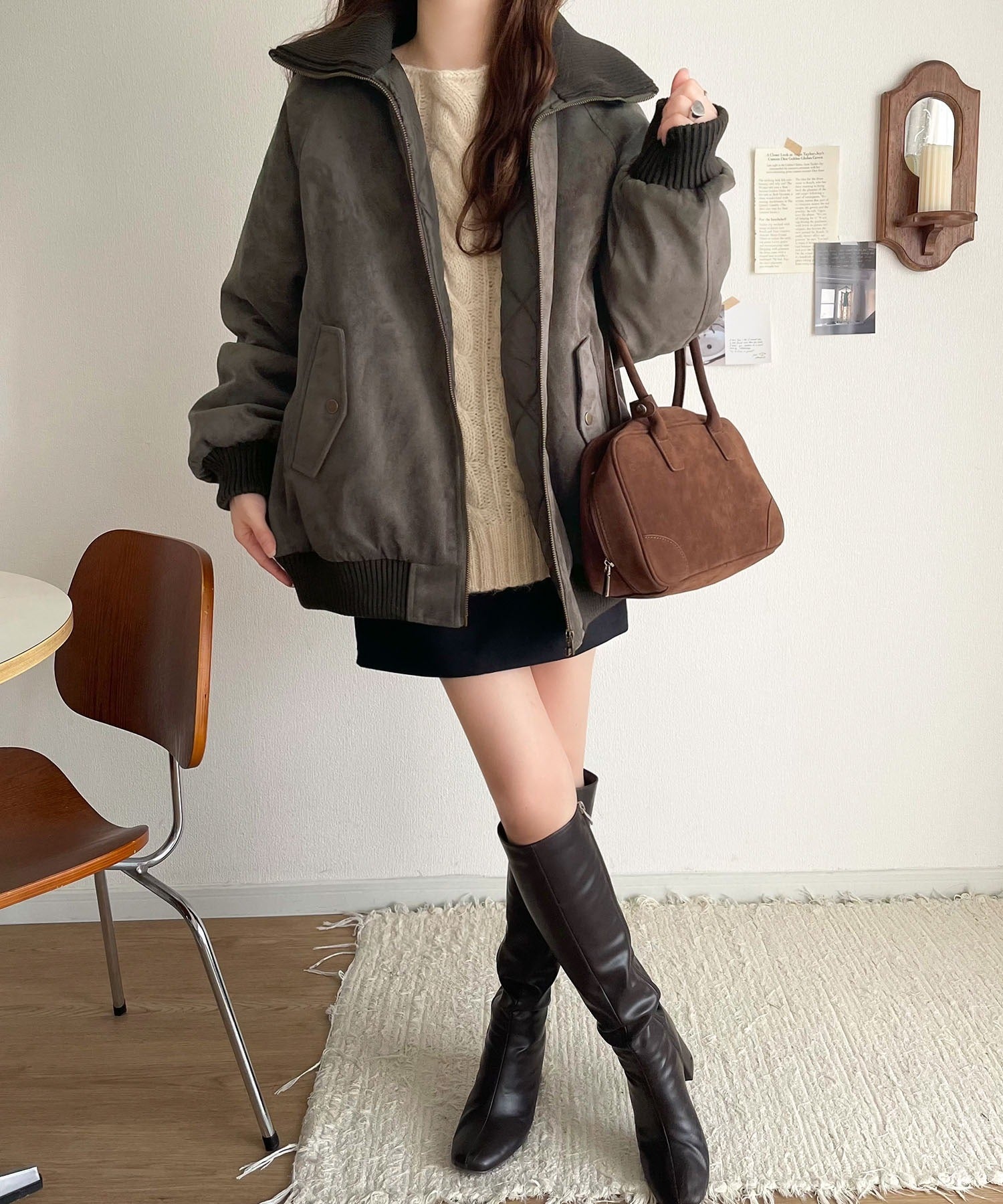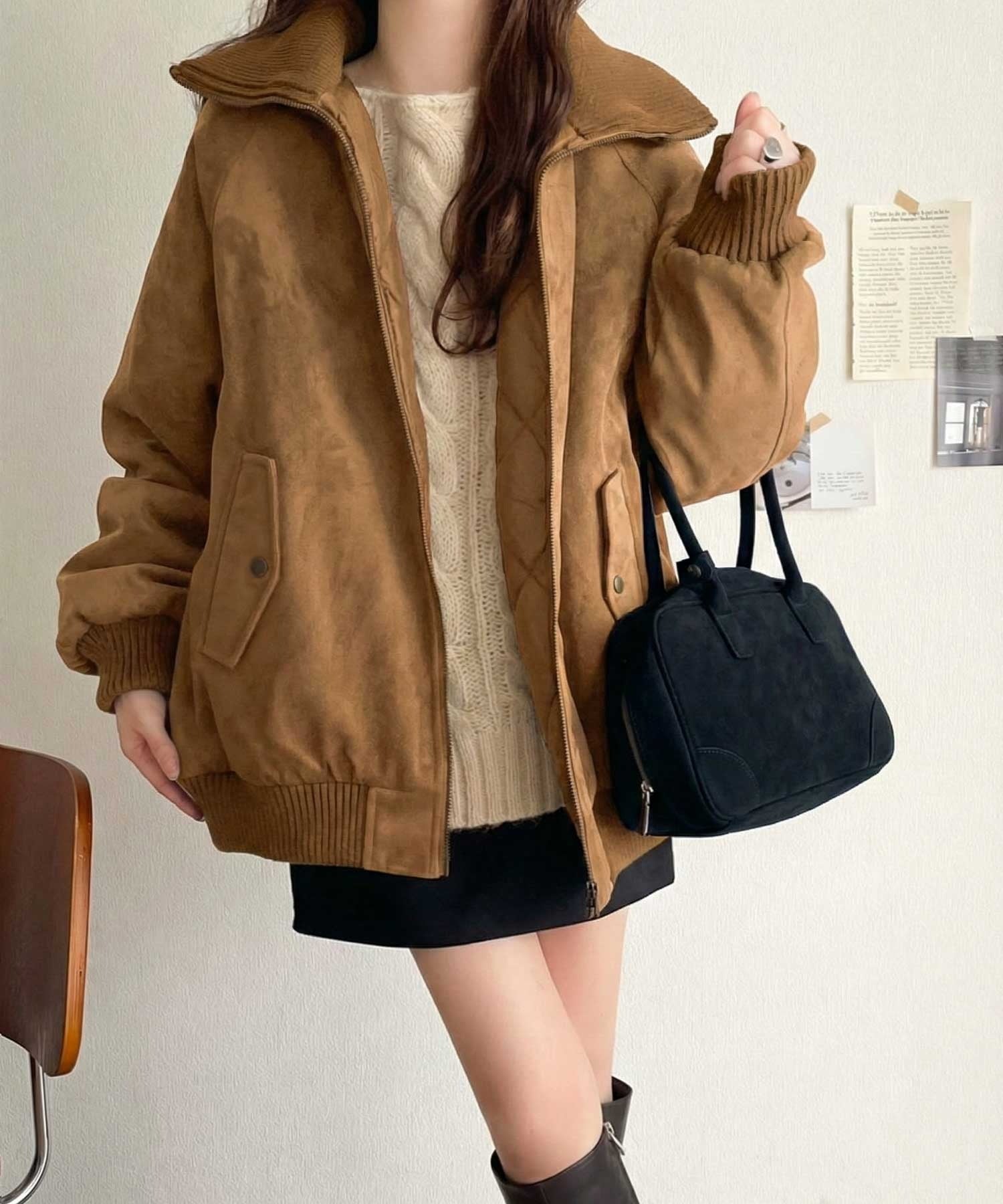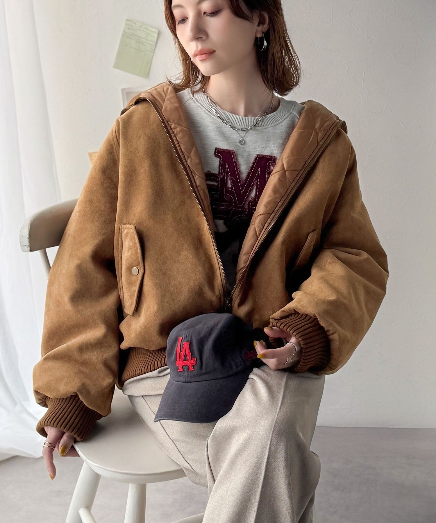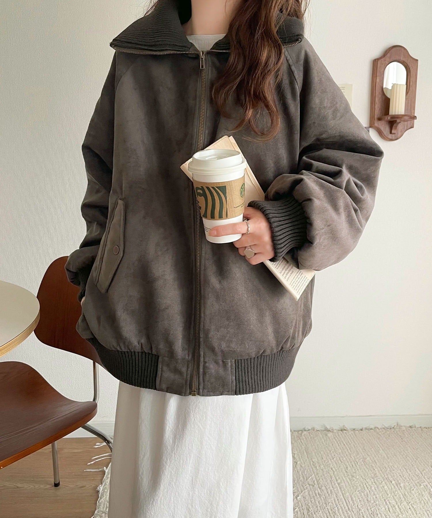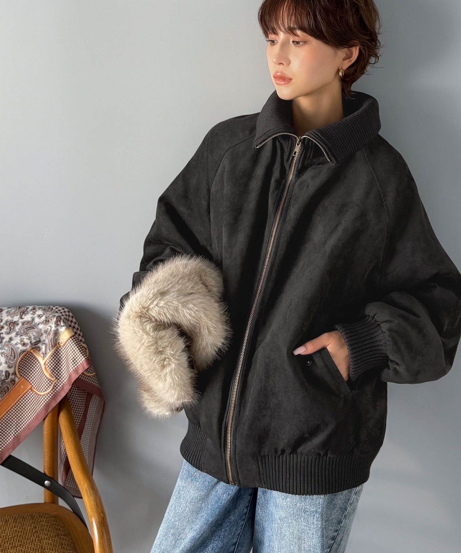 《JaVaジャバコラボ》甘辛バランスで“大人可愛い”を格上げ。リブタートル オーバーサイズスウェードブルゾン jv1240099