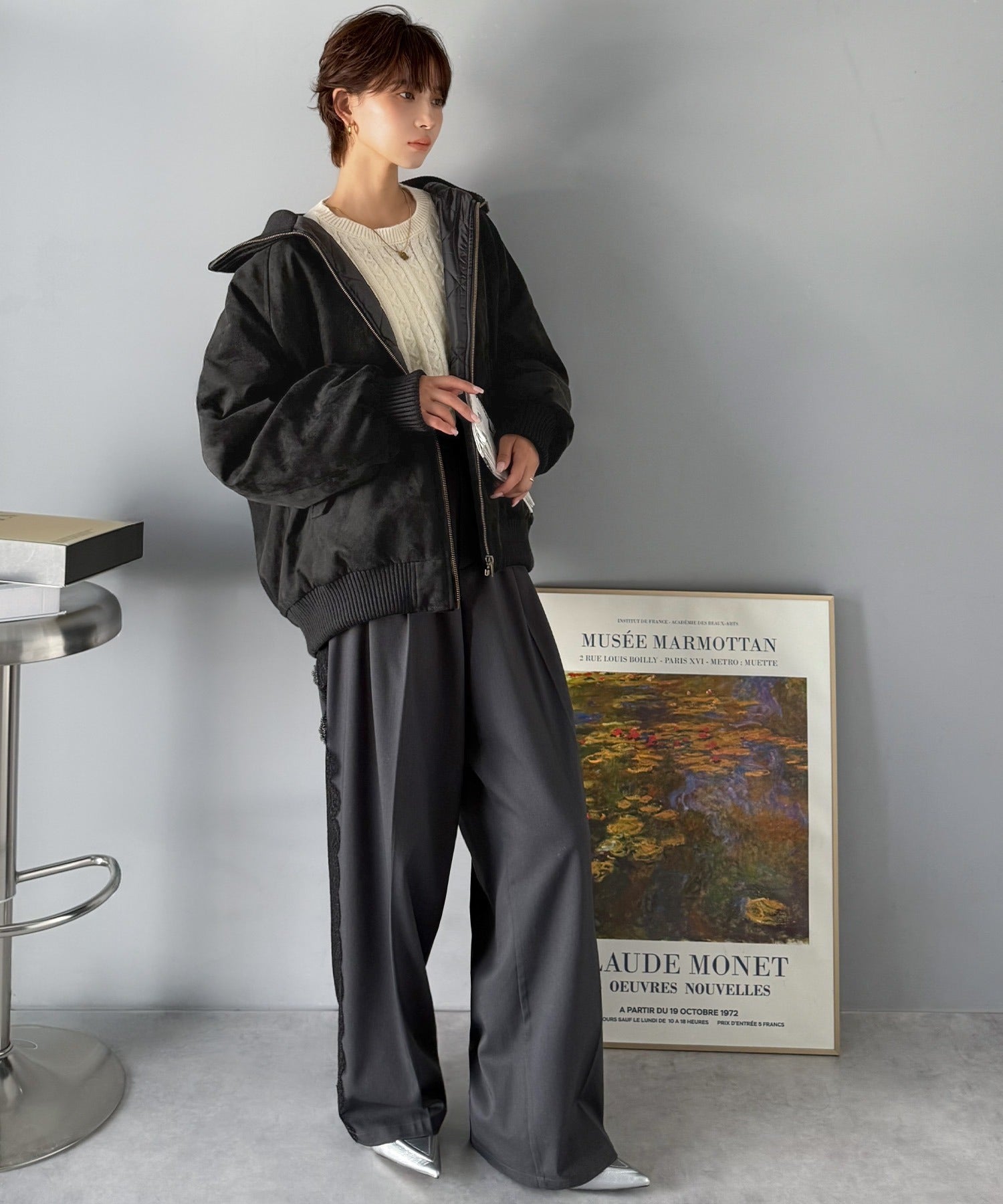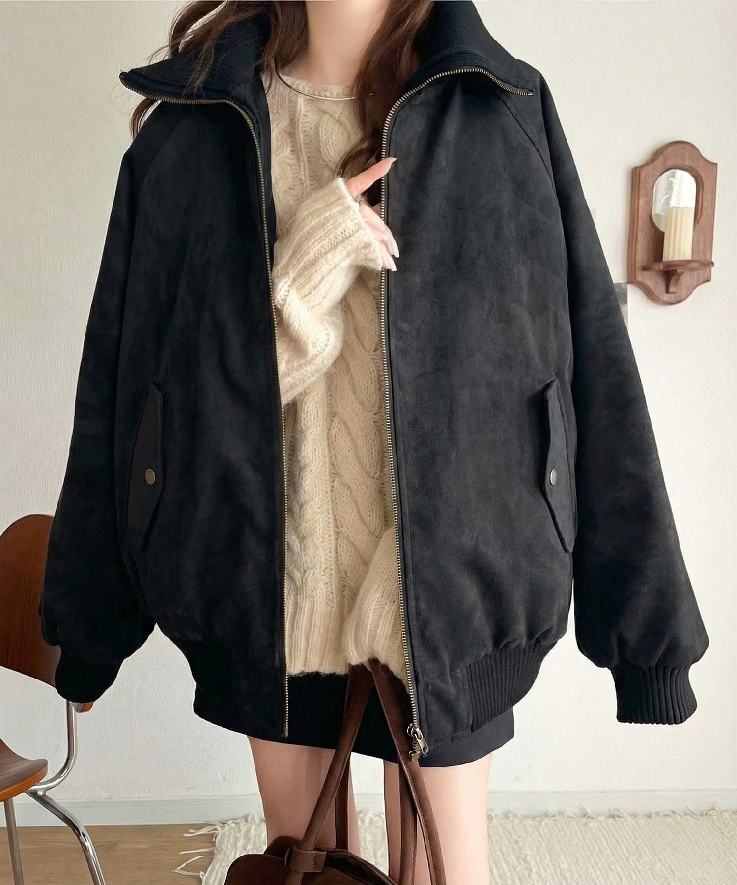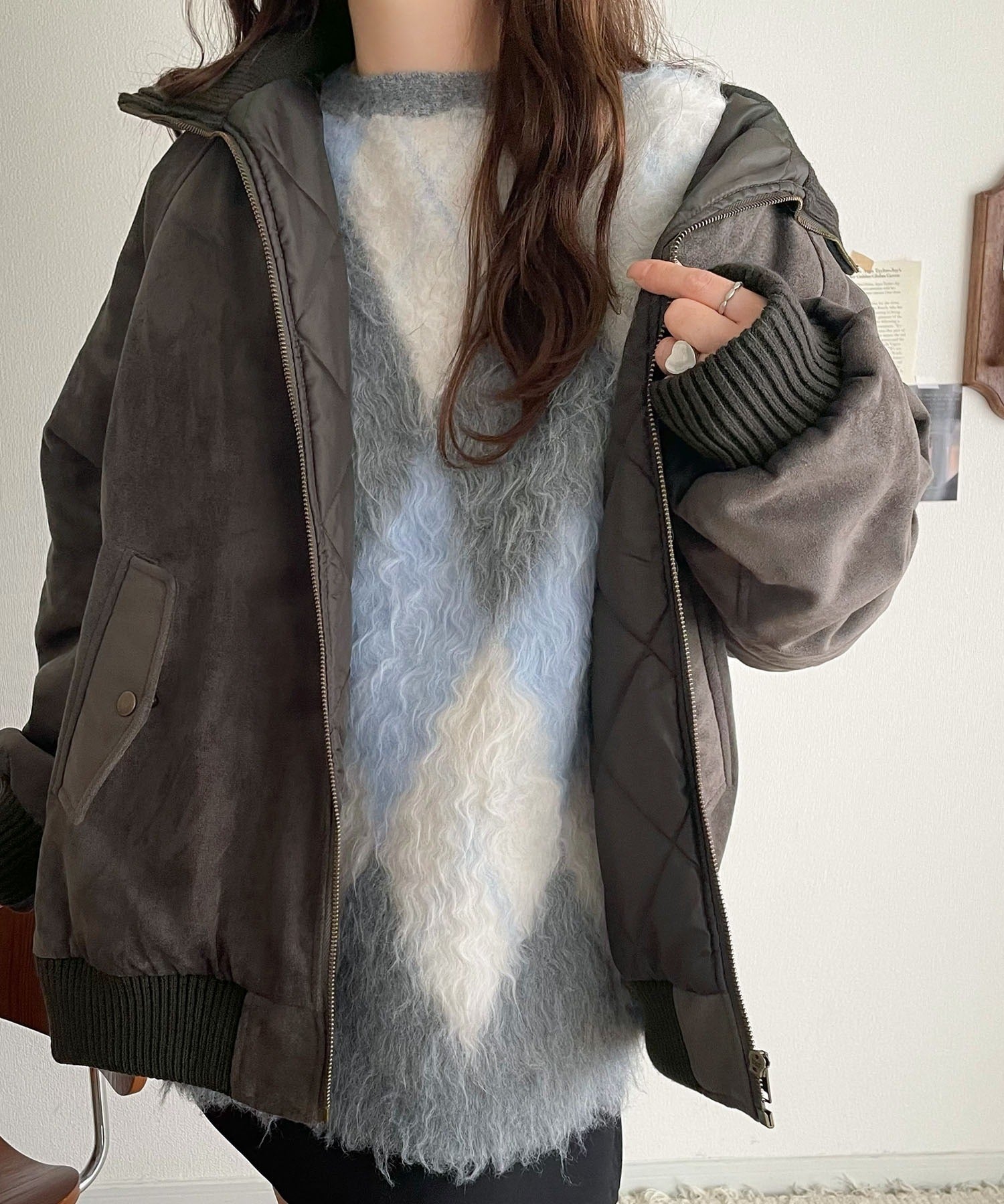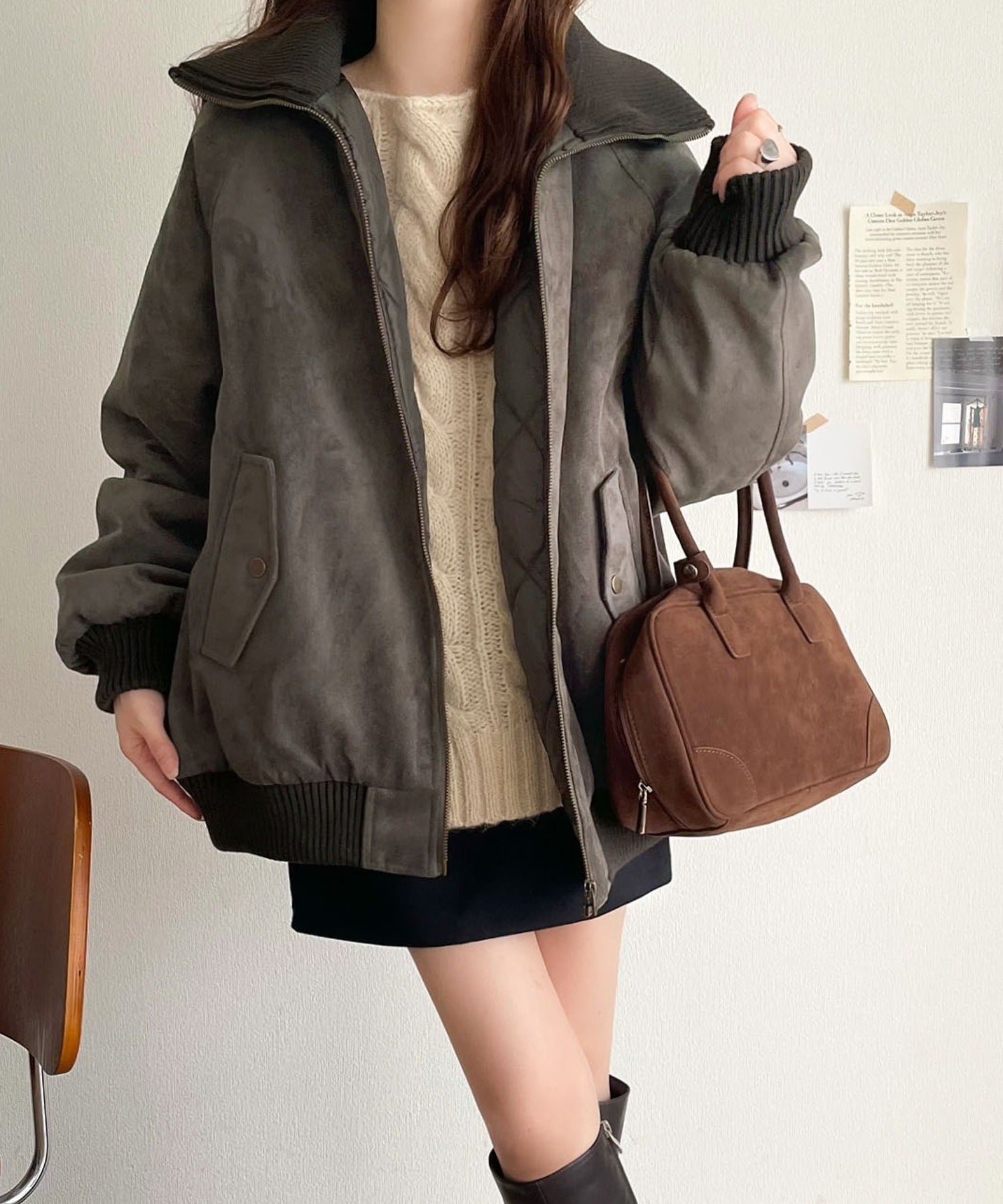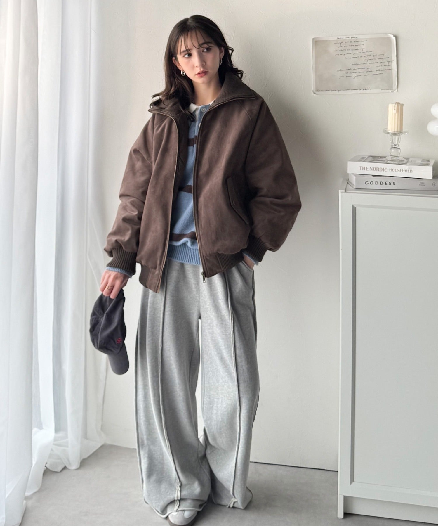 《JaVaジャバコラボ》甘辛バランスで“大人可愛い”を格上げ。リブタートル オーバーサイズスウェードブルゾン jv1240099
