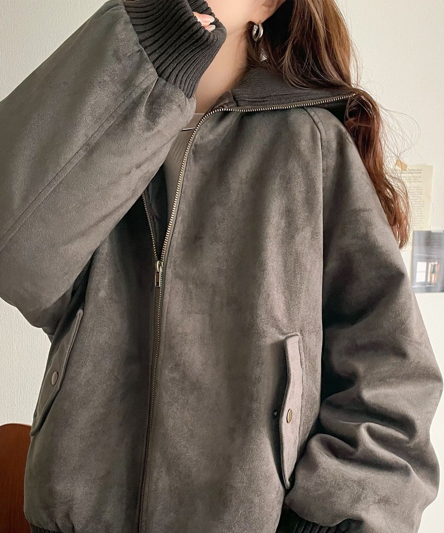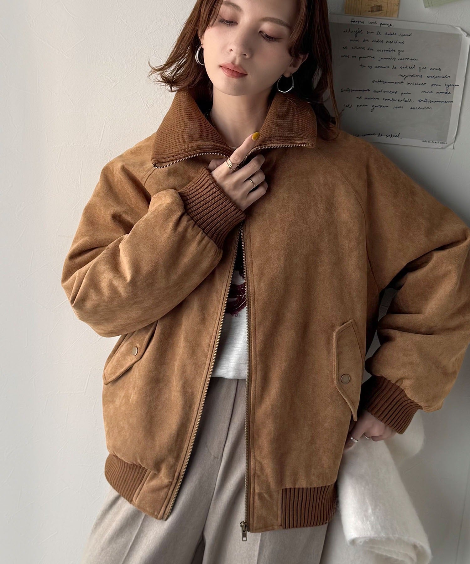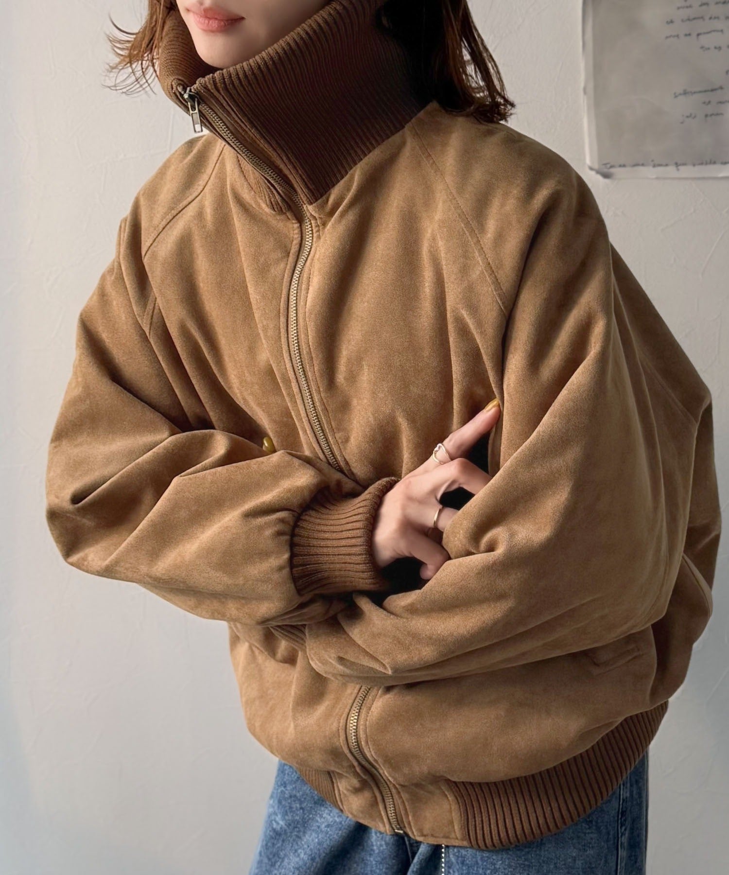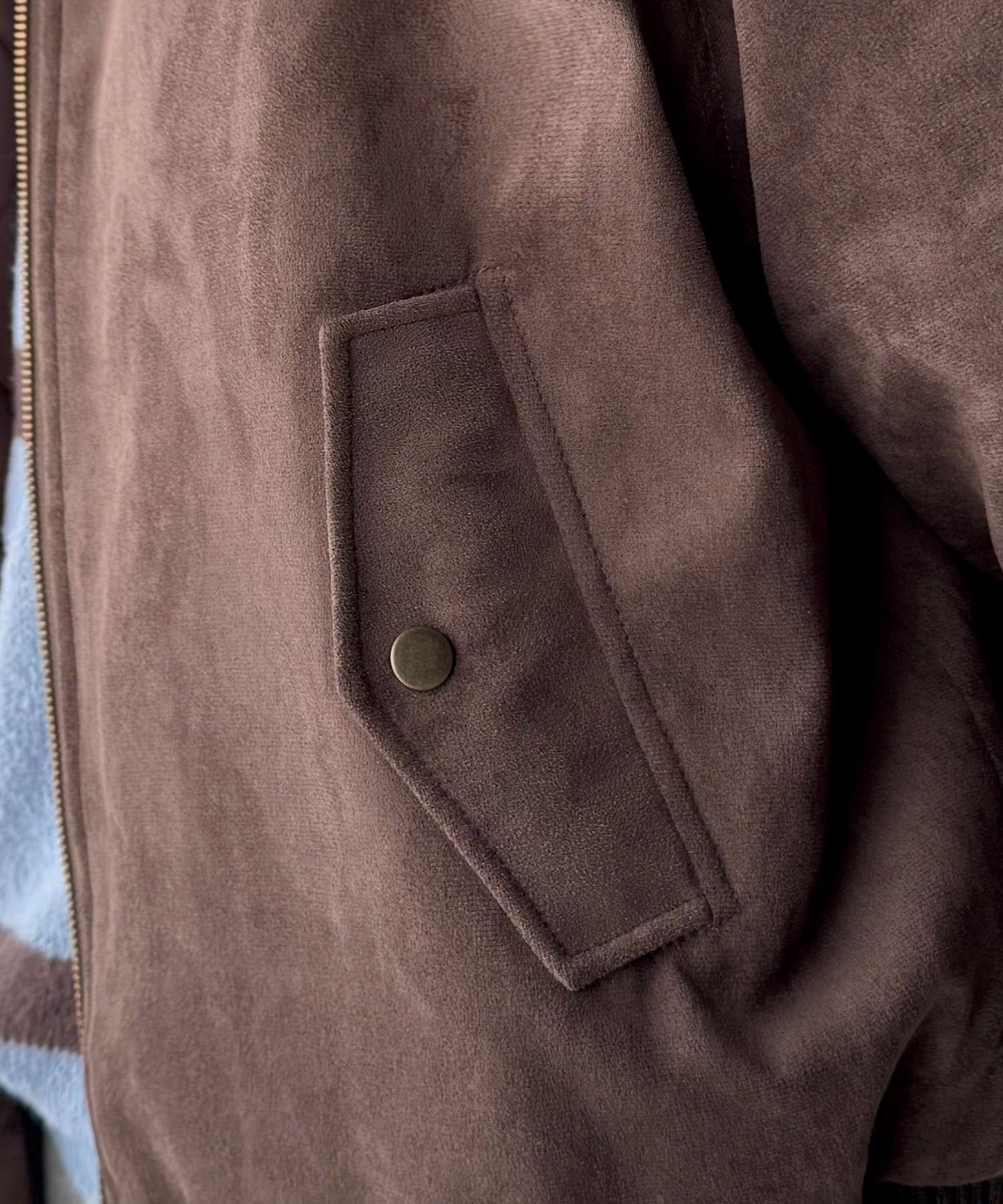ベーシックなデザインながらも存在感のあるフェイクスエード素材のブルゾンは