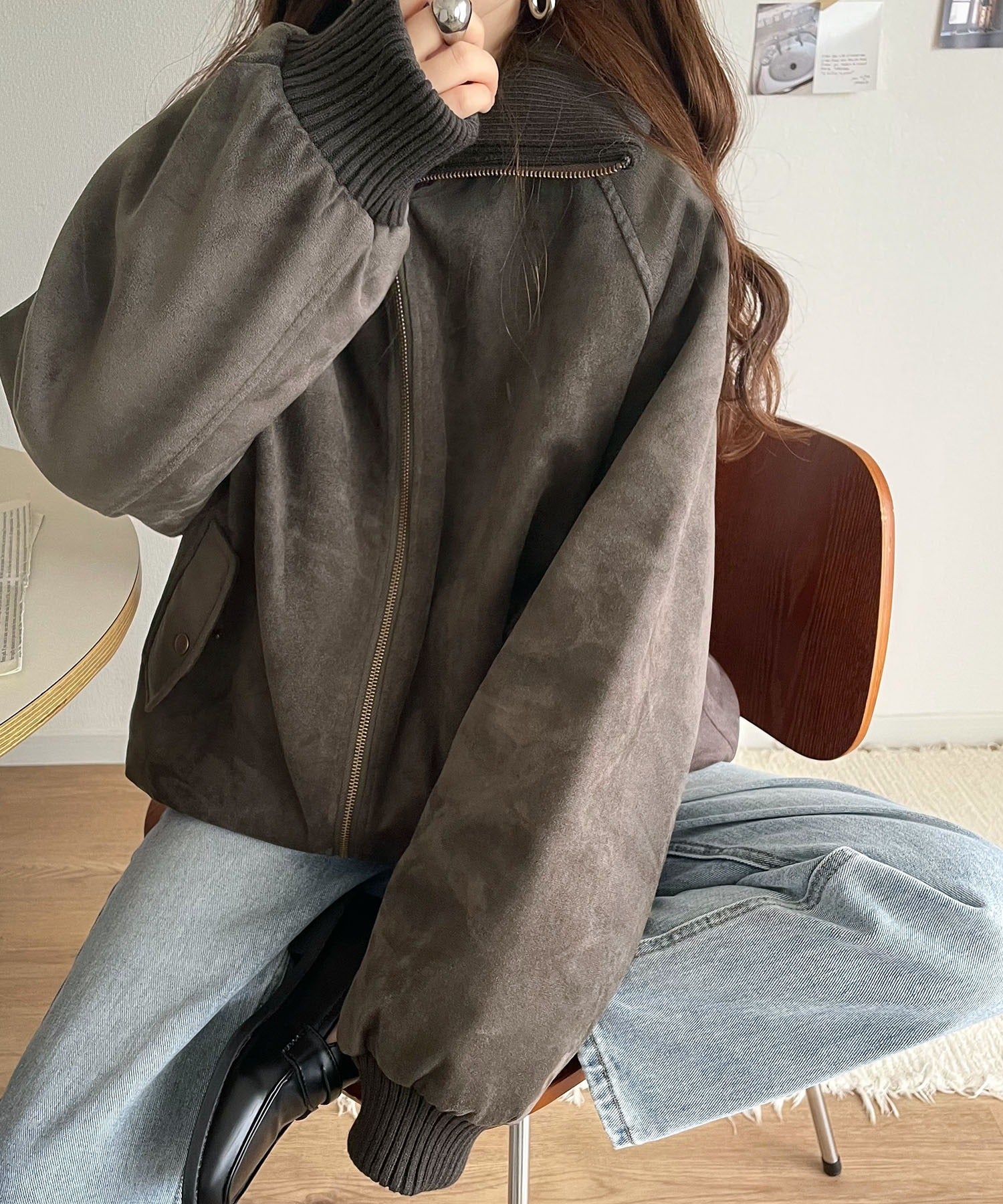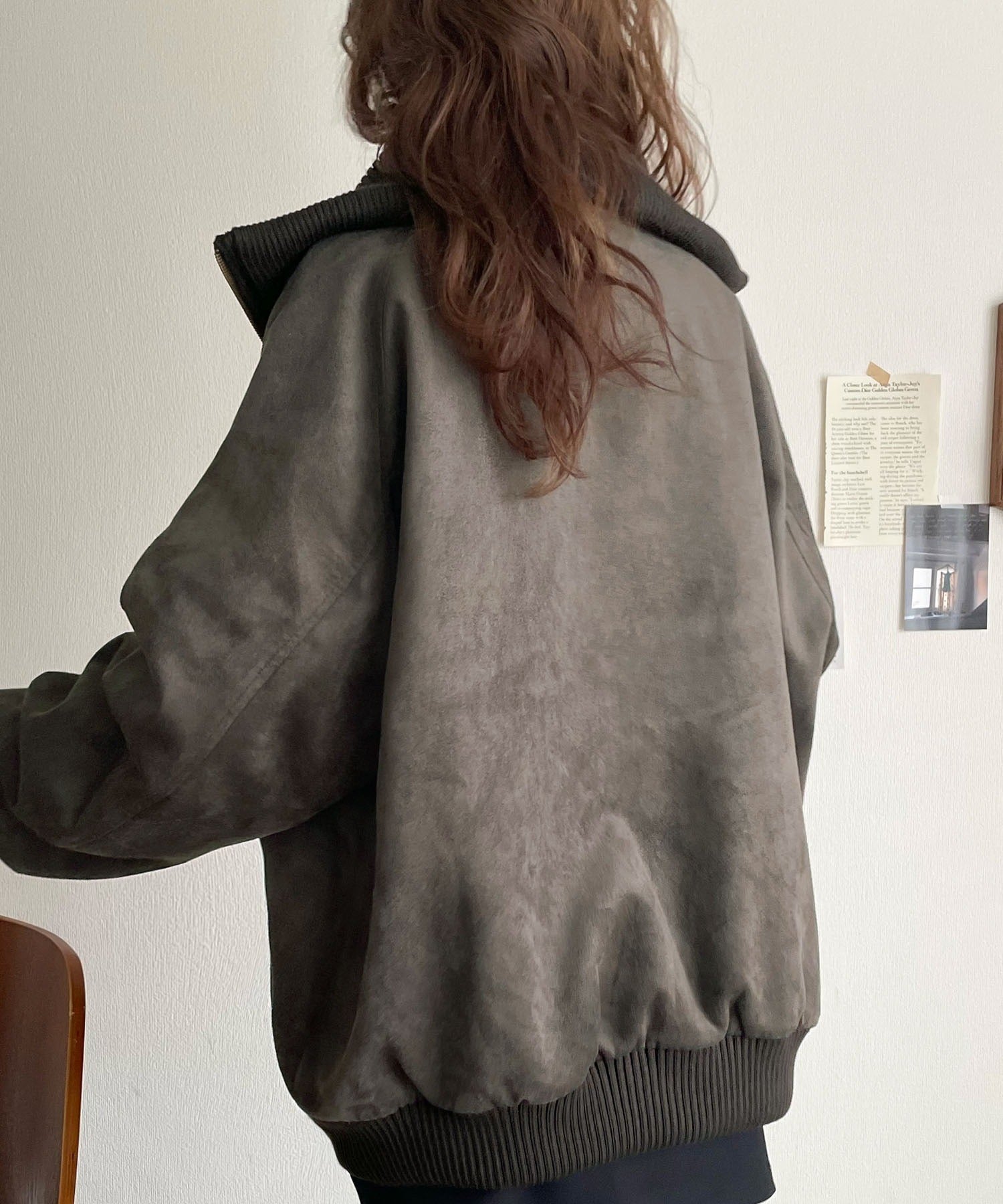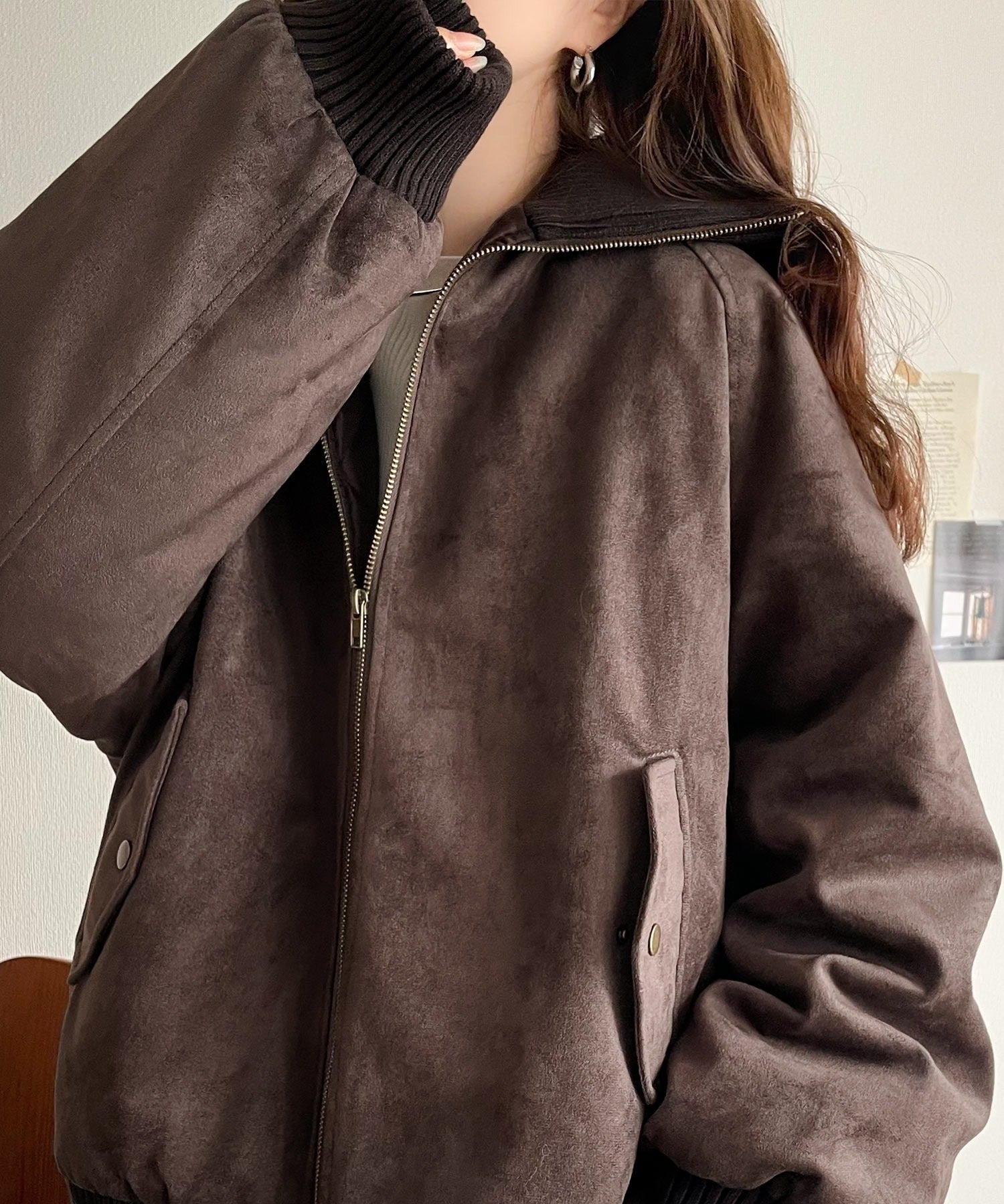 ベーシックなデザインながらも存在感のあるフェイクスエード素材のブルゾンは