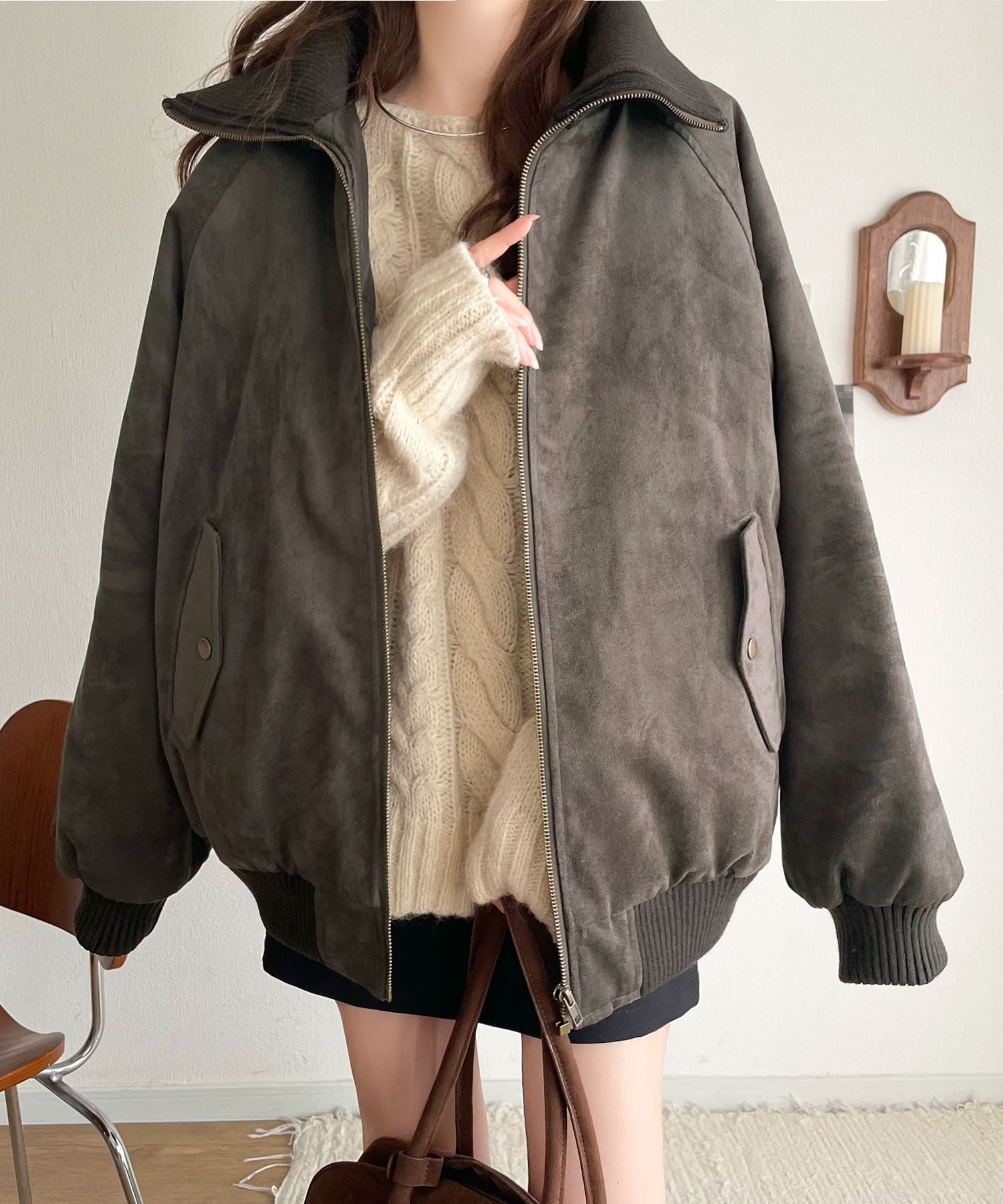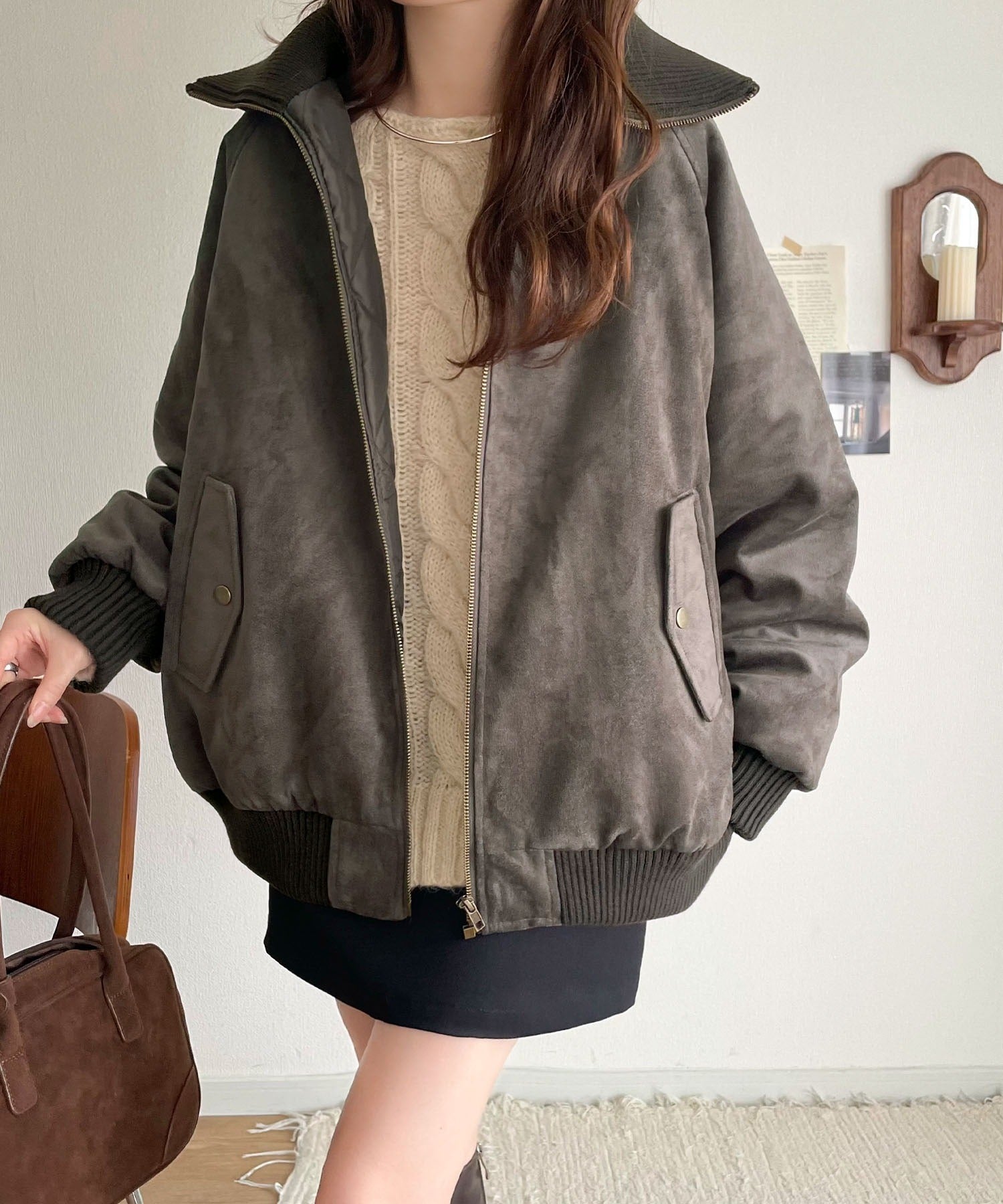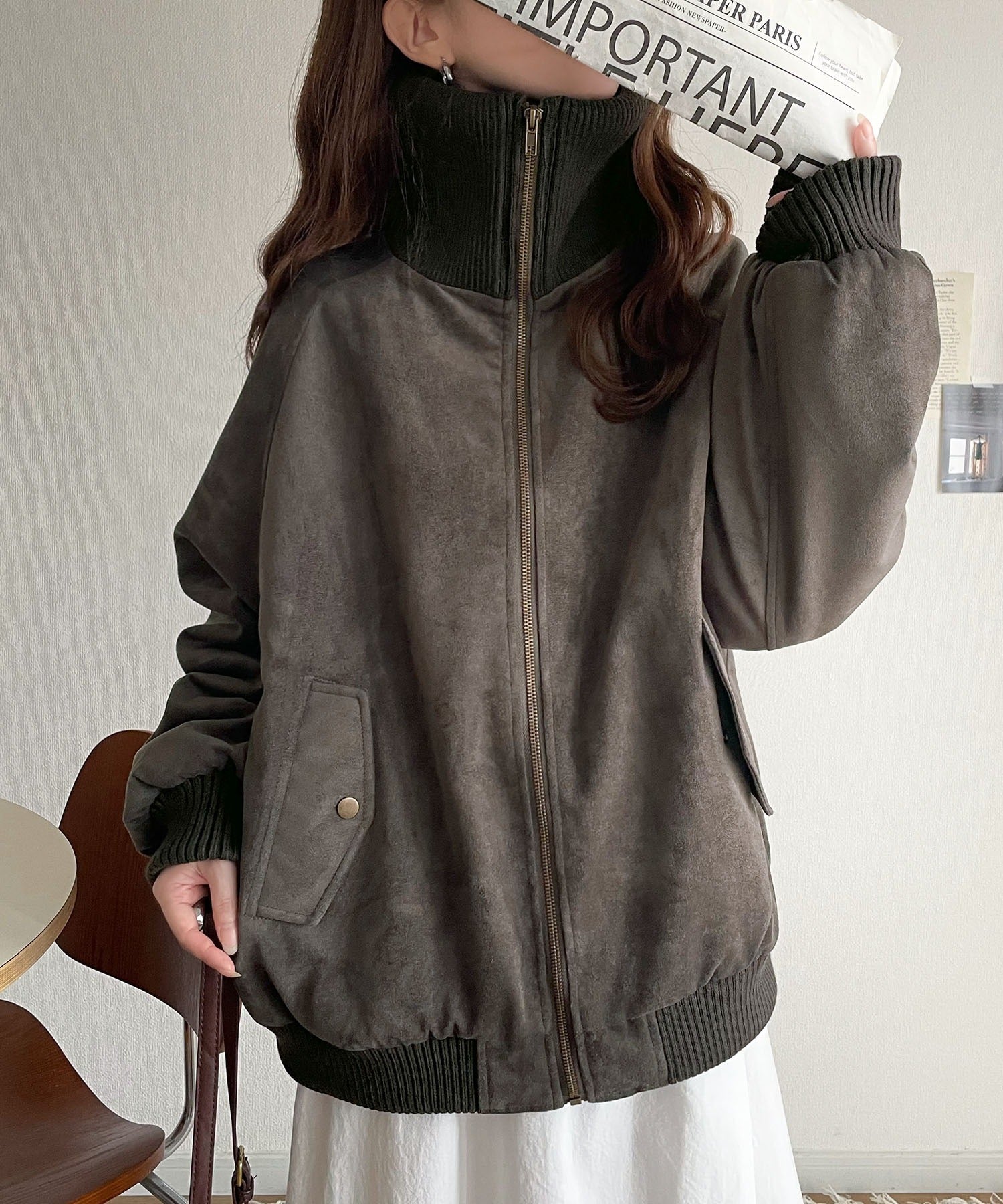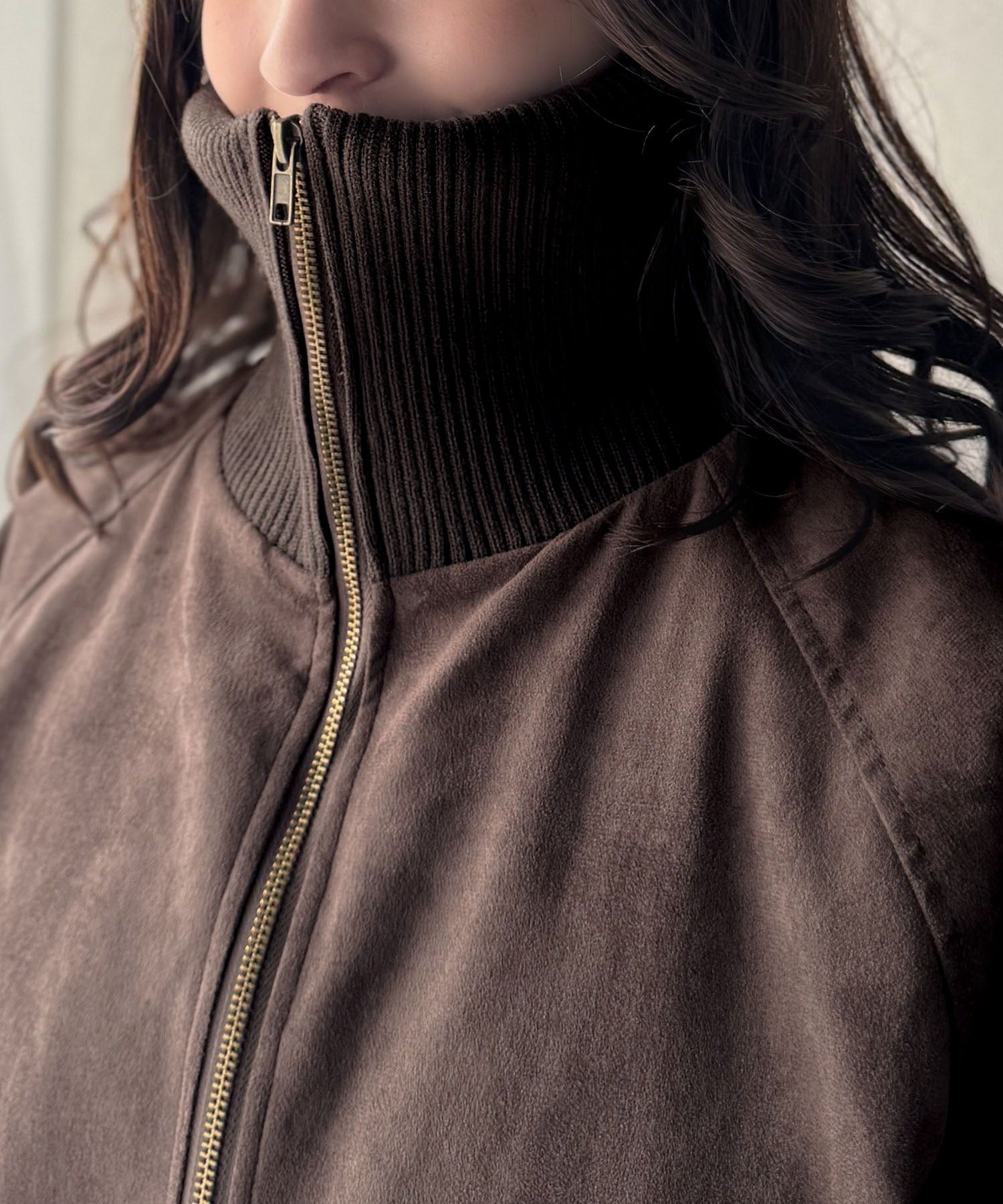 ベーシックなデザインながらも存在感のあるフェイクスエード素材のブルゾンは