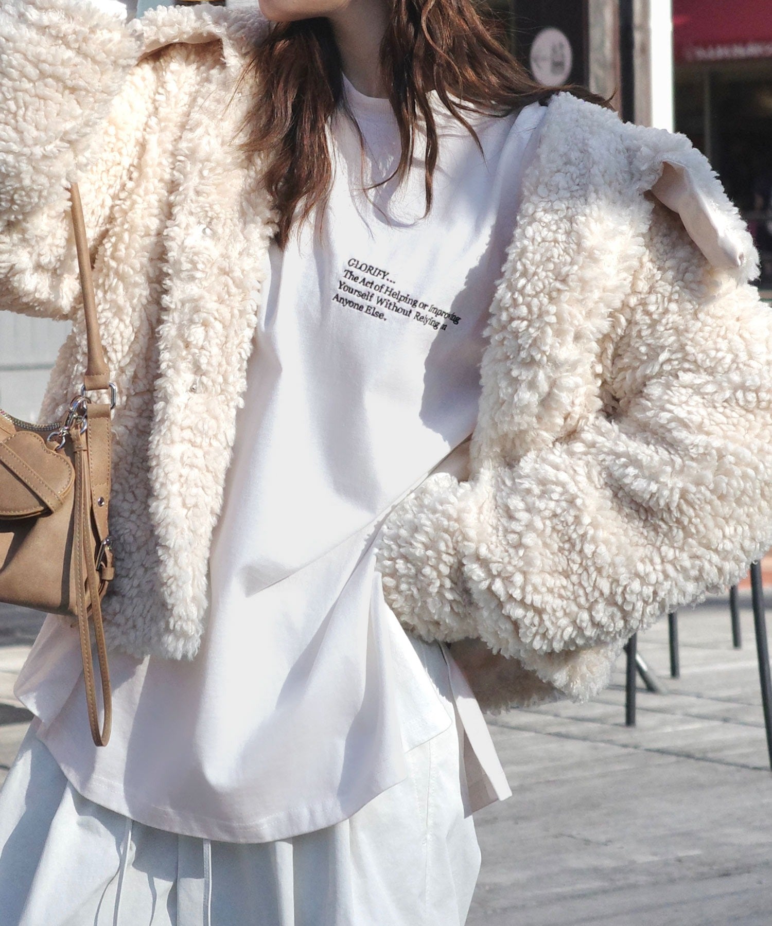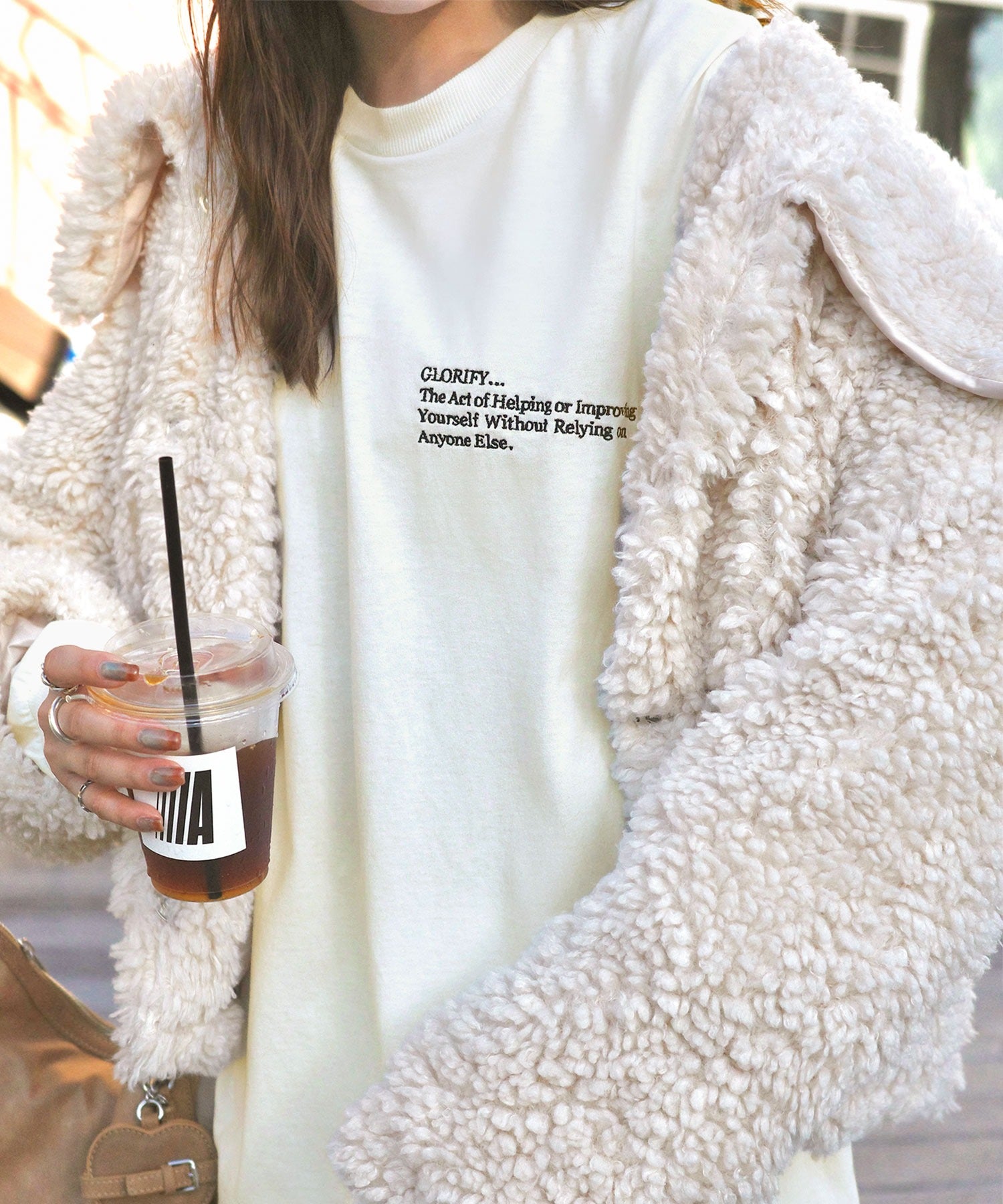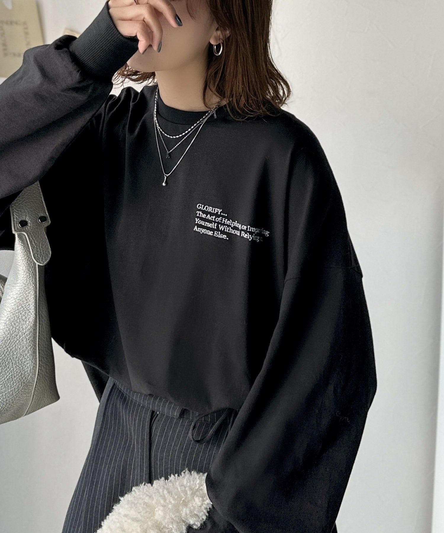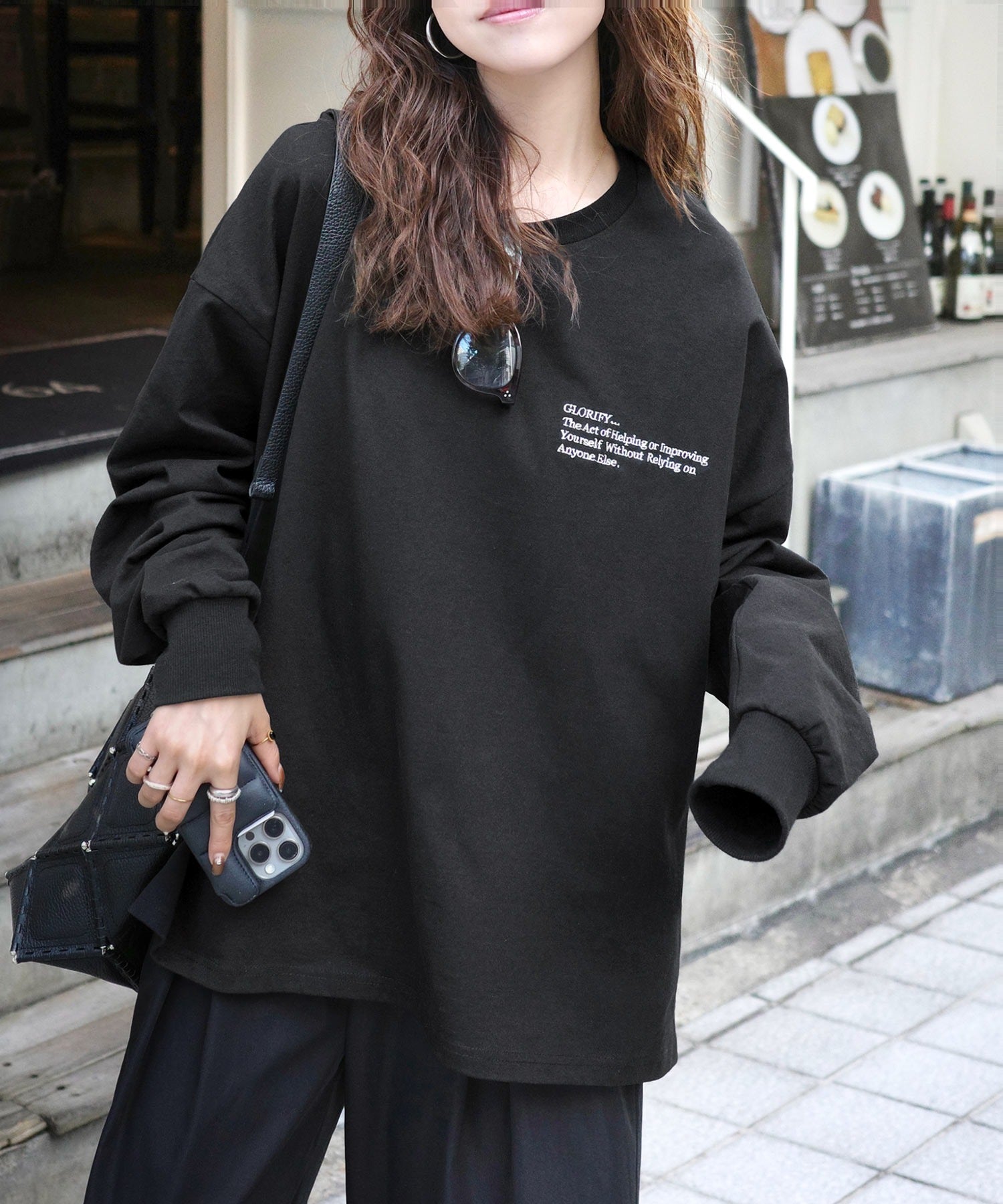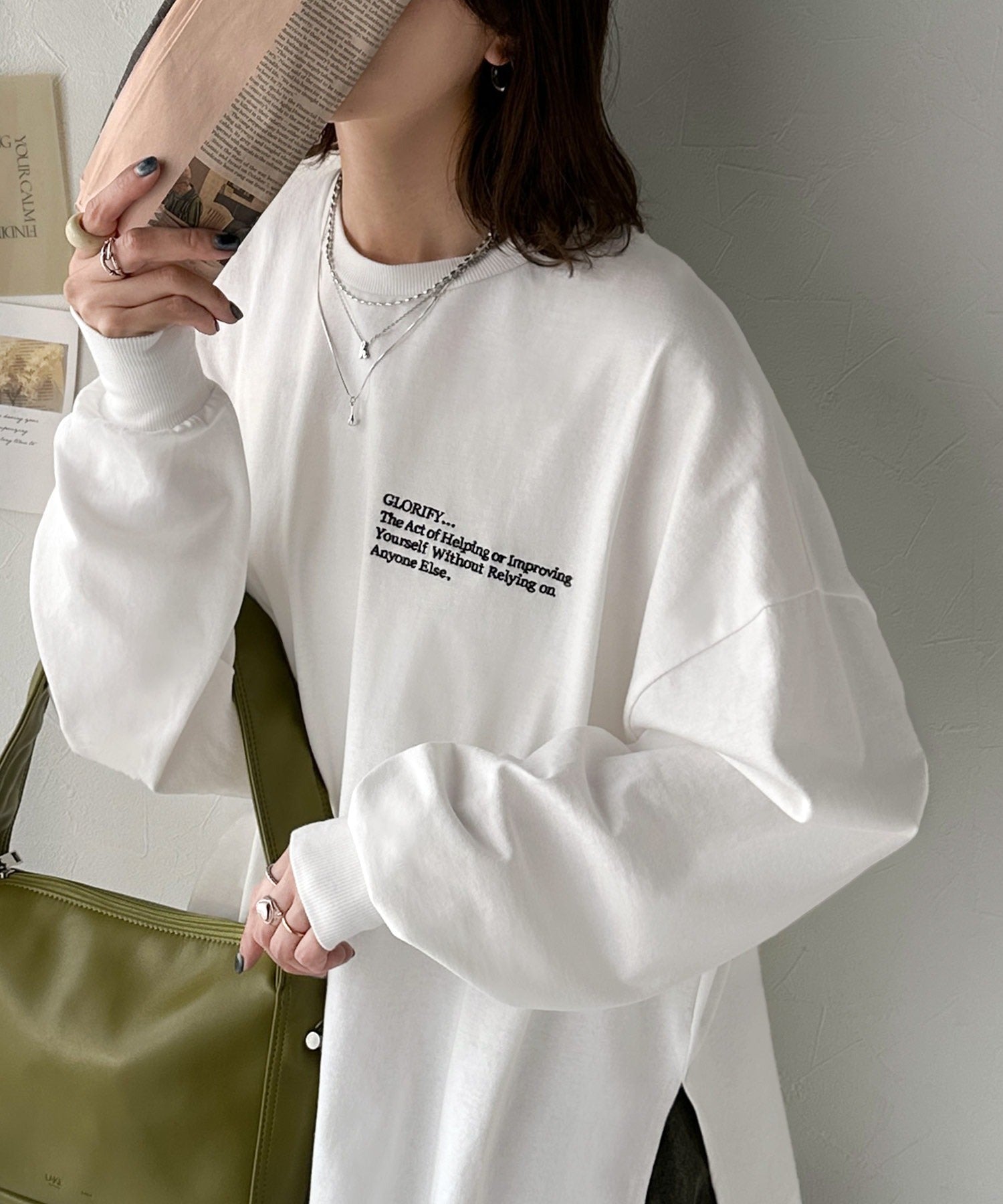 《marina×クラシカルエルフコラボ》ベーシックに今っぽバランスの“余裕”をプラス。綿100%胸刺繍入りロンT ce1010510