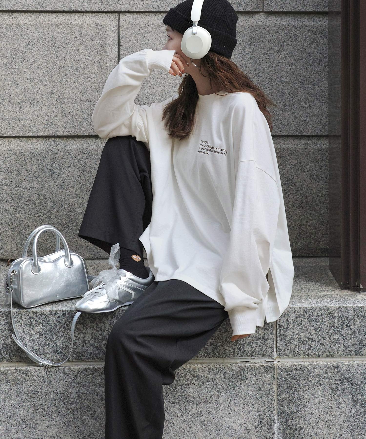ドロップショルダーでリラクシーに着られるビッグシルエットのロンT。