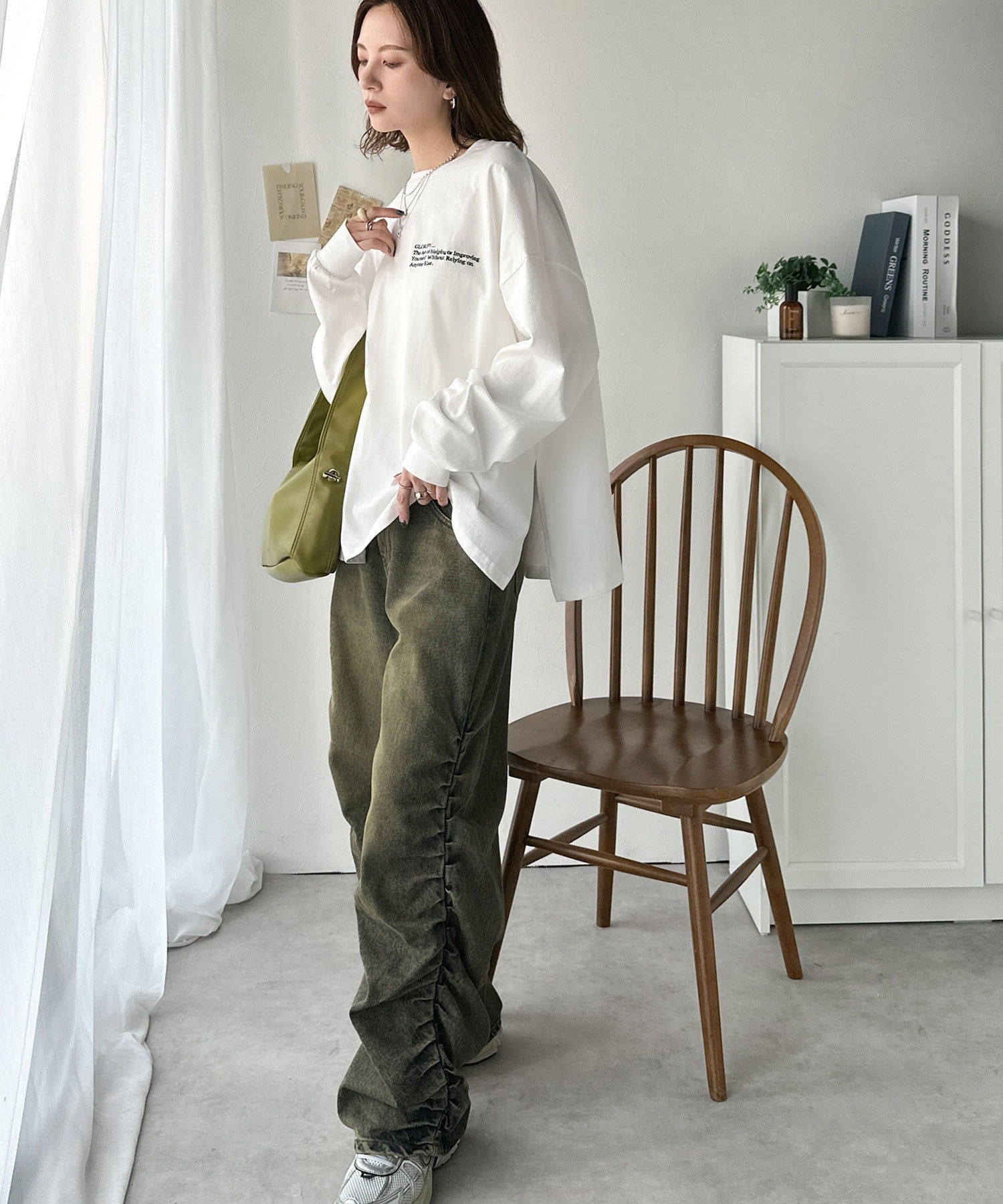 ゆったりした身幅と長めの丈感で、さっと着るだけでこなれ感のある大人カジュアルスタイルが完成します。
