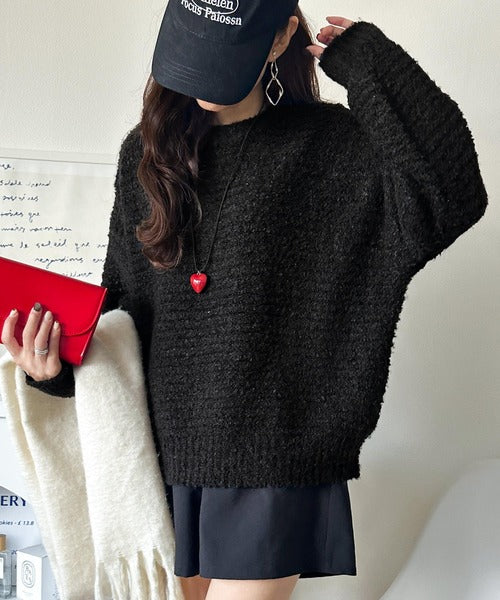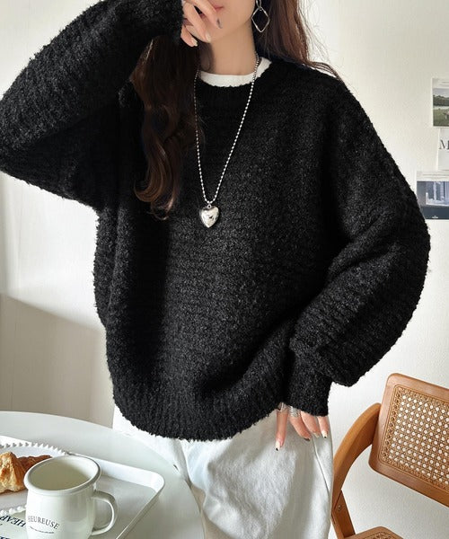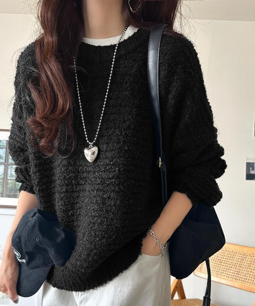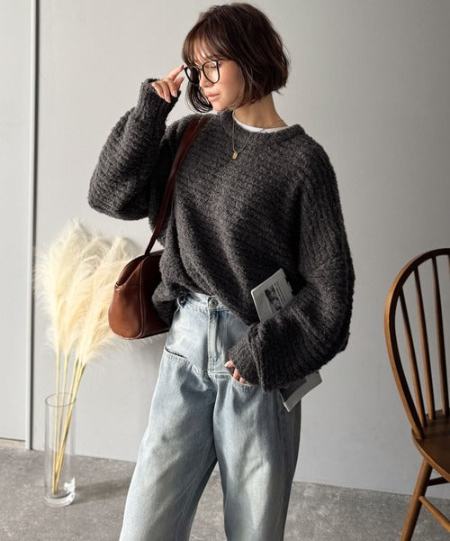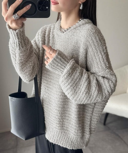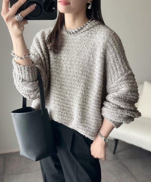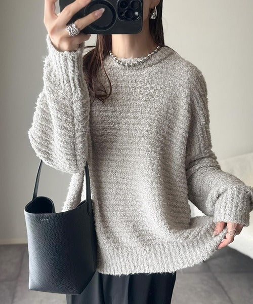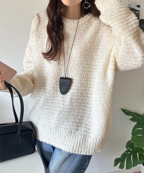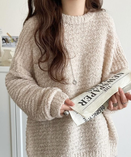ソフトな肌触りで、毛足がやや長く表面感のあるブークレーニット素材