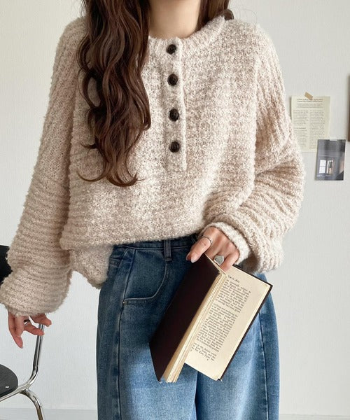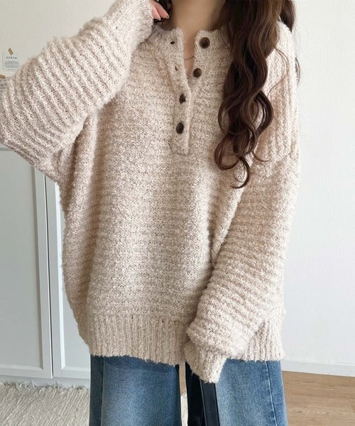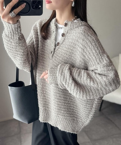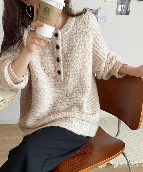 ふんわり愛されスタイル♪前後2wayヘンリーネックニット(長袖) ce1020302