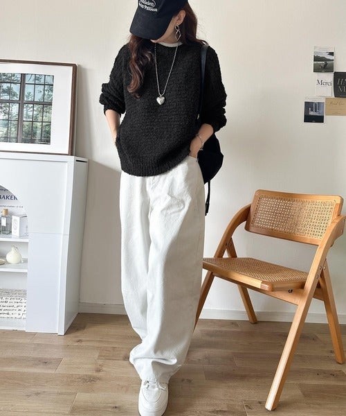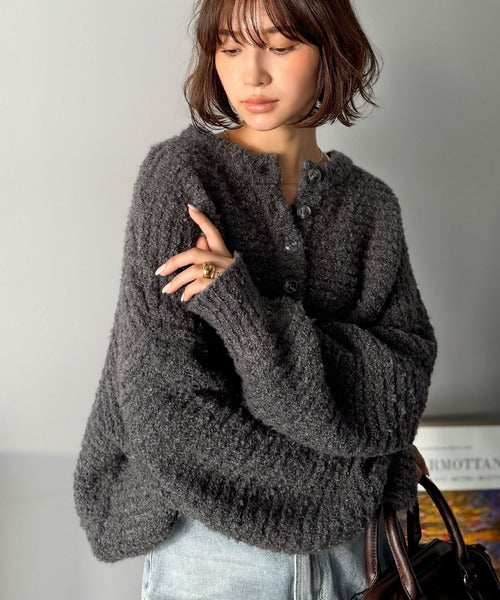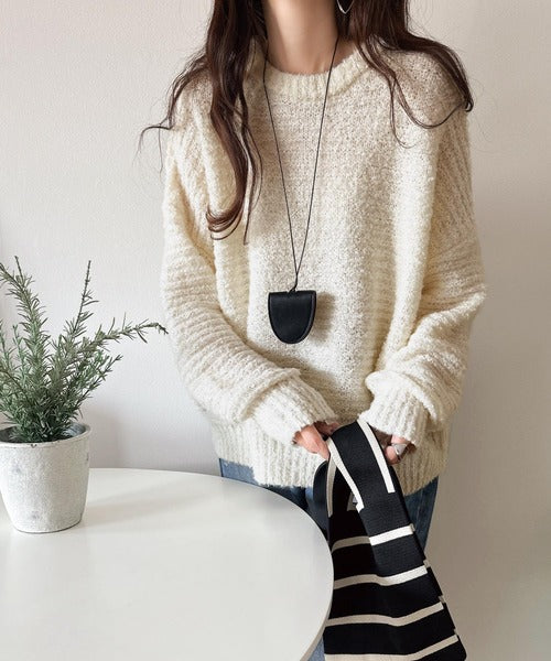 ふんわりとした膨らみが魅力のブークレー糸を使用し、