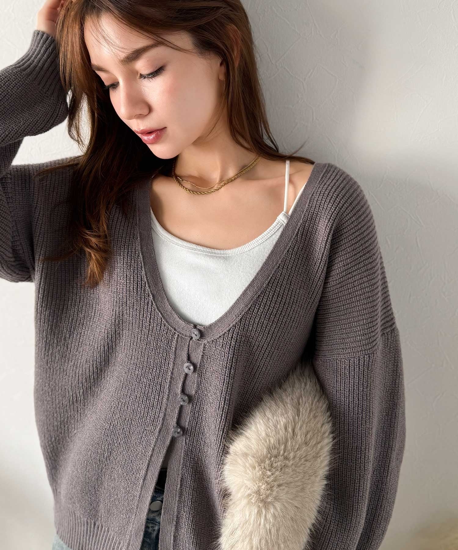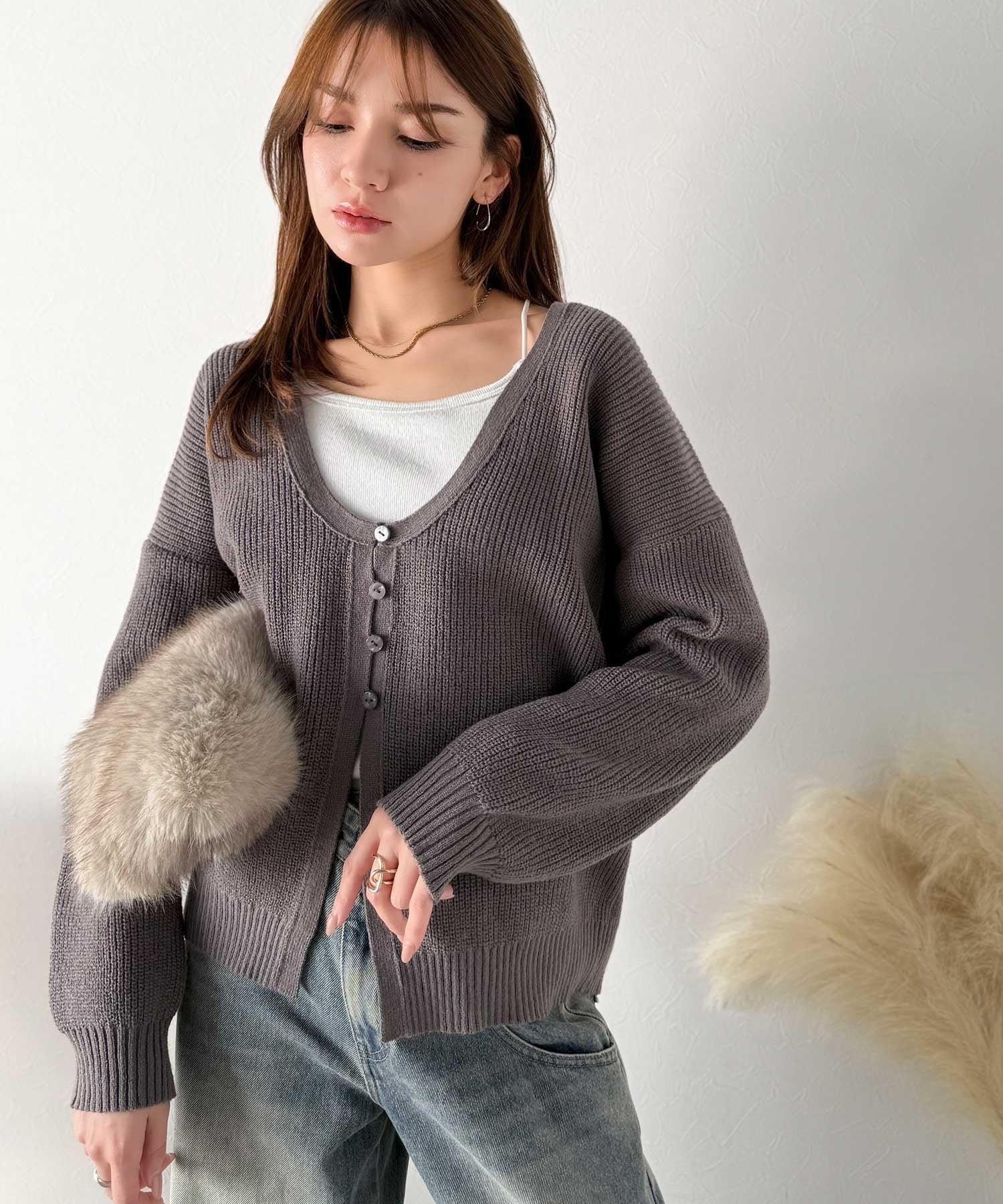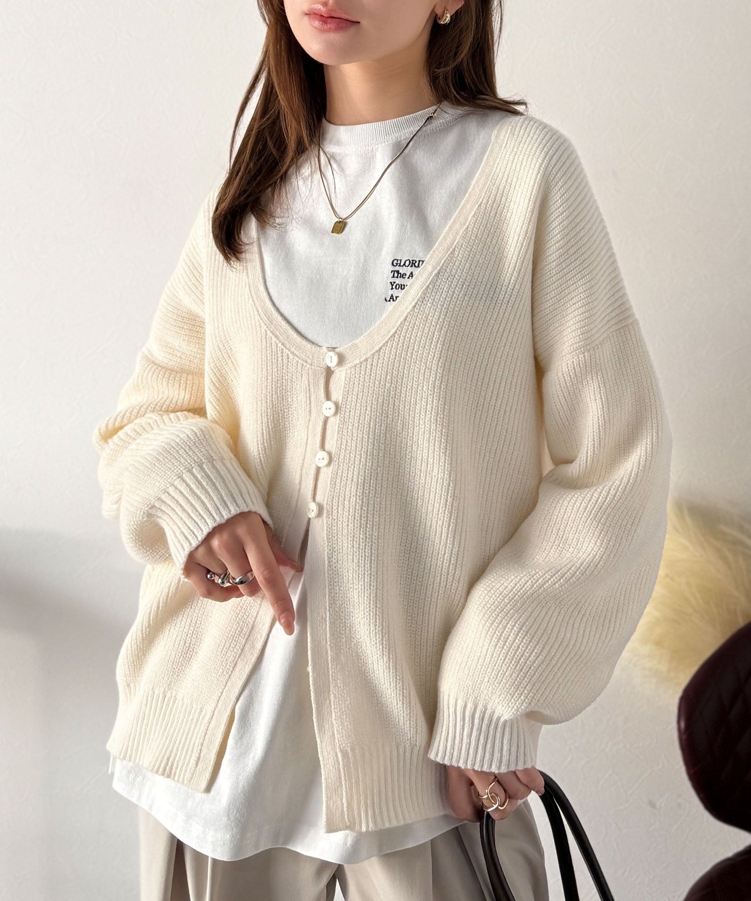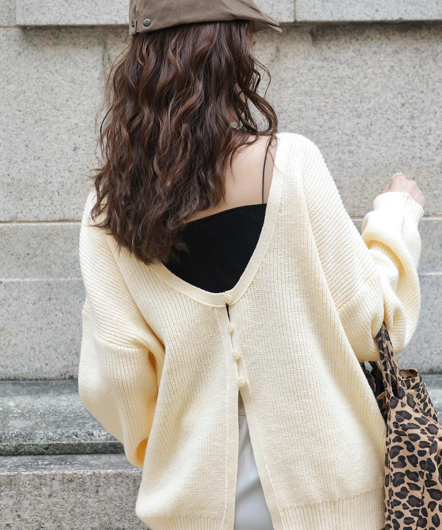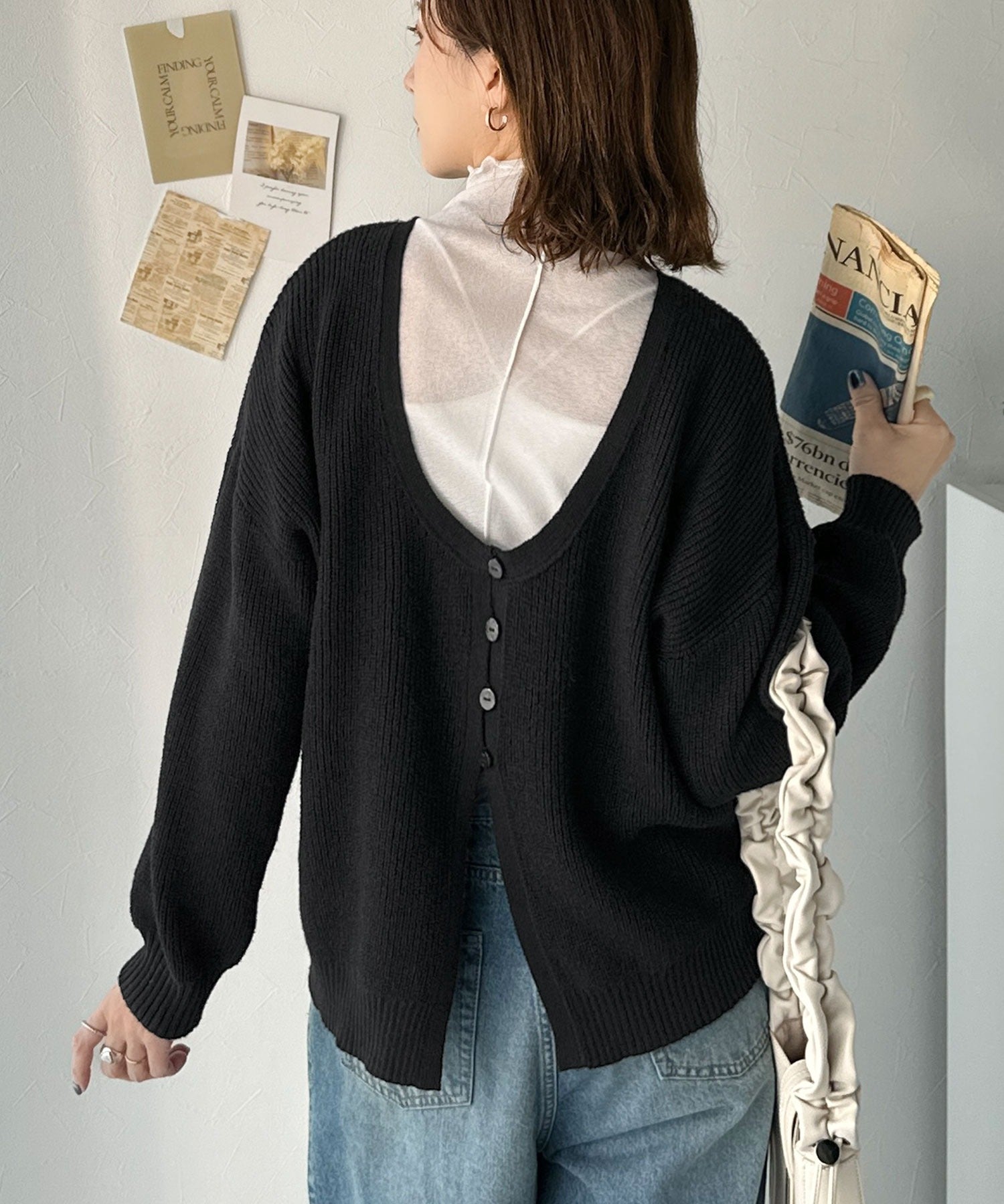 《marina×クラシカルエルフコラボ》ヘルシーな肌見せで上品さを演出♪2way仕様の万能深Uニットカーディガン ce1350009