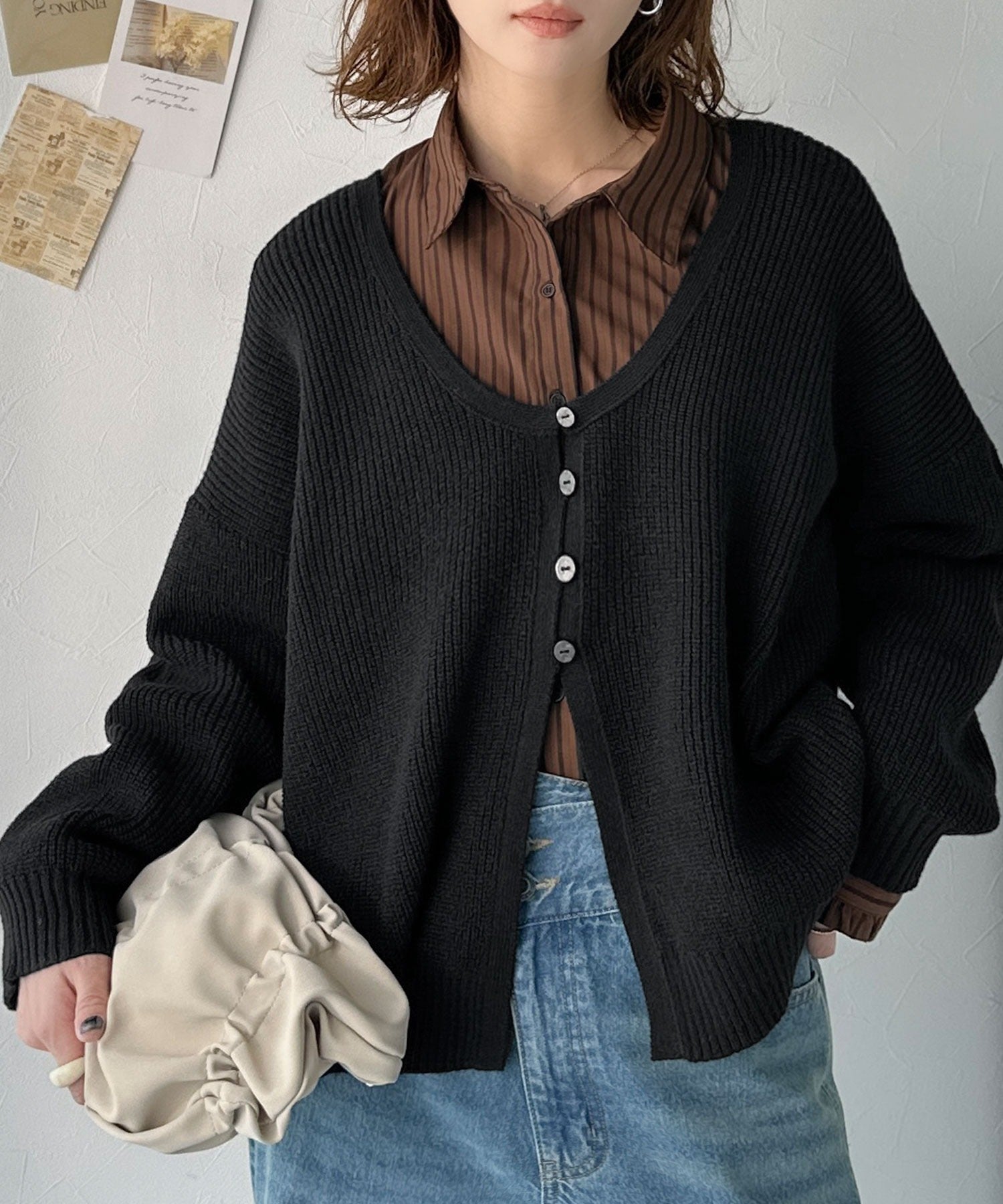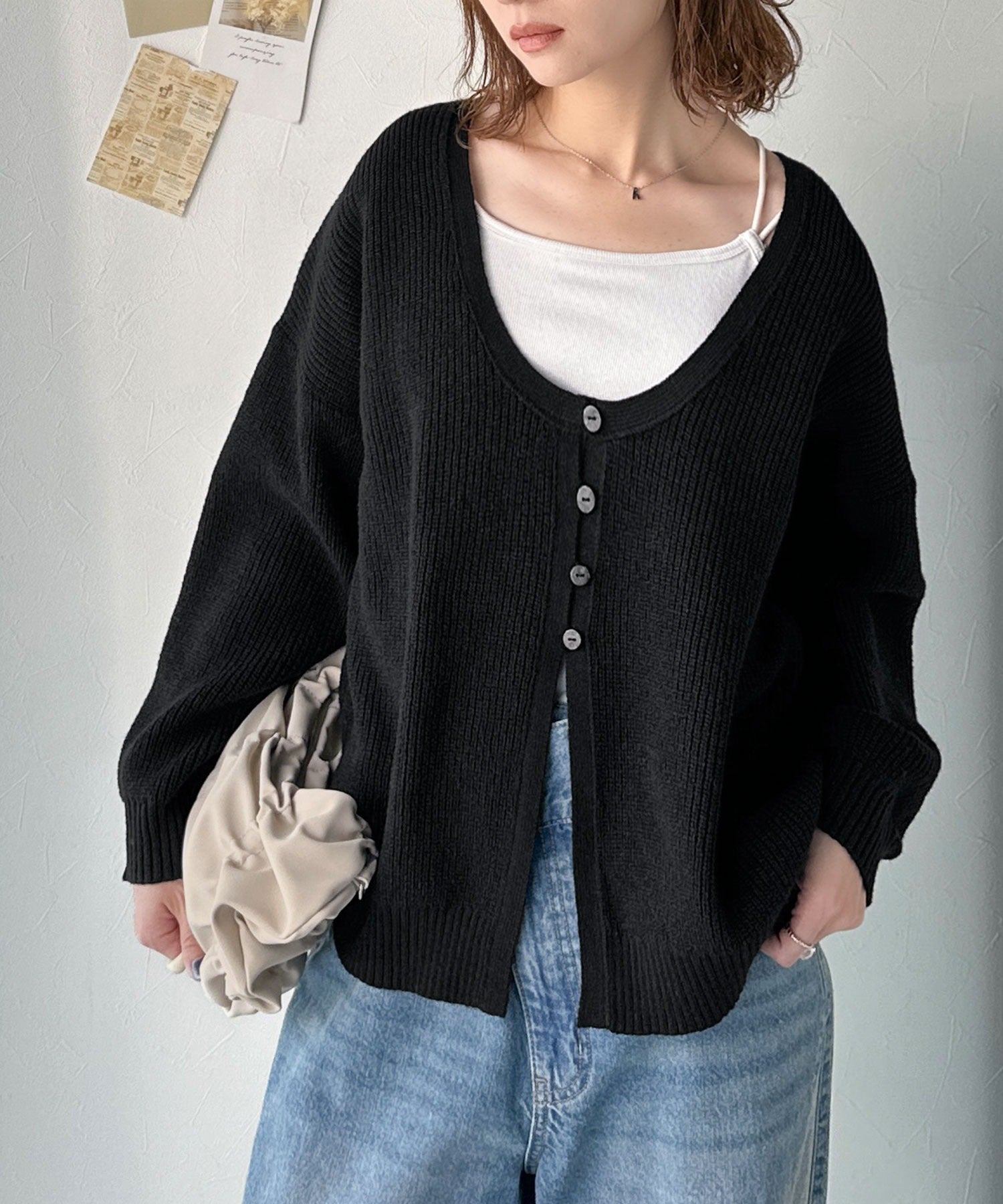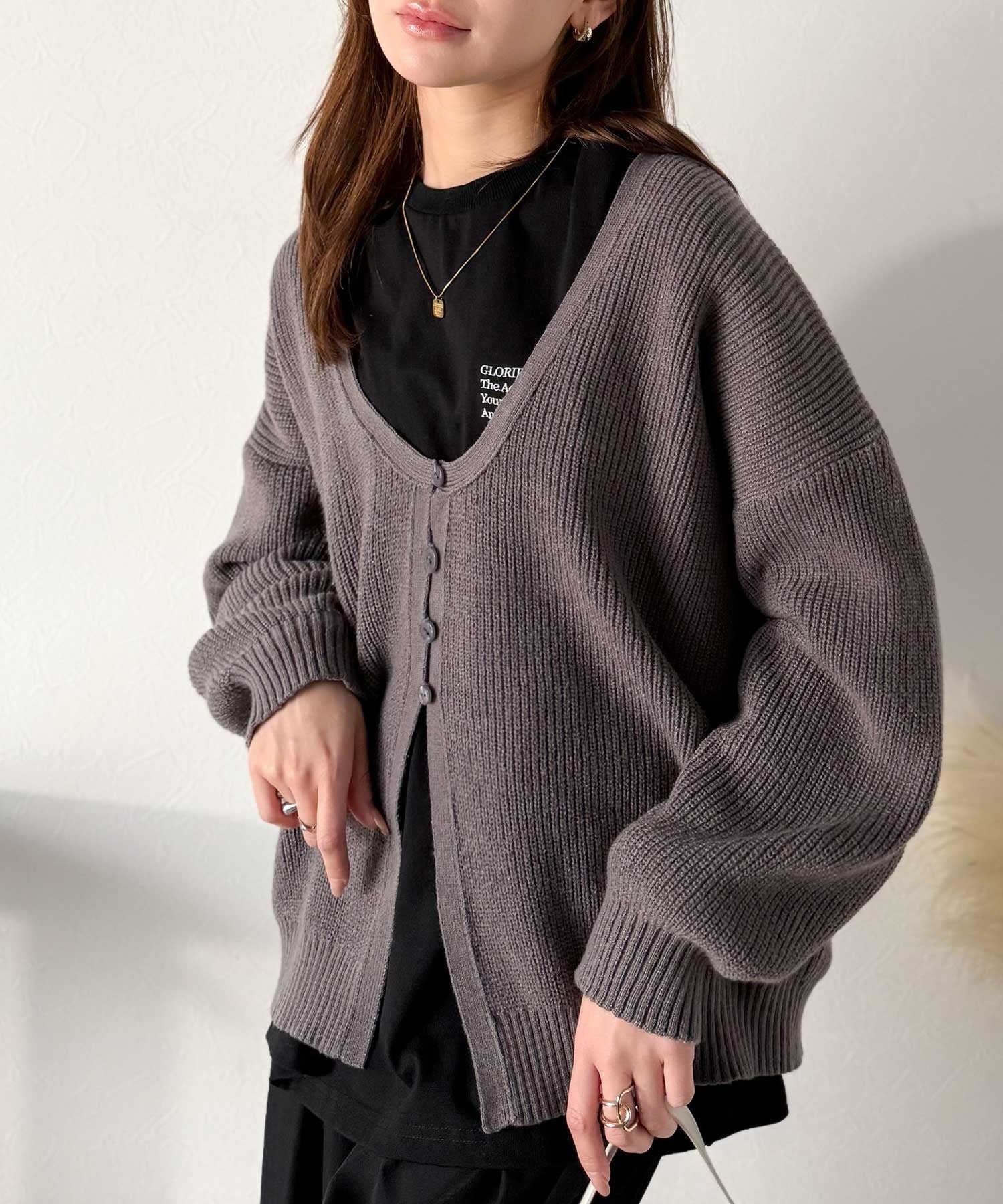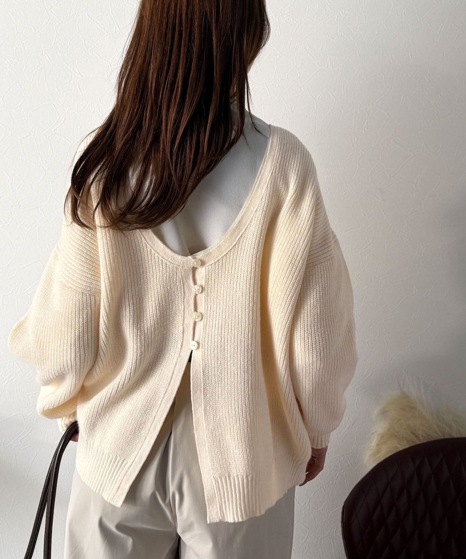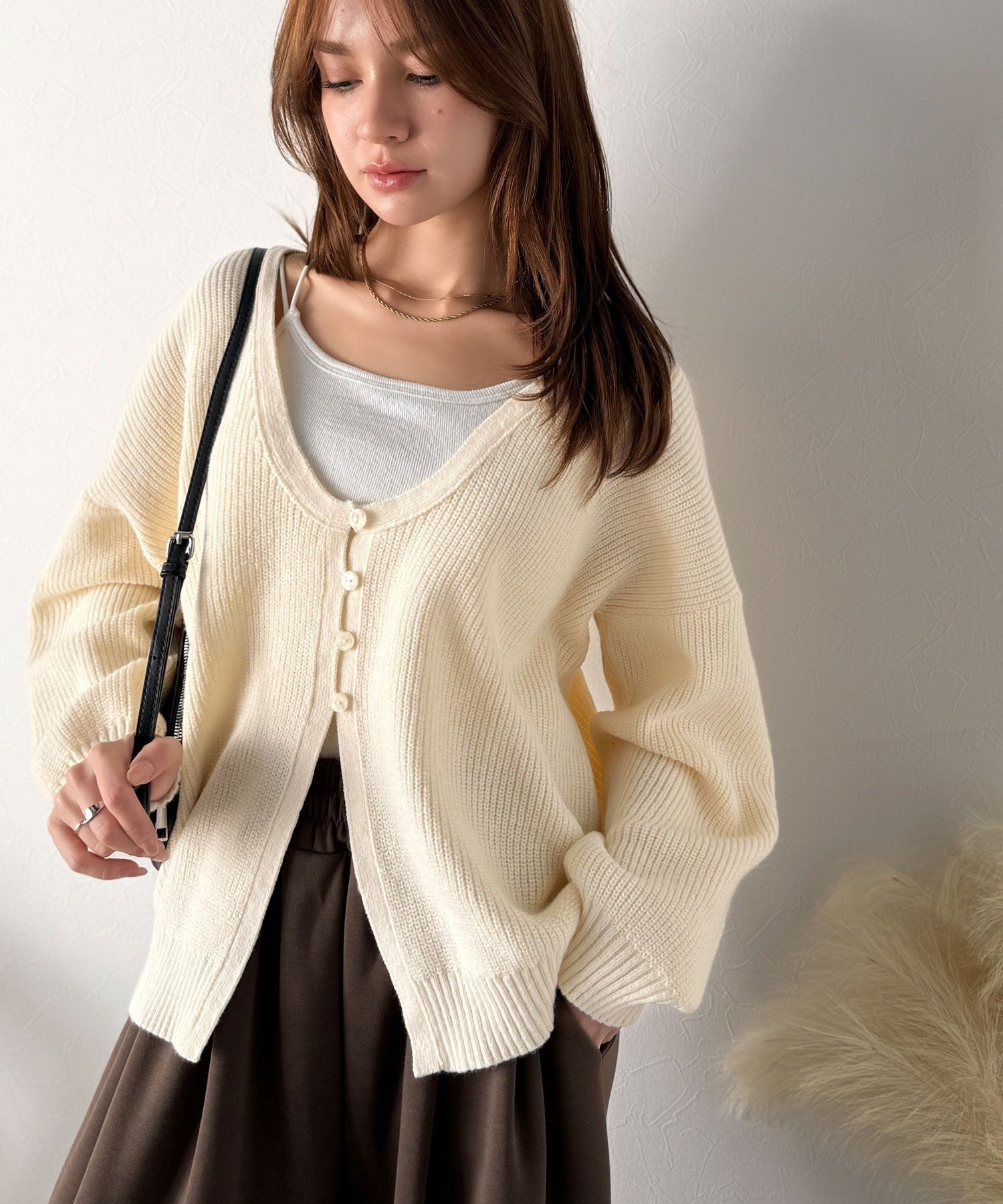 《marina×クラシカルエルフコラボ》ヘルシーな肌見せで上品さを演出♪2way仕様の万能深Uニットカーディガン ce1350009