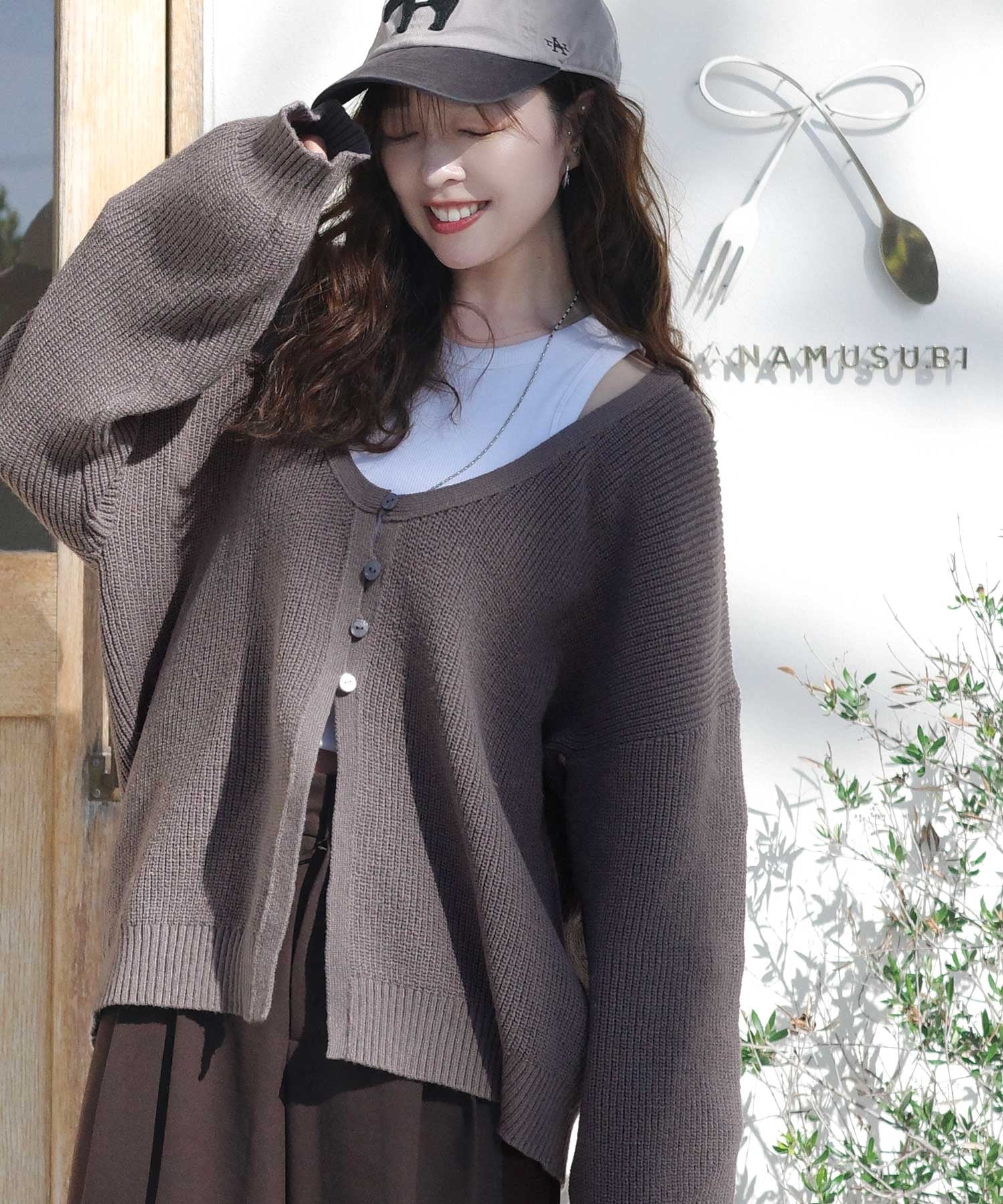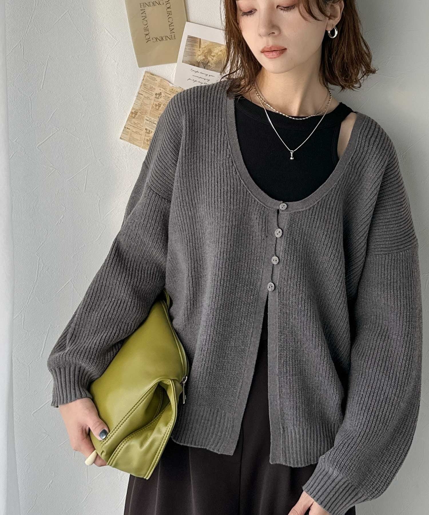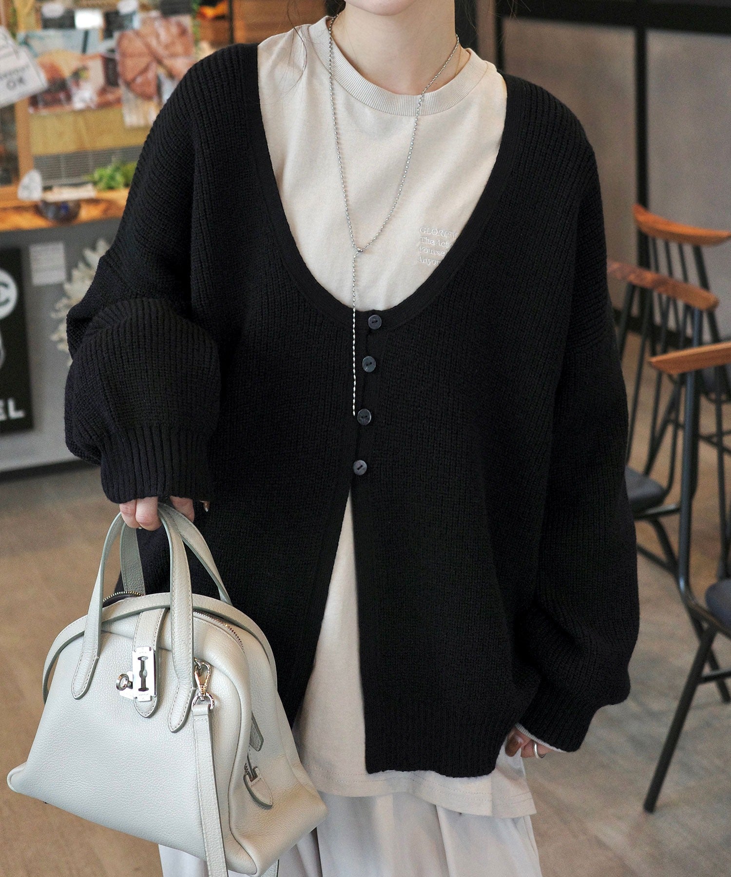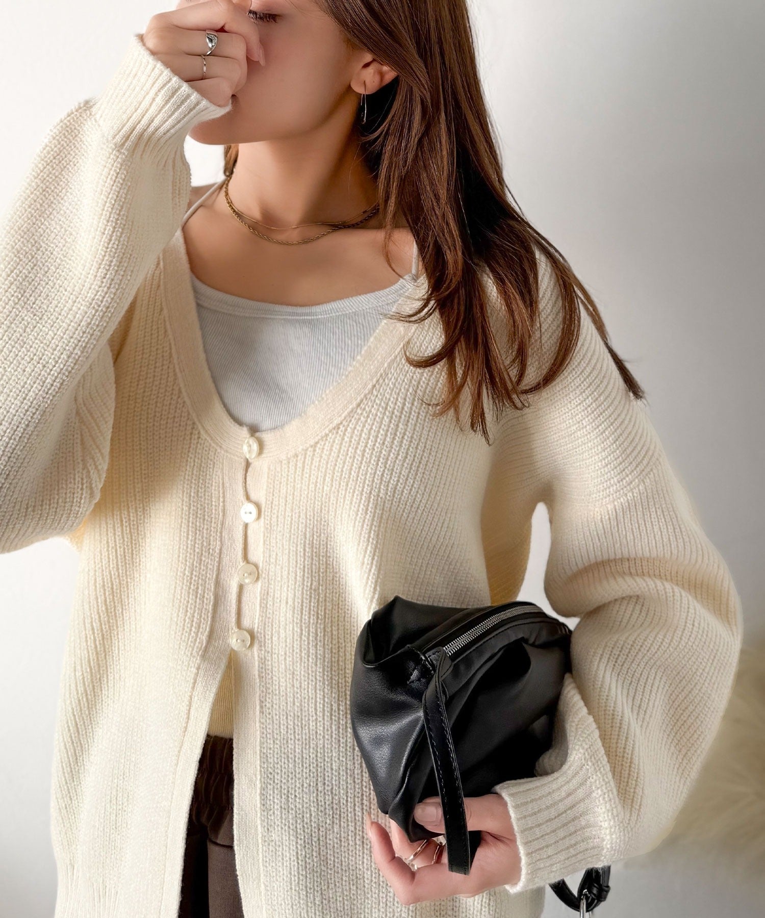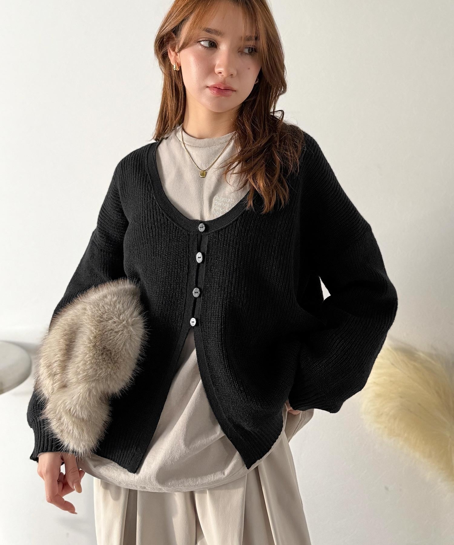 《marina×クラシカルエルフコラボ》ヘルシーな肌見せで上品さを演出♪2way仕様の万能深Uニットカーディガン ce1350009