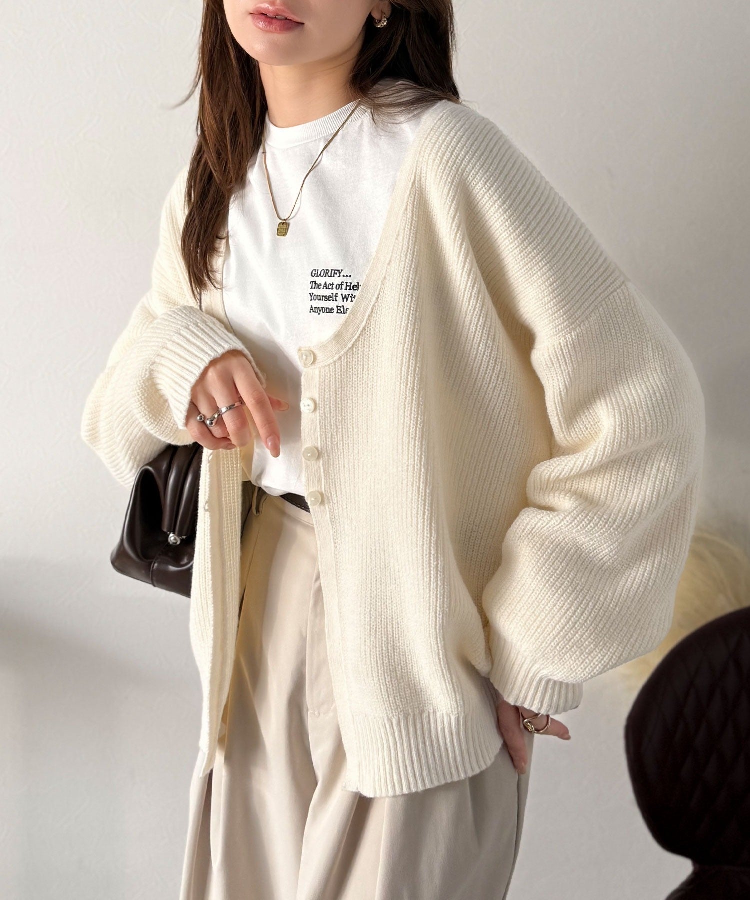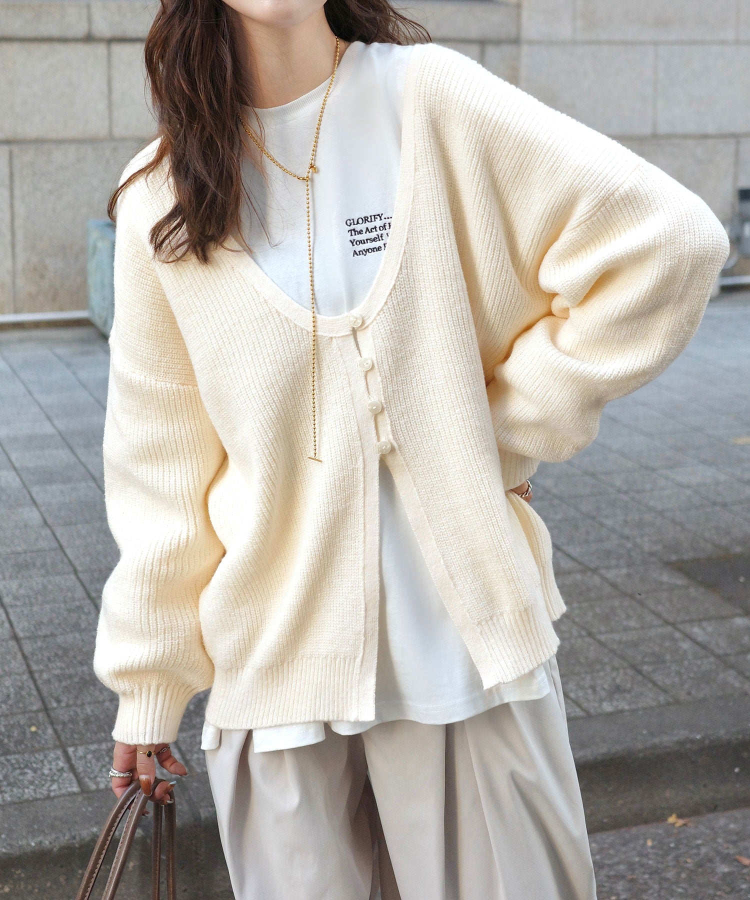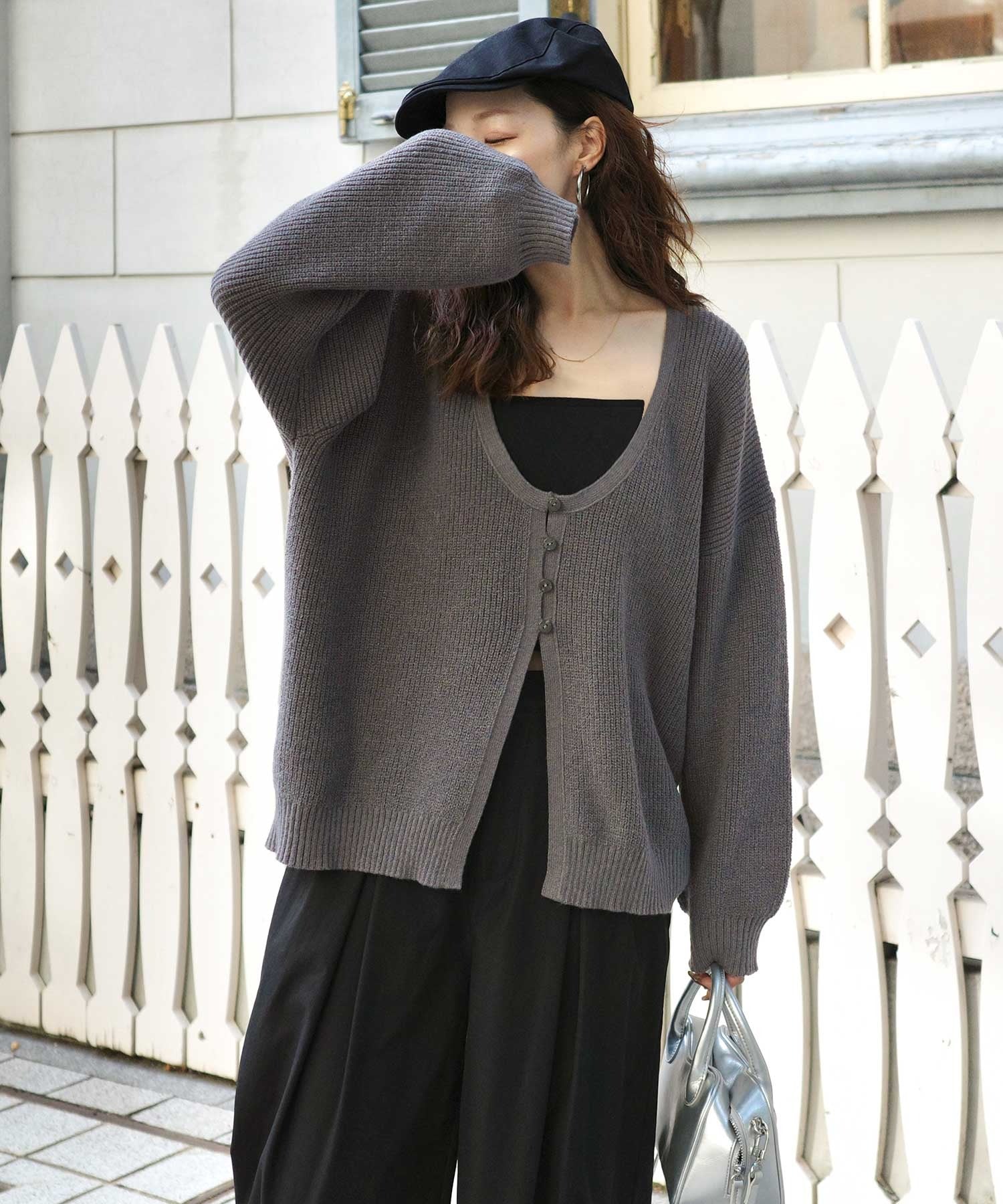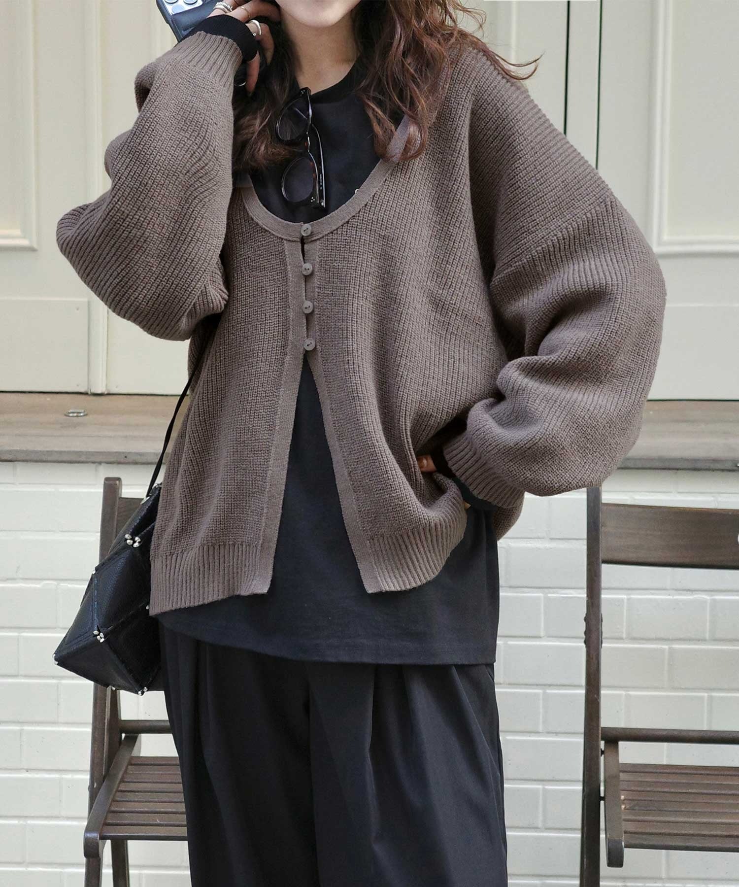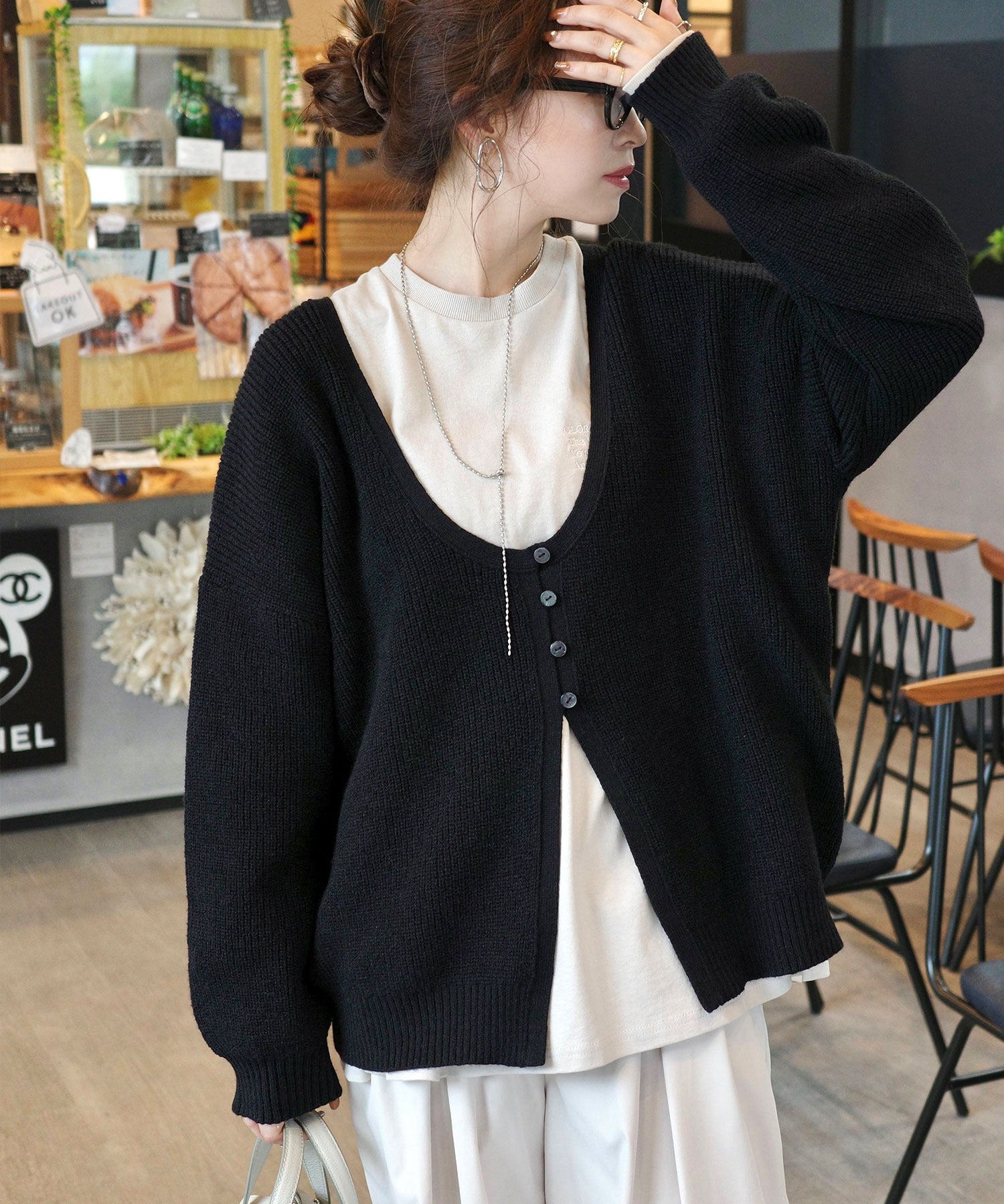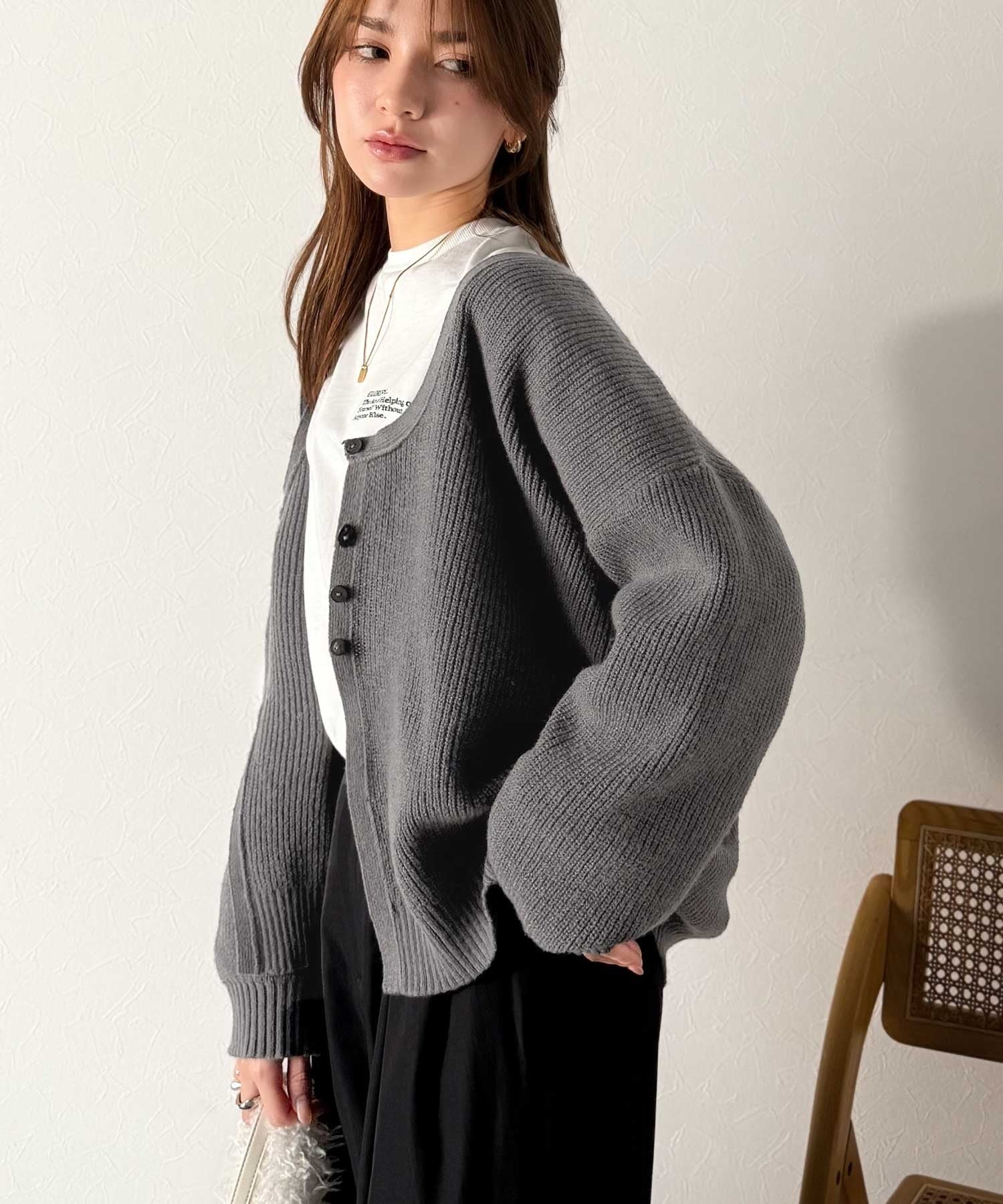 《marina×クラシカルエルフコラボ》ヘルシーな肌見せで上品さを演出♪2way仕様の万能深Uニットカーディガン ce1350009