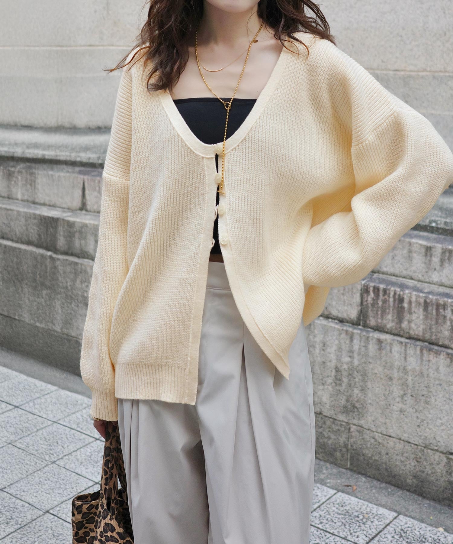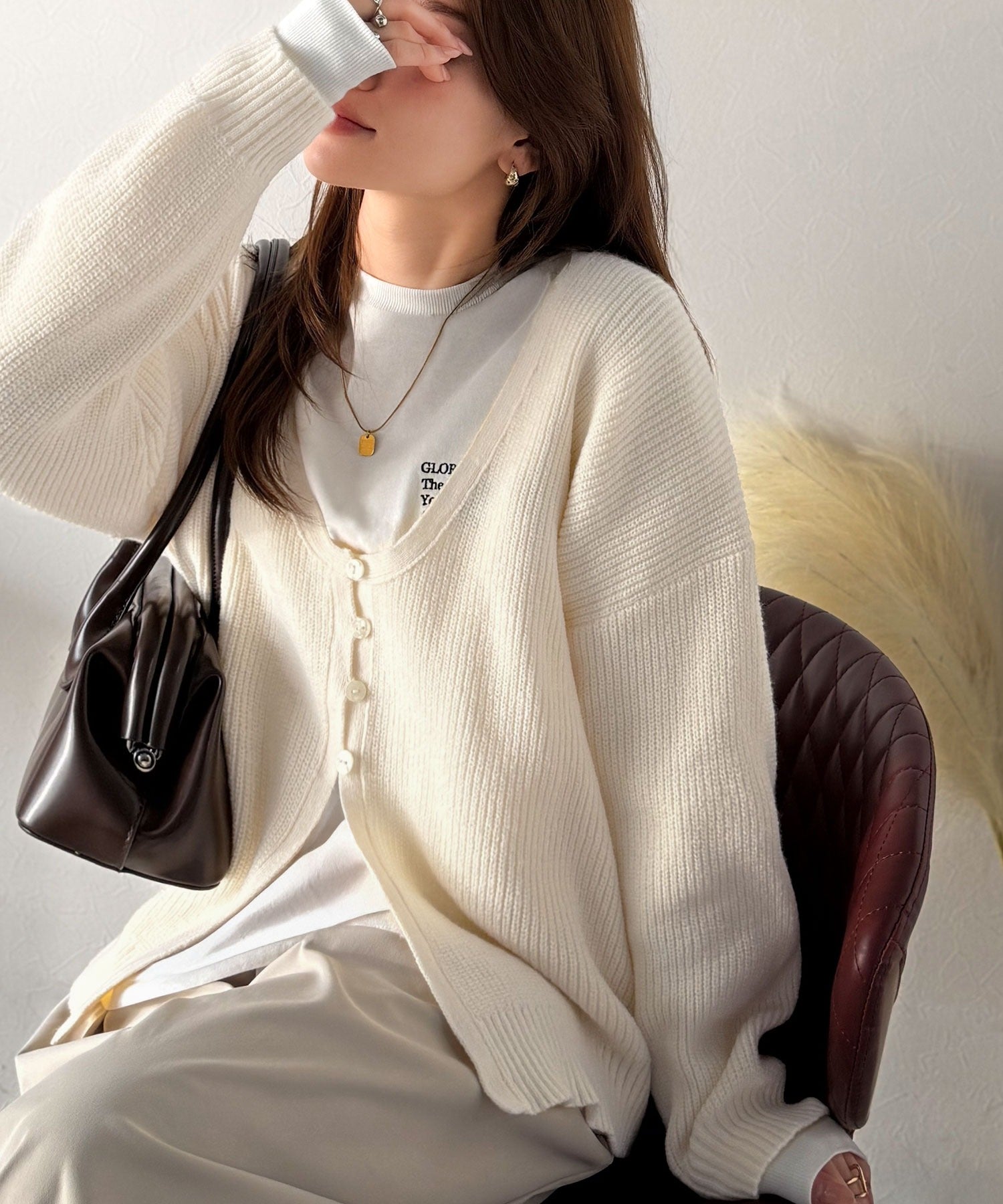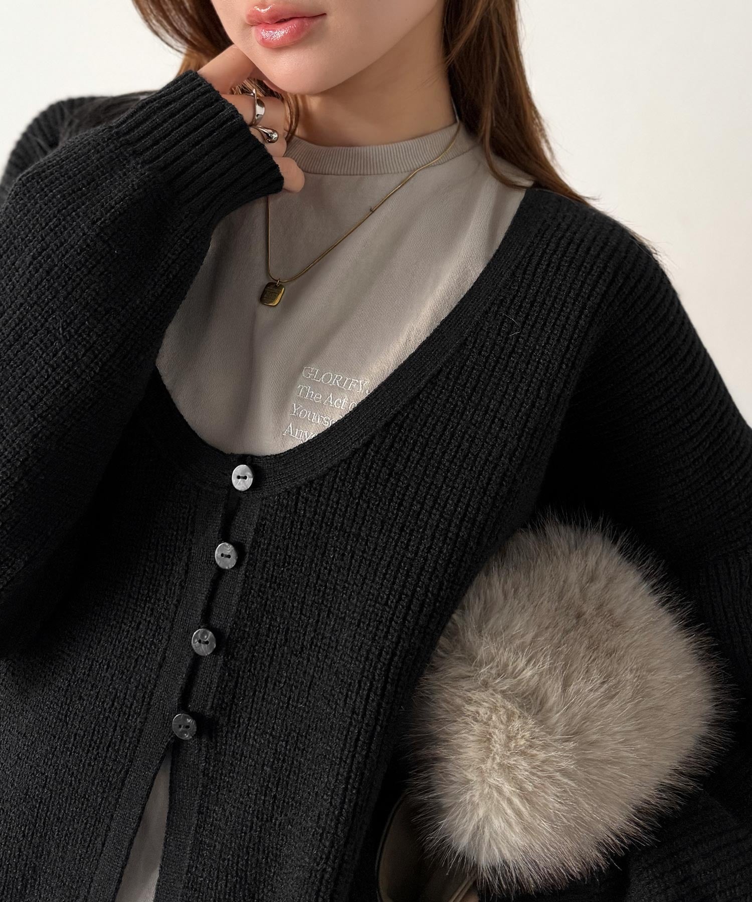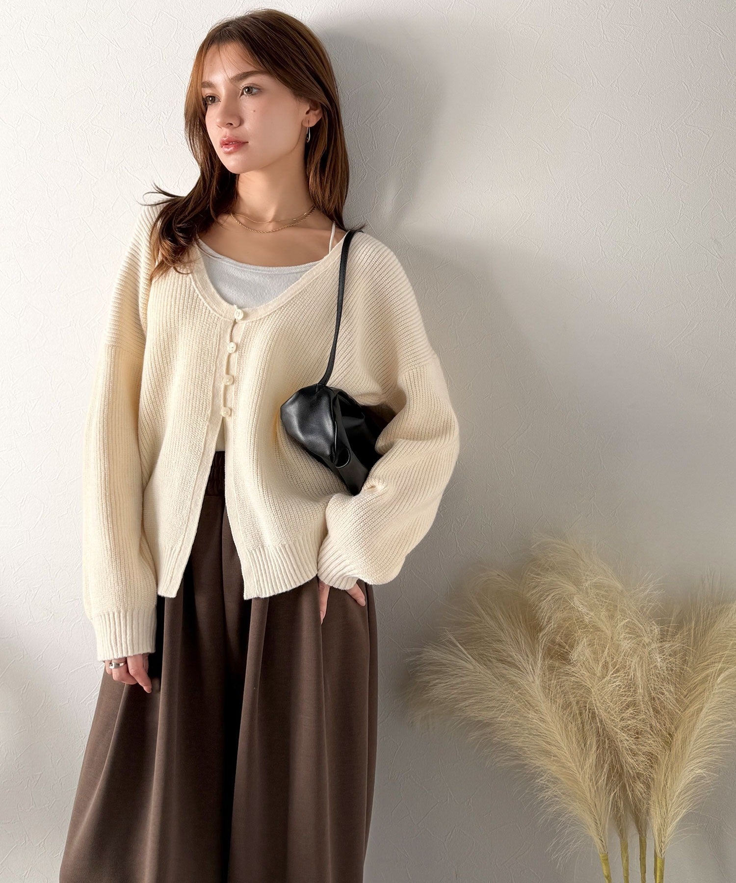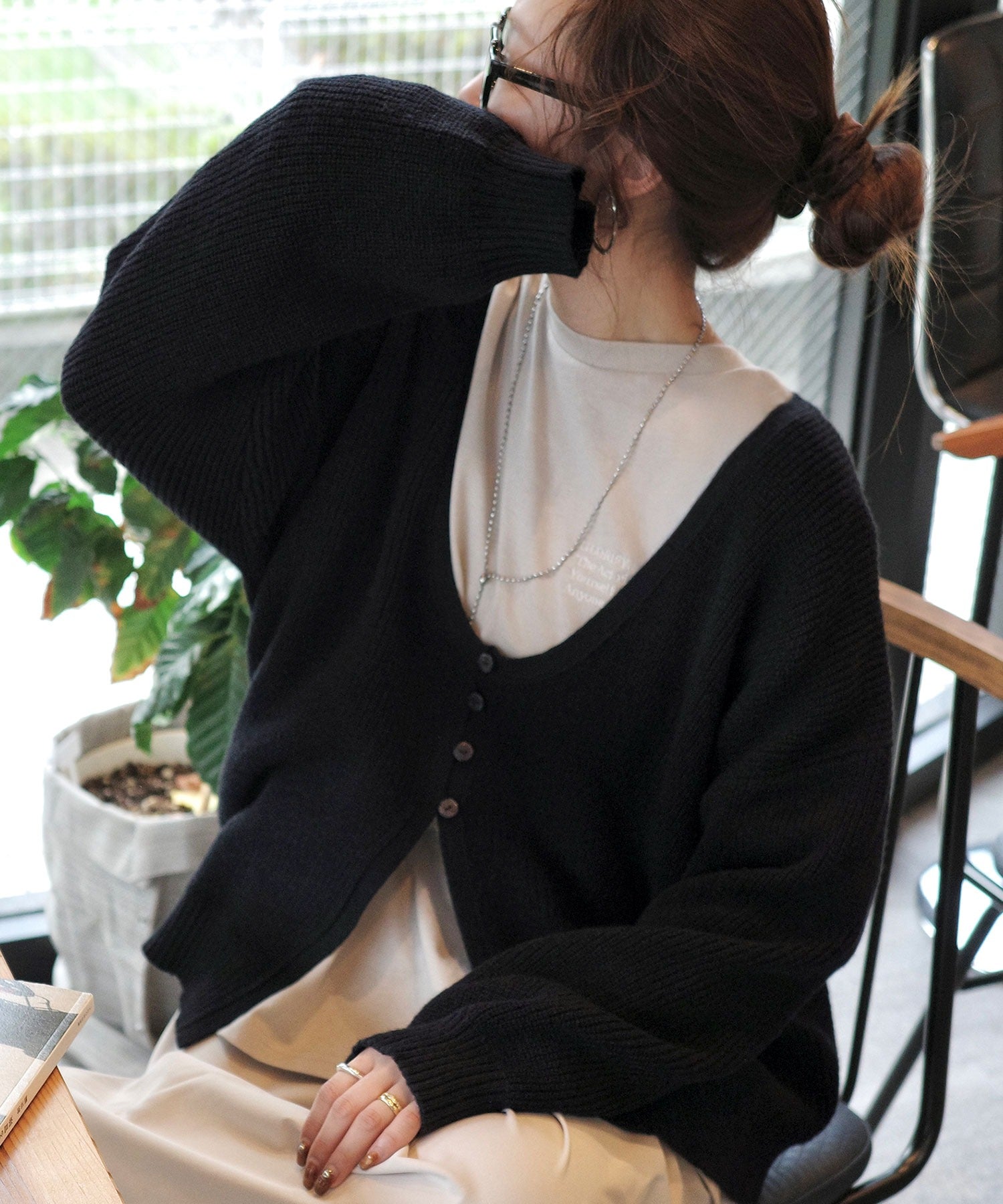 《marina×クラシカルエルフコラボ》ヘルシーな肌見せで上品さを演出♪2way仕様の万能深Uニットカーディガン ce1350009