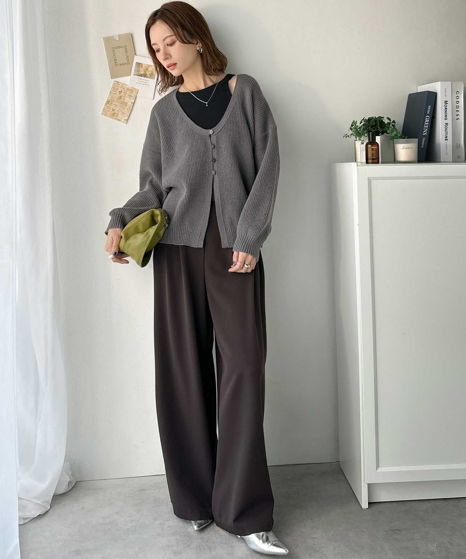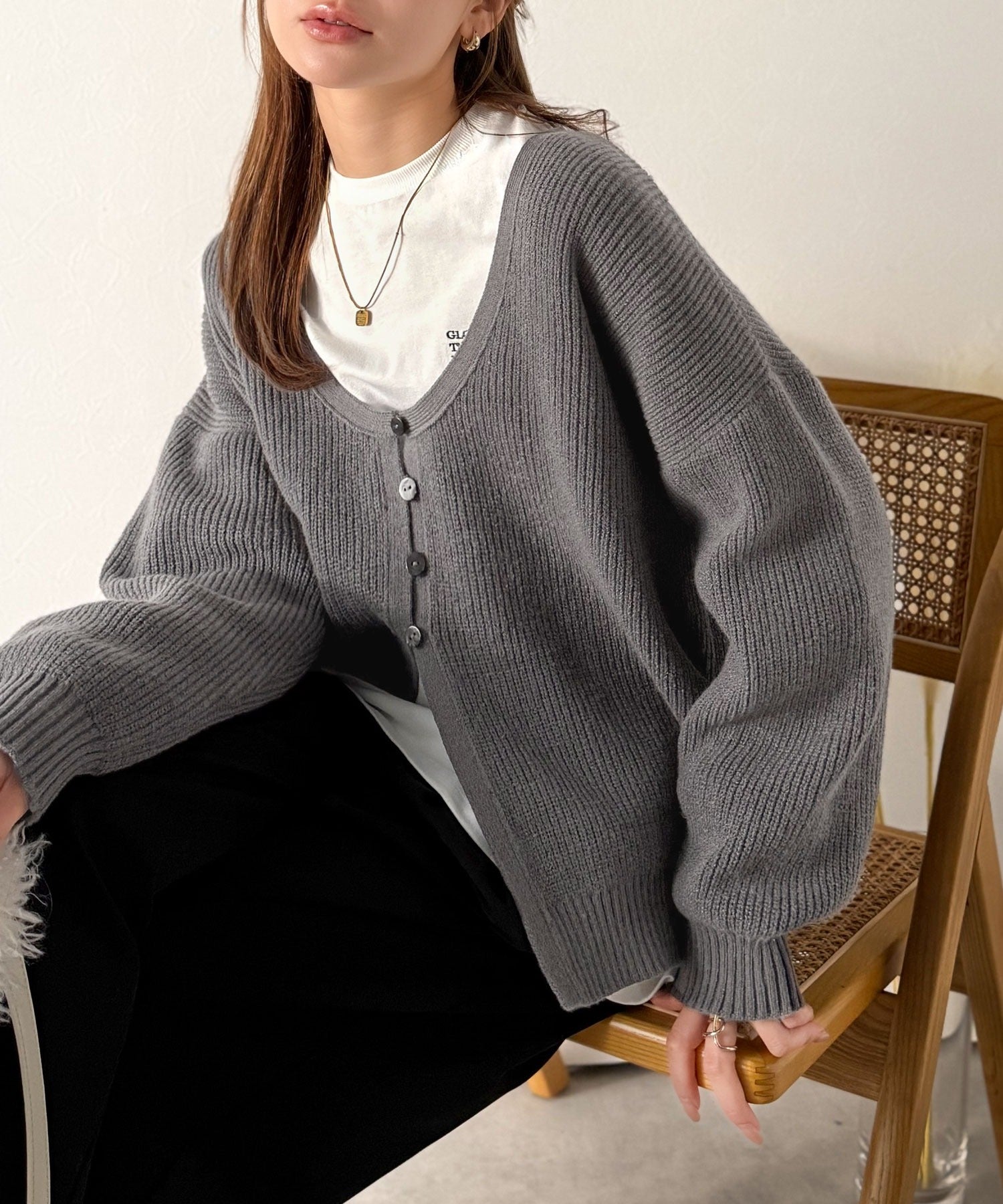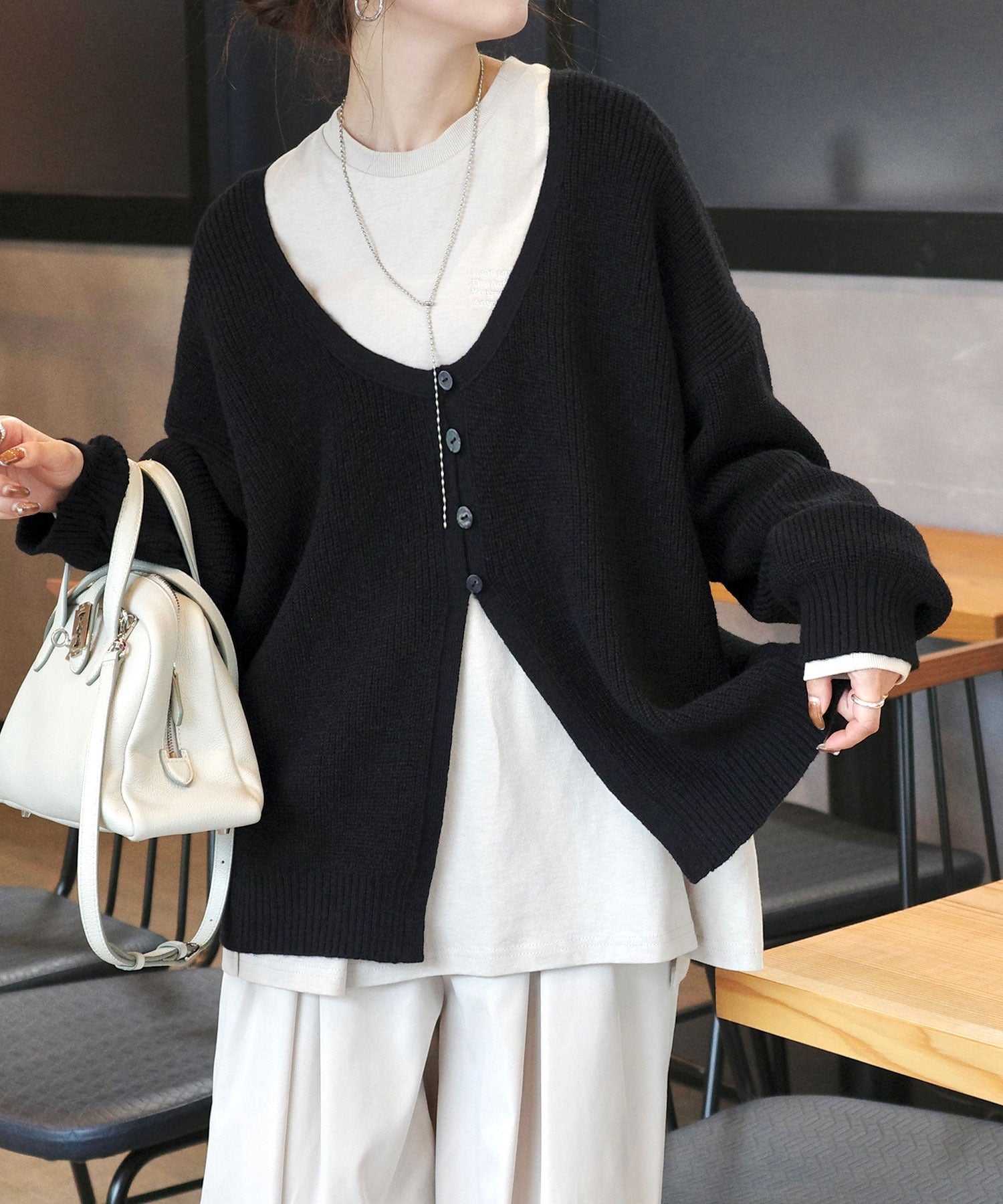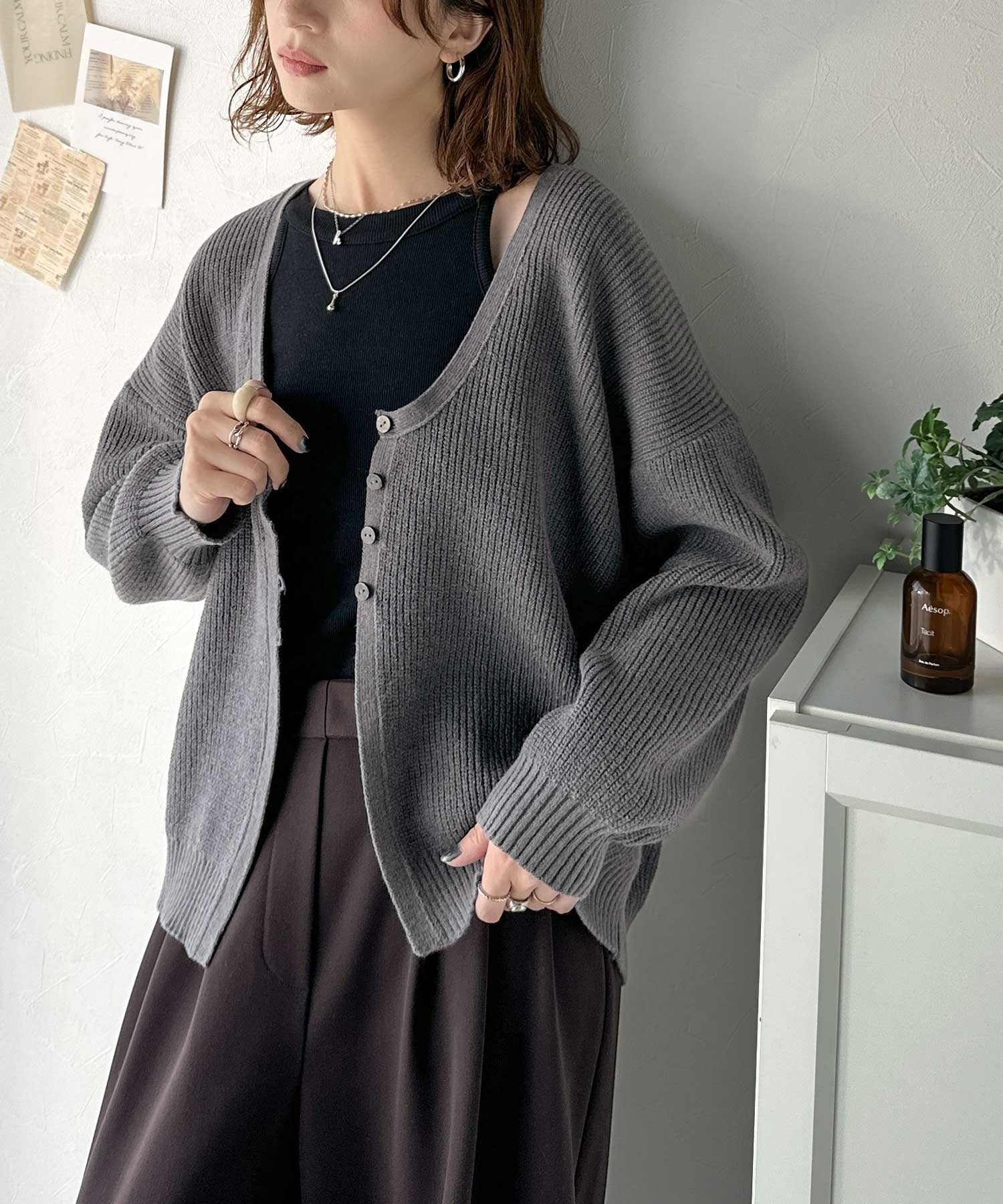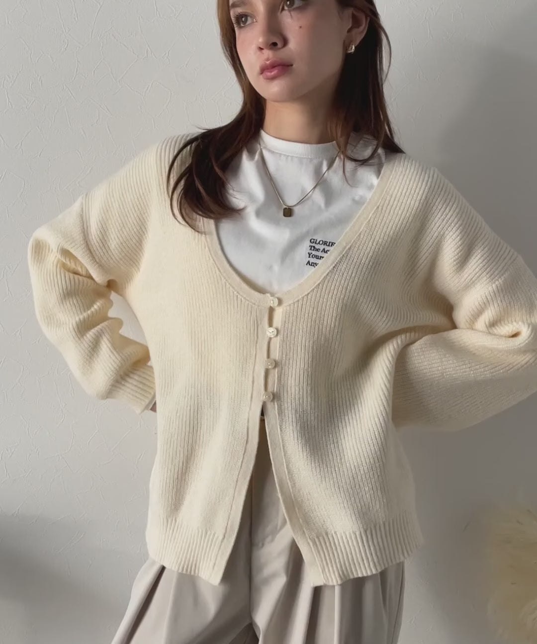《marina×クラシカルエルフコラボ》ヘルシーな肌見せで上品さを演出♪2way仕様の万能深Uニットカーディガン ce1350009