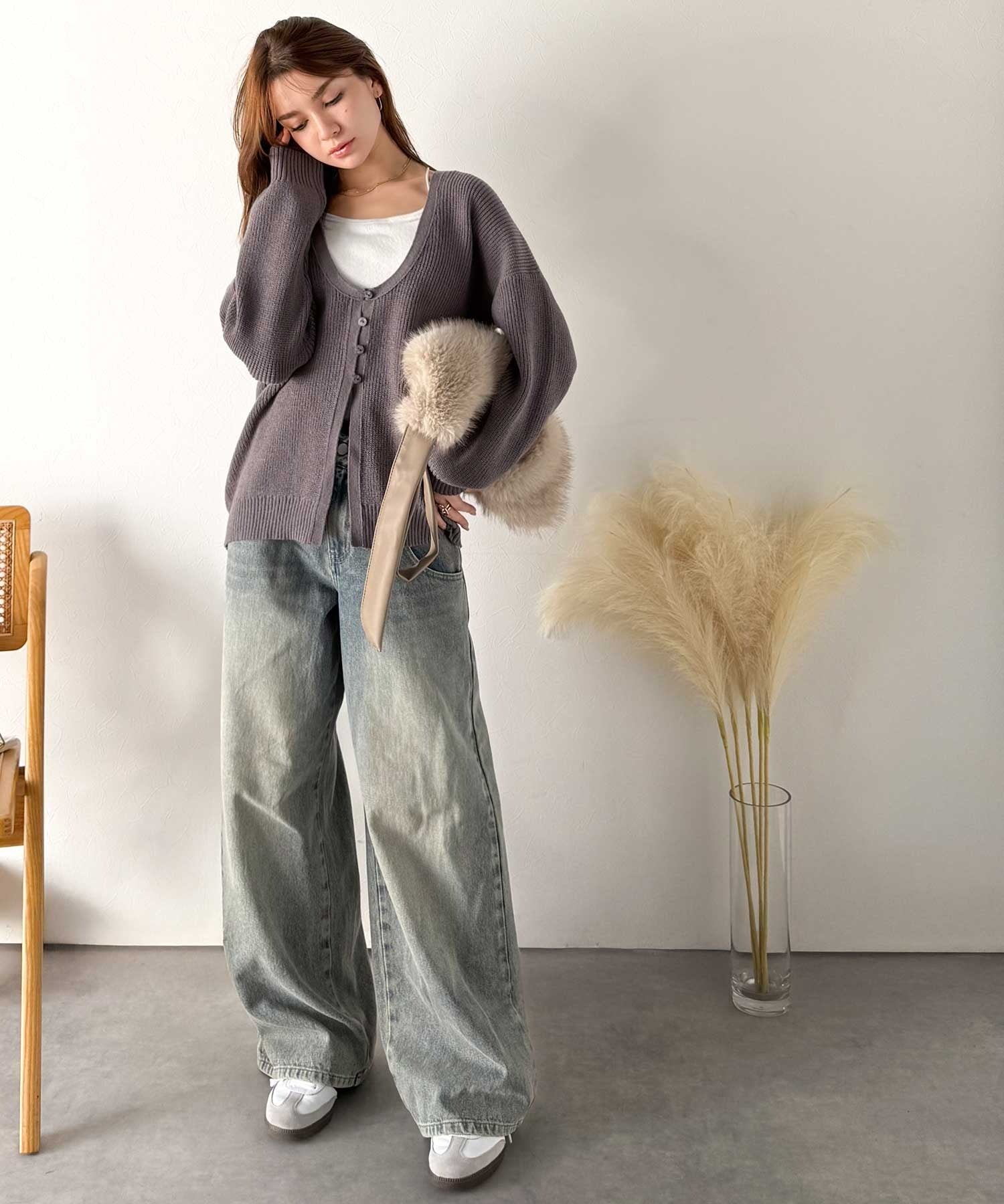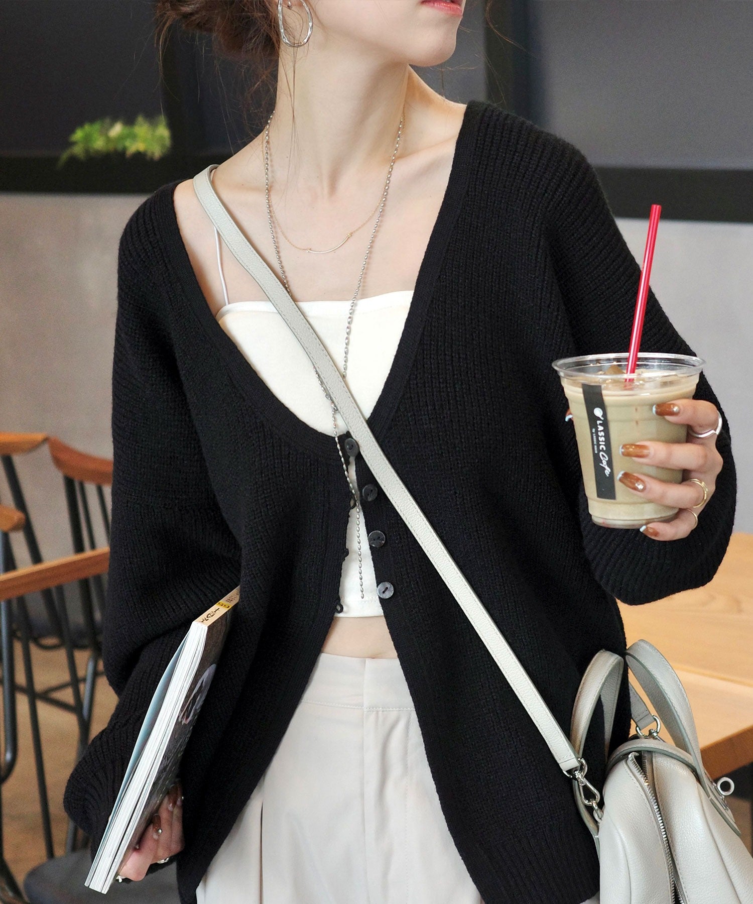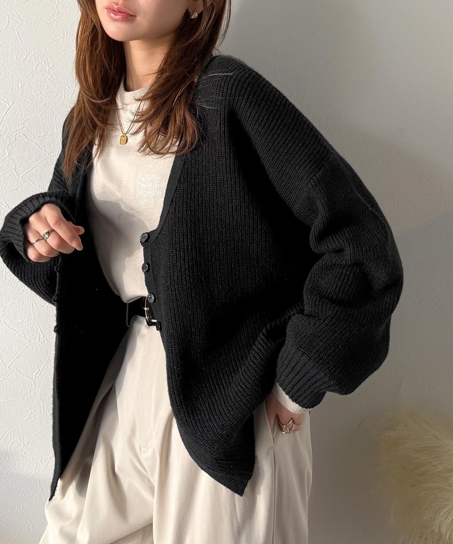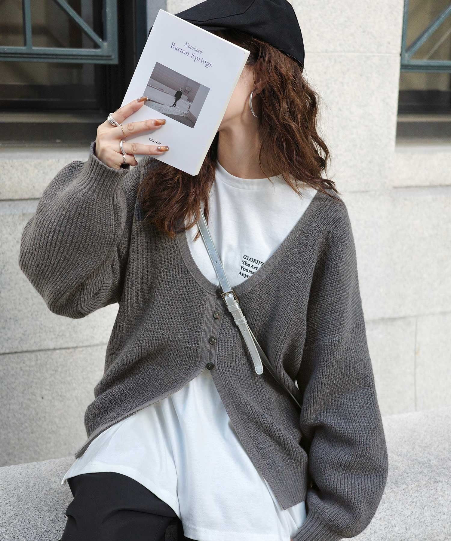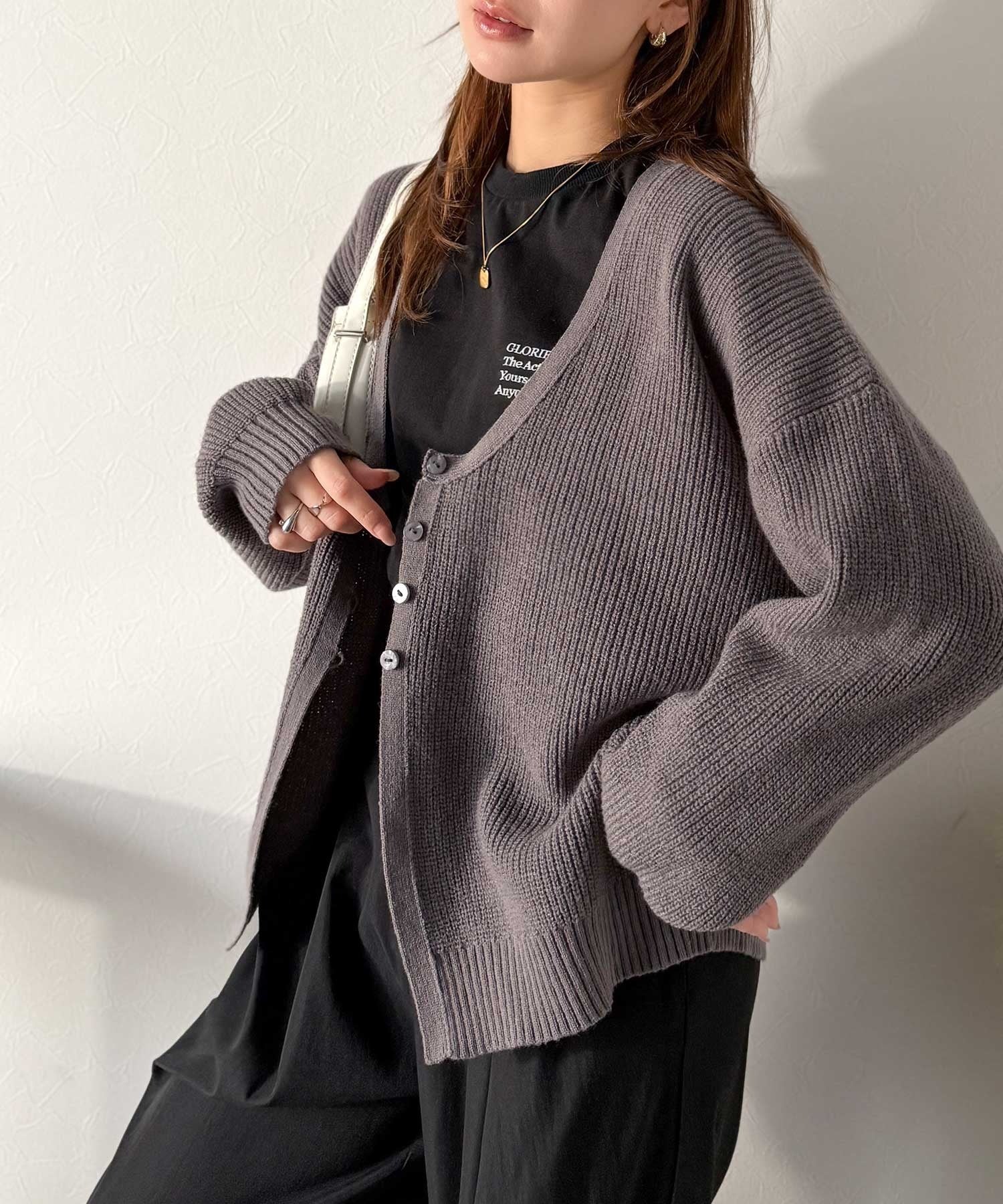 《marina×クラシカルエルフコラボ》ヘルシーな肌見せで上品さを演出♪2way仕様の万能深Uニットカーディガン ce1350009