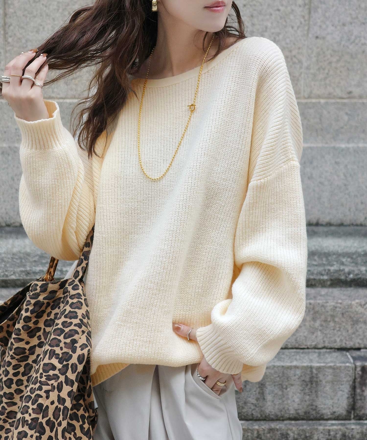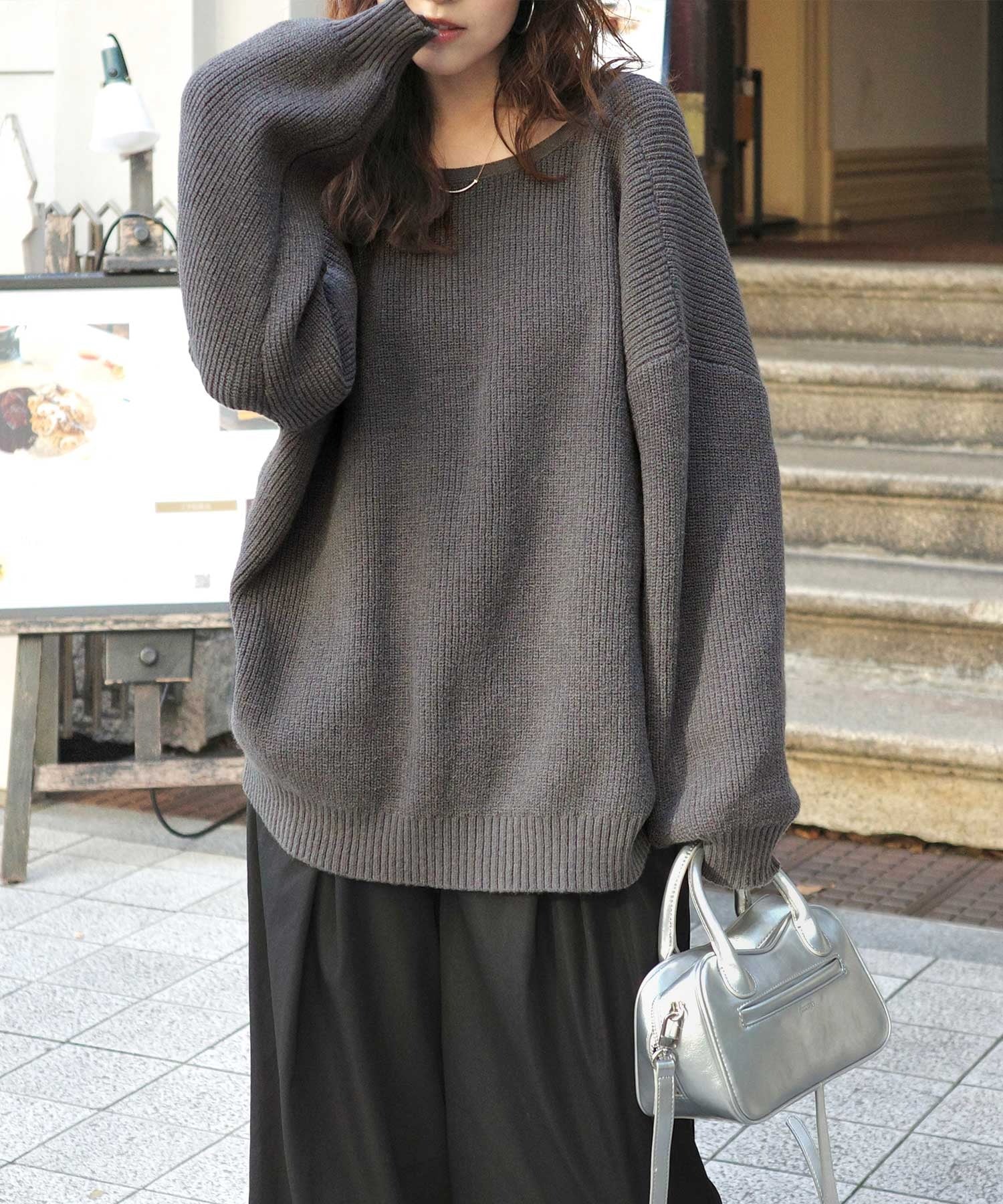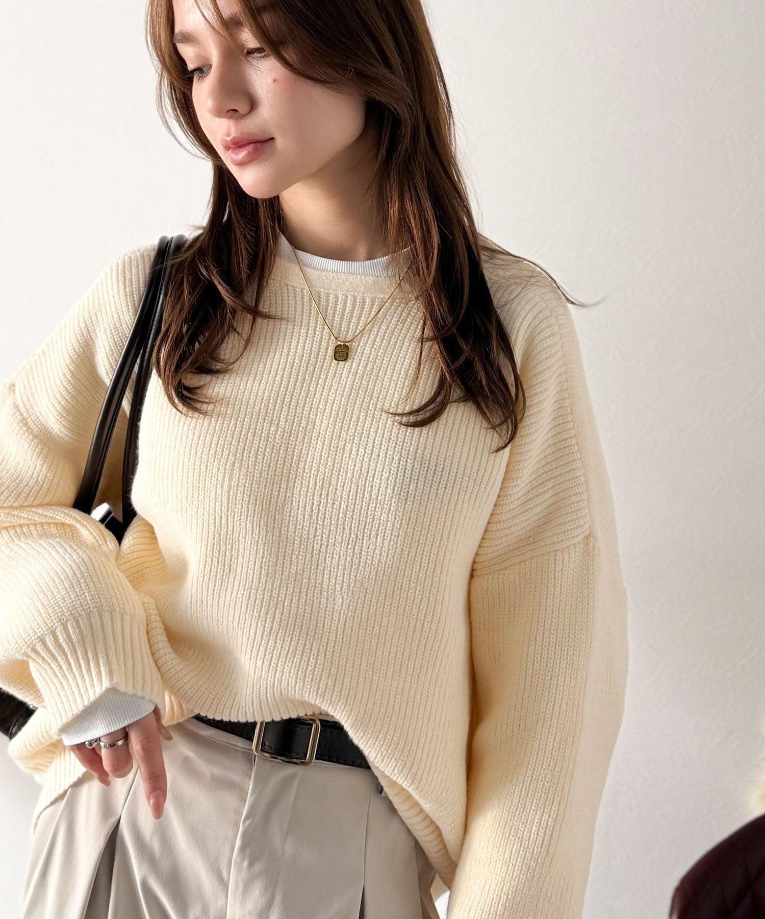 ストレッチ性のある糸を使用したざっくり畦編みニット
