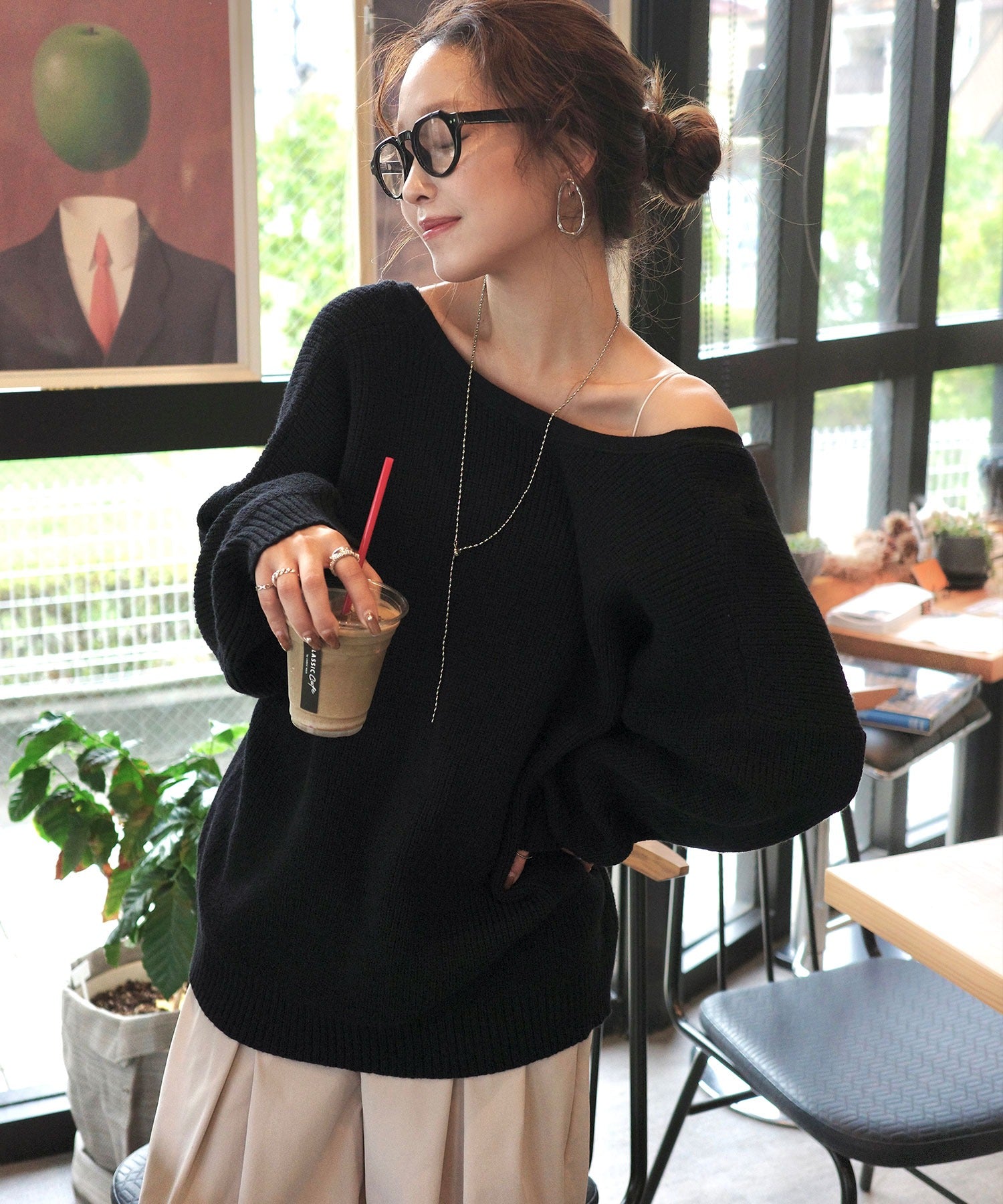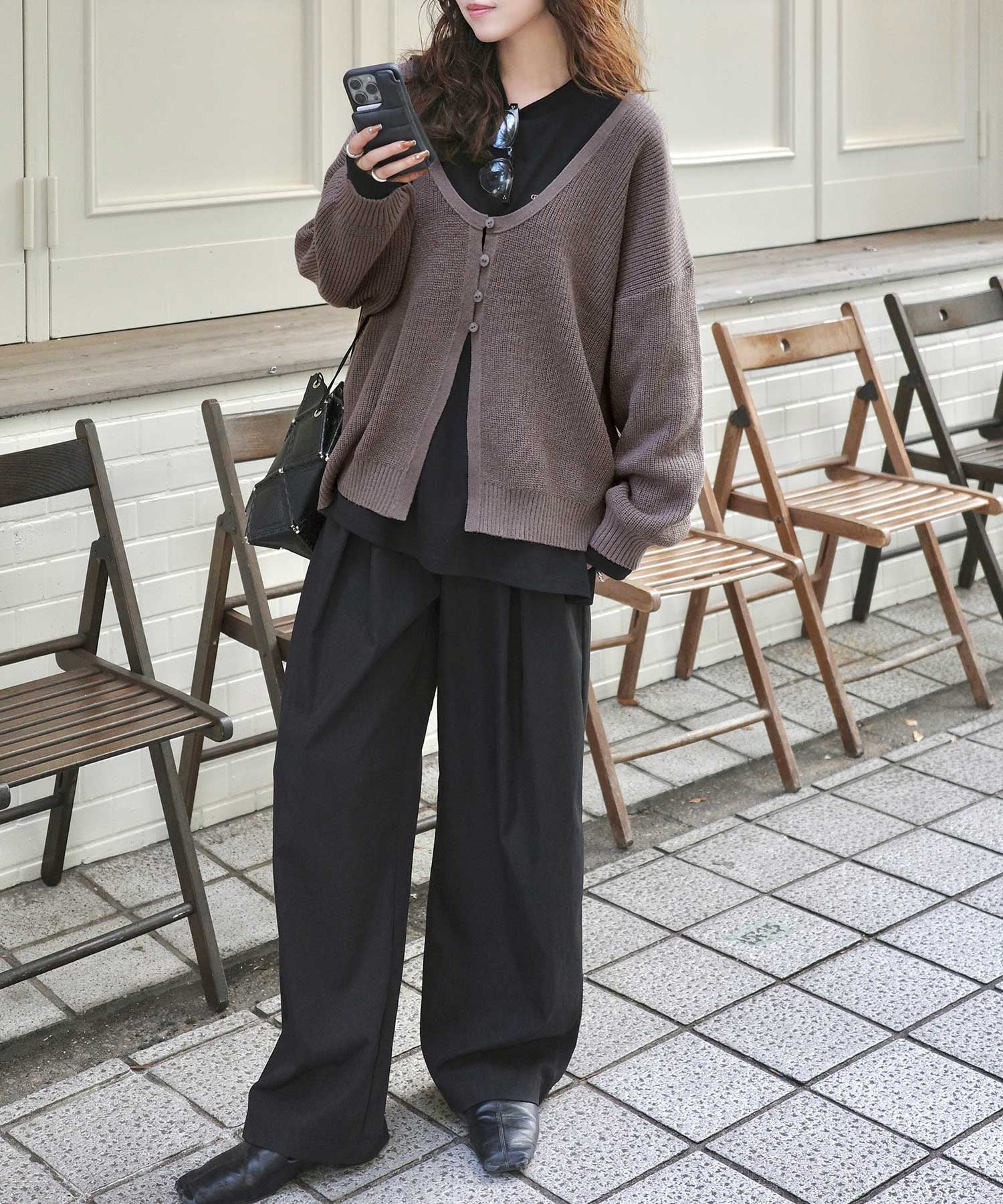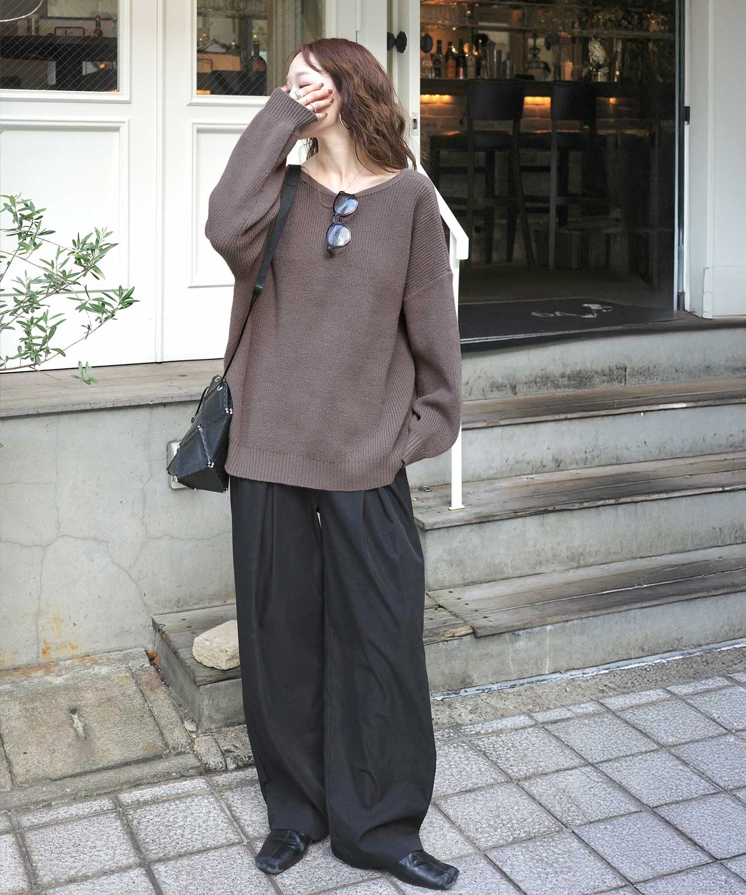 抜け感のある深Uネックで魅せる、着回し自在の2WAYニット。