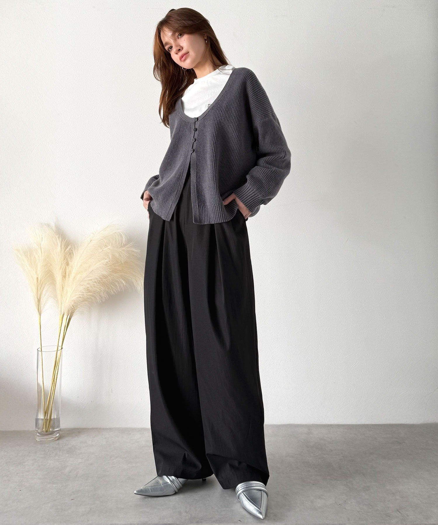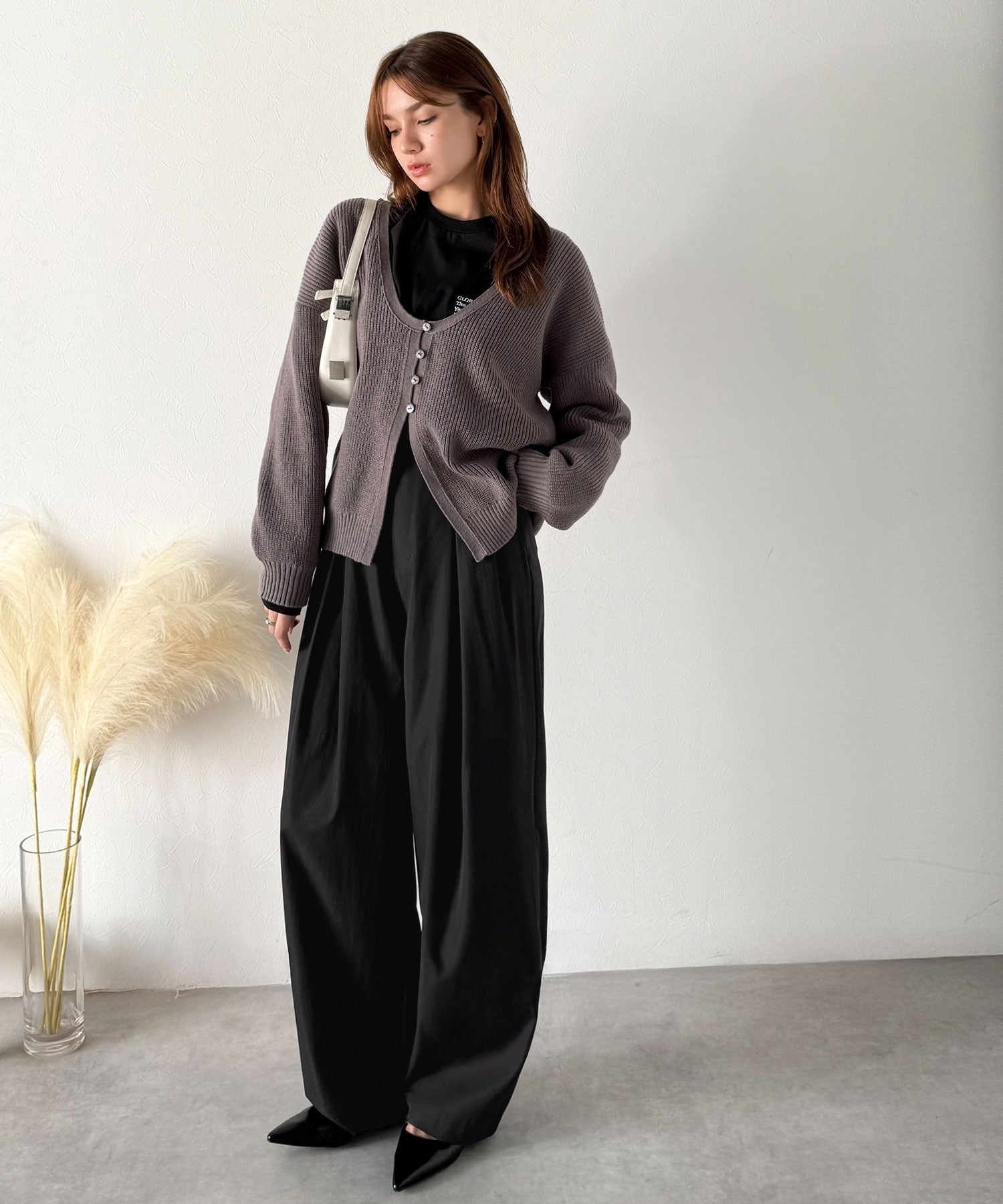 深めのUネックラインが上品な抜け感を演出し、シンプルながら存在感のあるデザインが魅力。